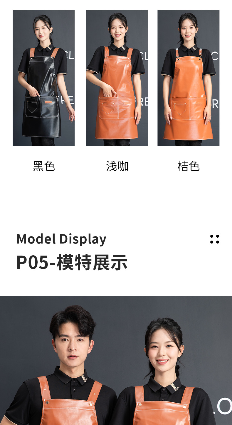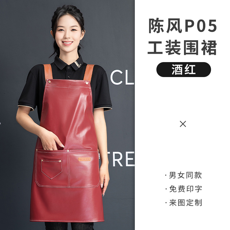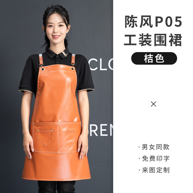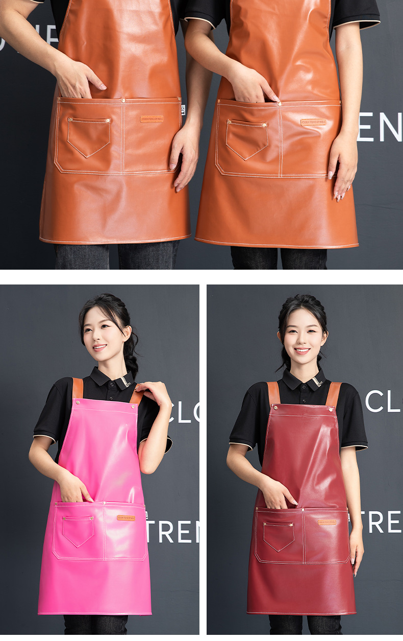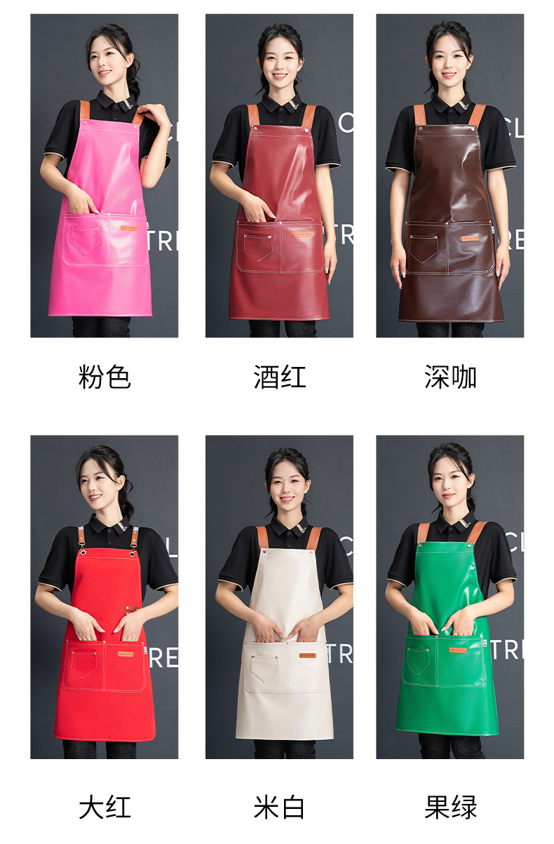 PU软皮围裙批发logo印字餐饮专用防水防油餐厅水产厨房超市工作服