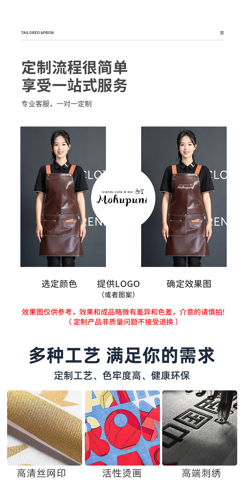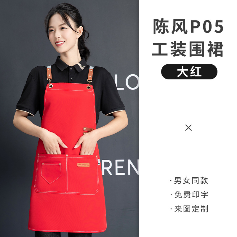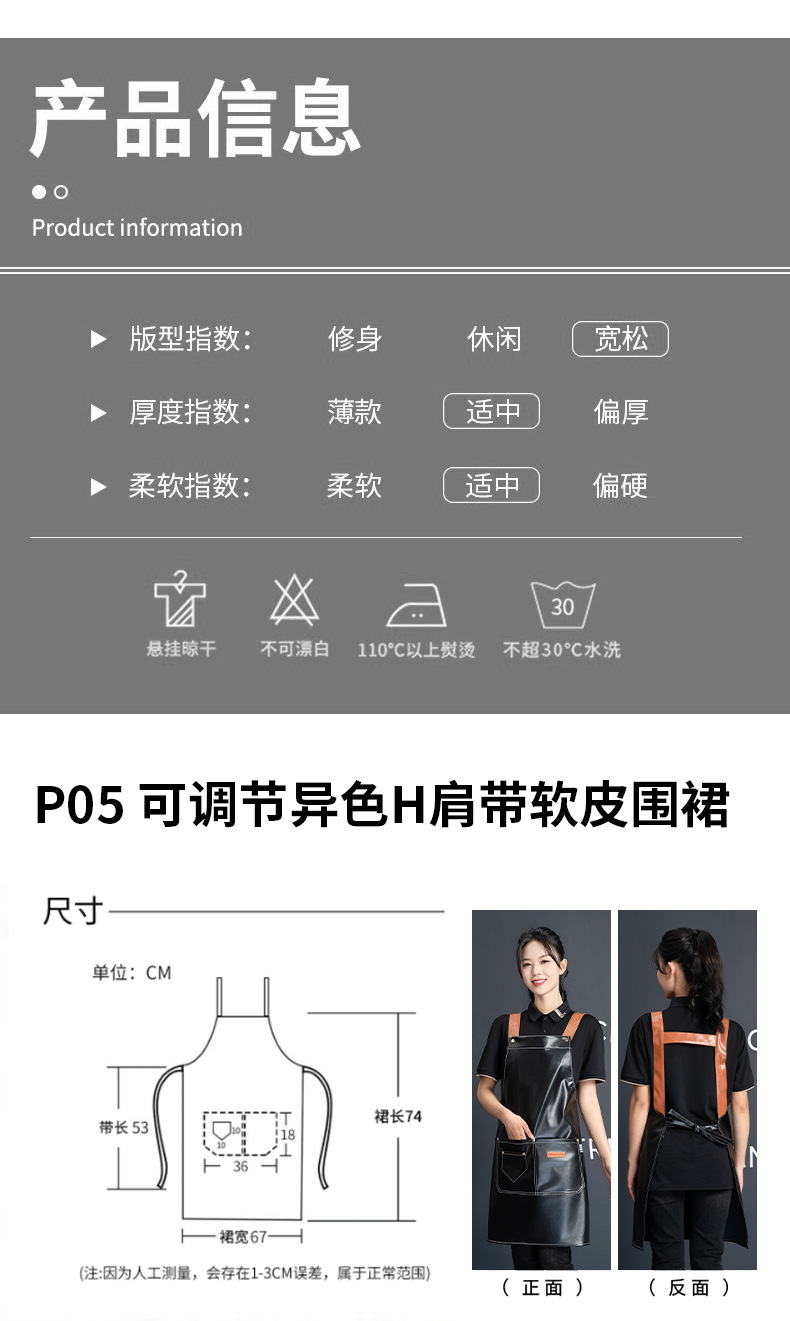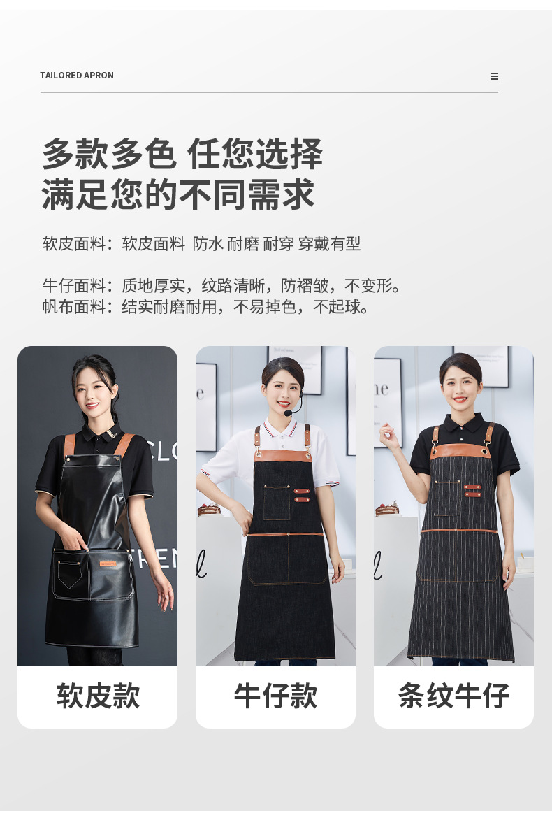 PU软皮围裙批发logo印字餐饮专用防水防油餐厅水产厨房超市工作服