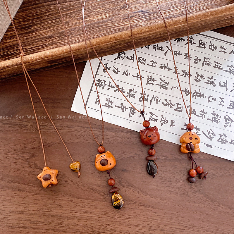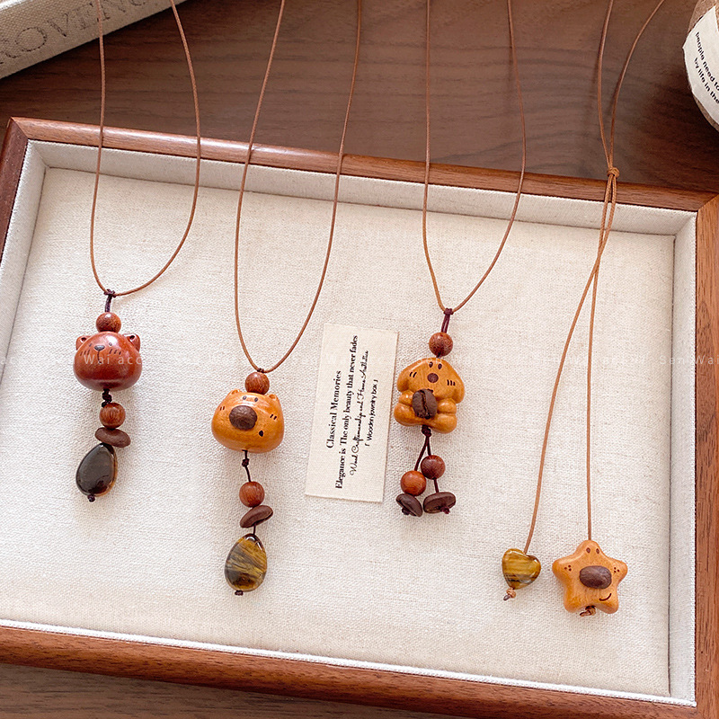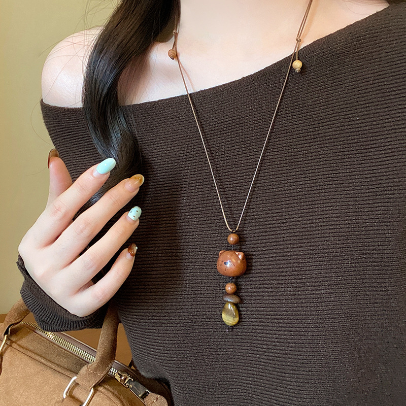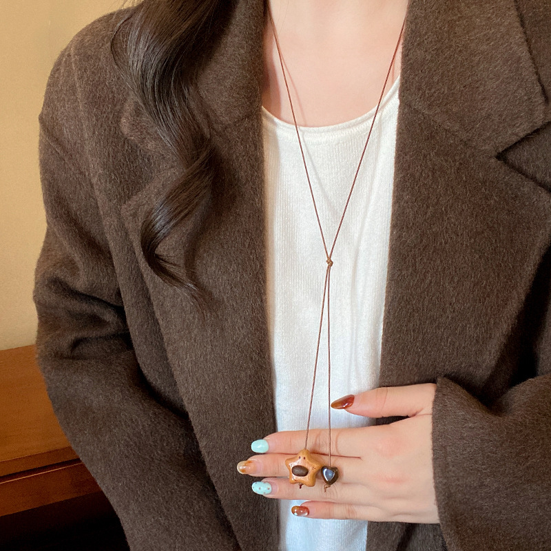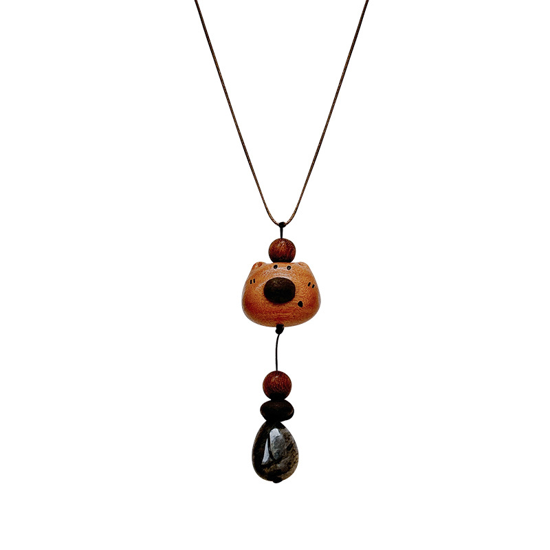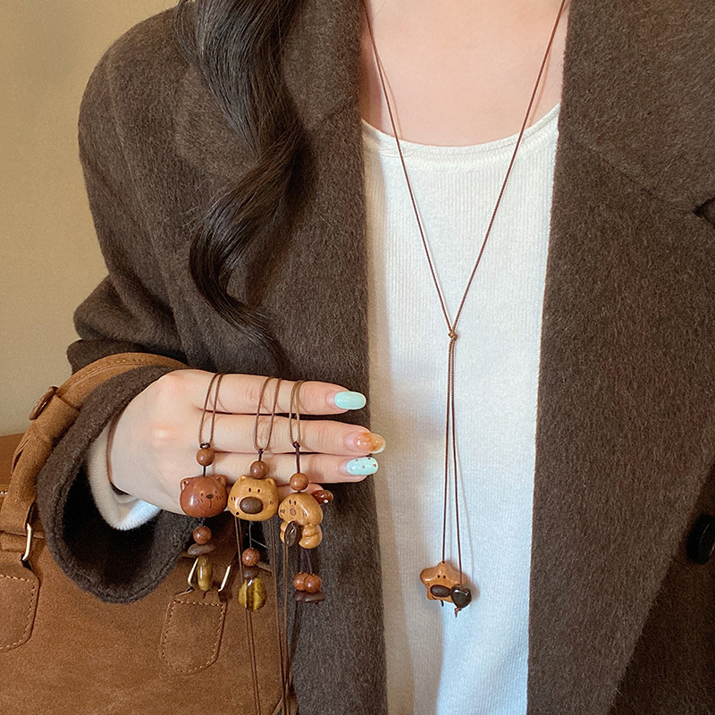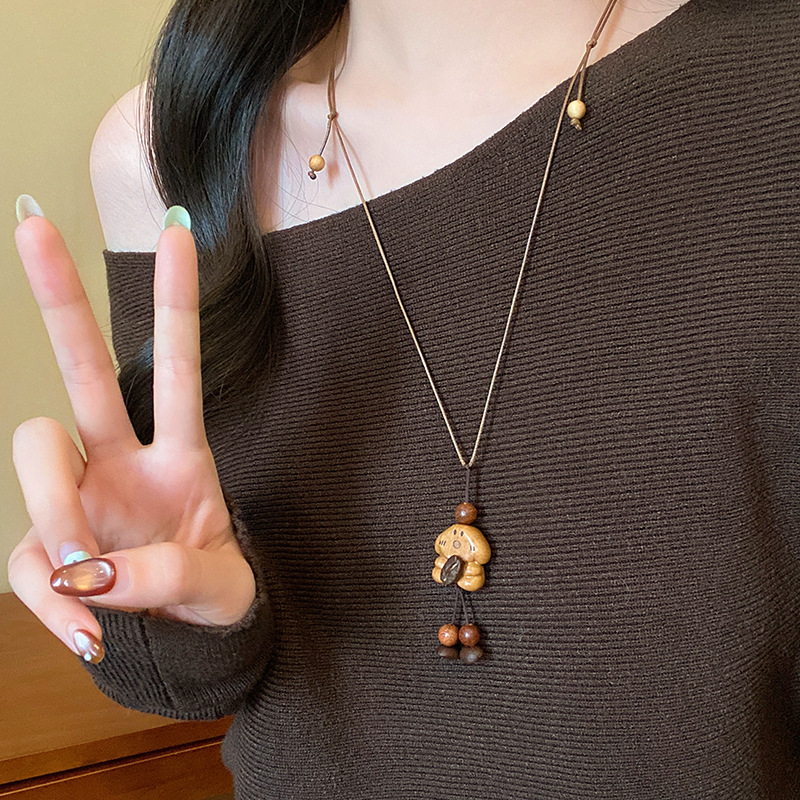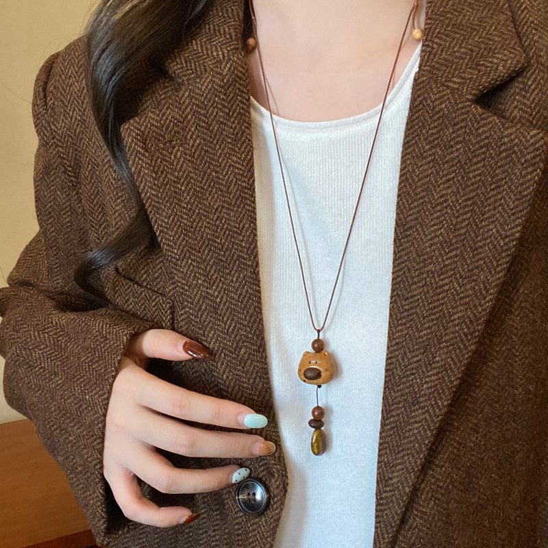 木质虎眼石小狗项链女秋冬可爱小众设计毛衣链长款吊坠配饰品批发