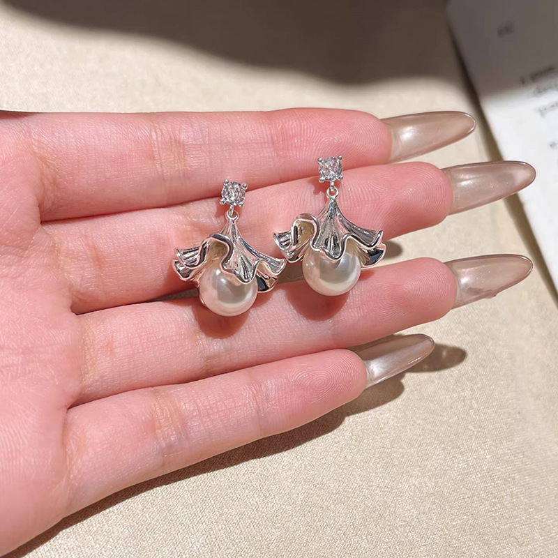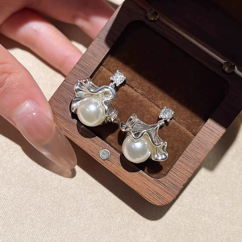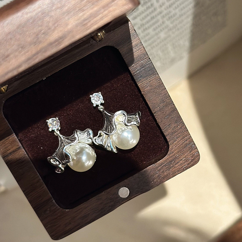 法式银杏叶珍珠耳环女小众设计高级感耳钉气质时尚百搭耳饰品批发