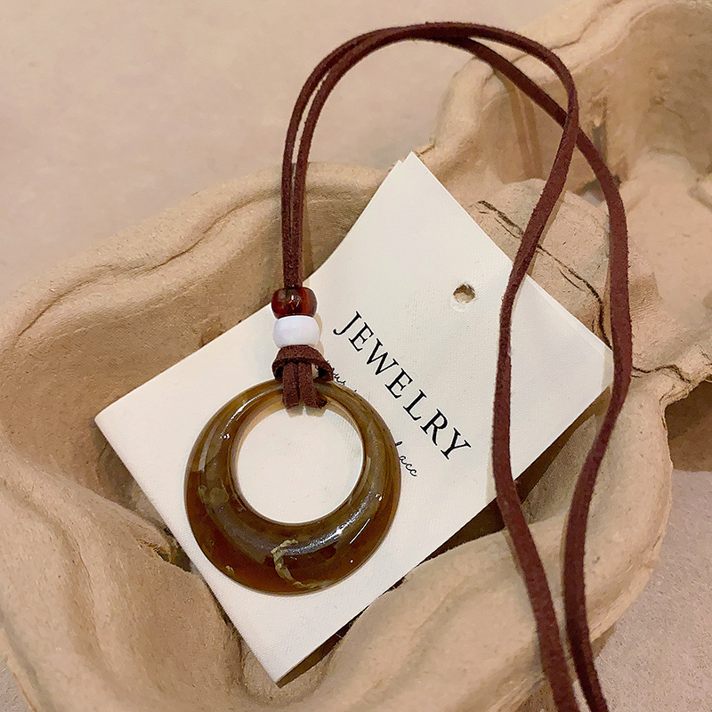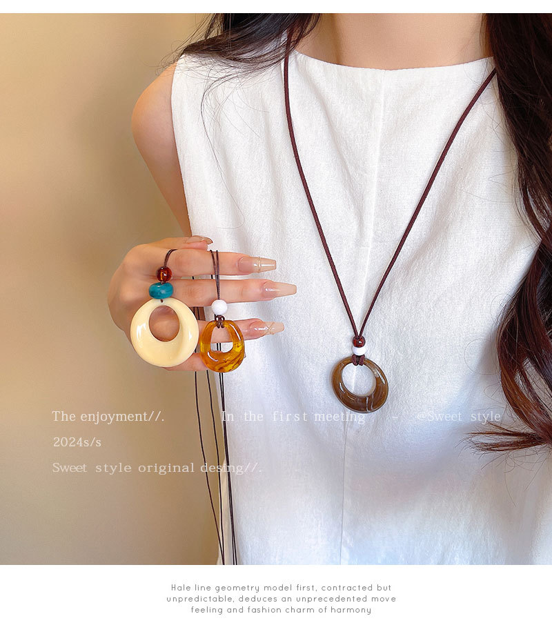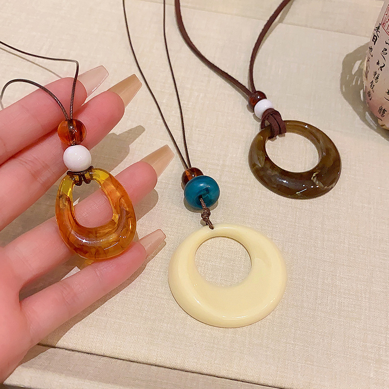 复古几何圆环吊坠项链女时尚百搭长款毛衣链高级感气质爆款配饰品