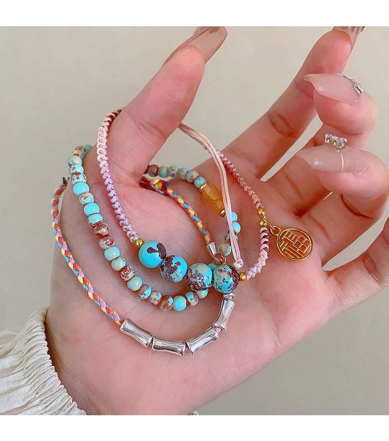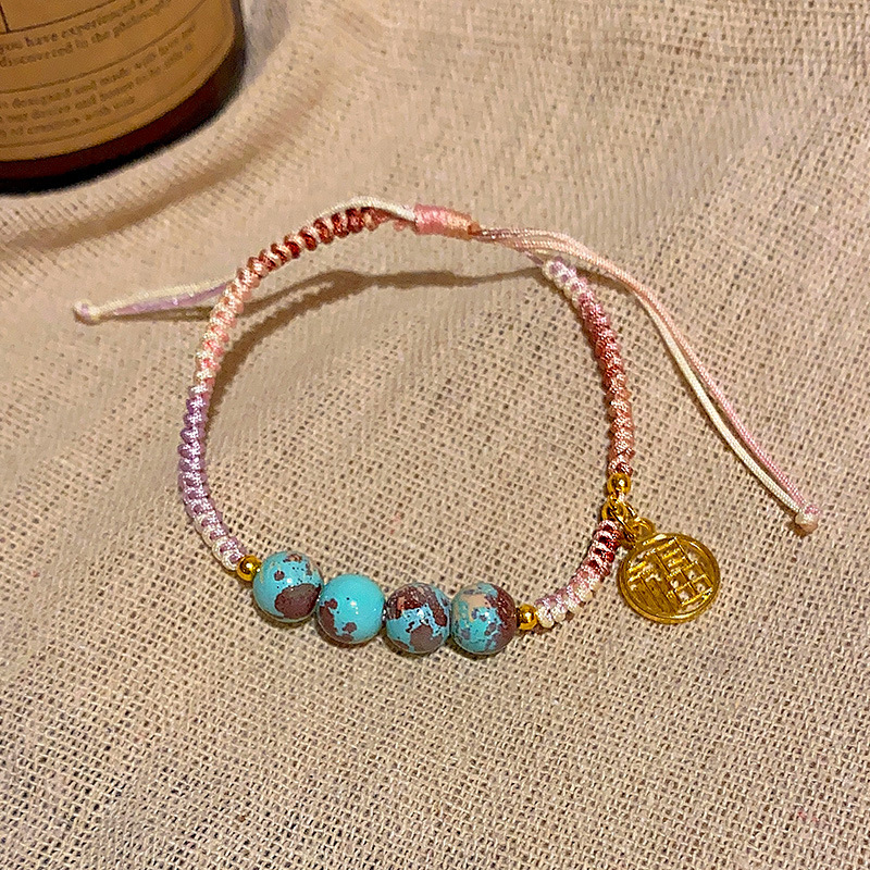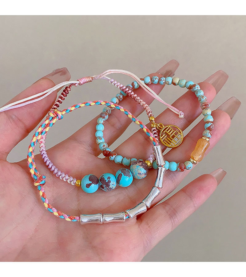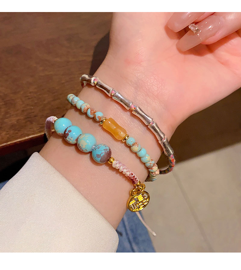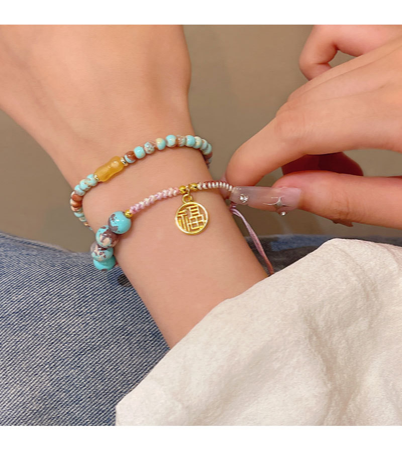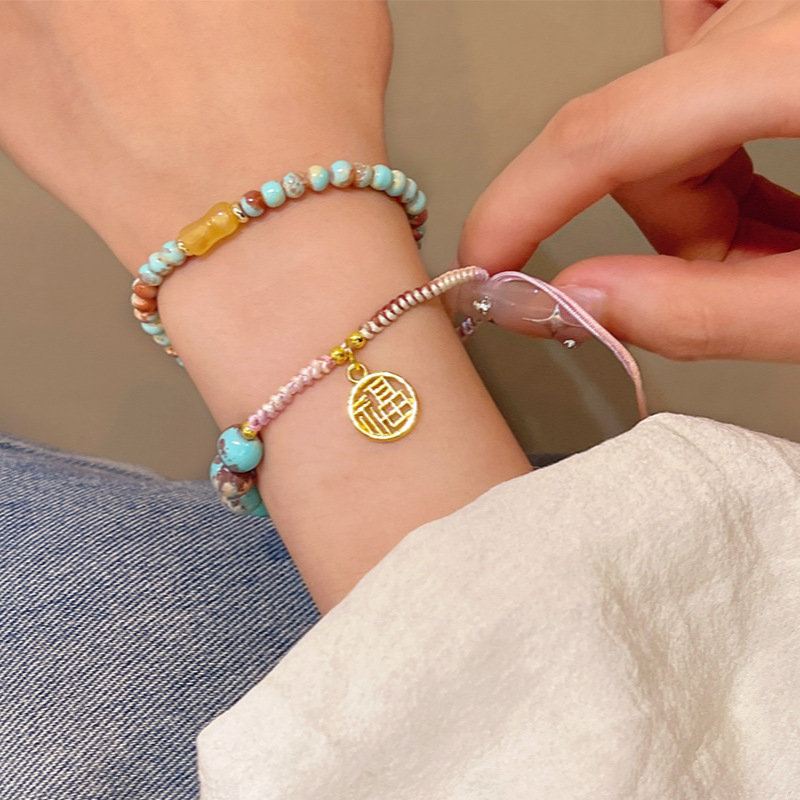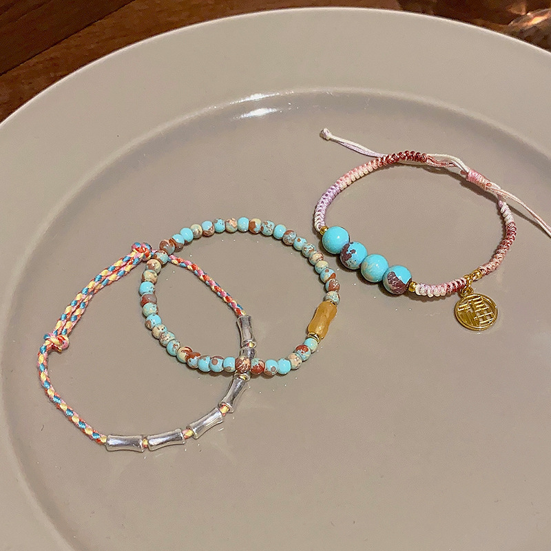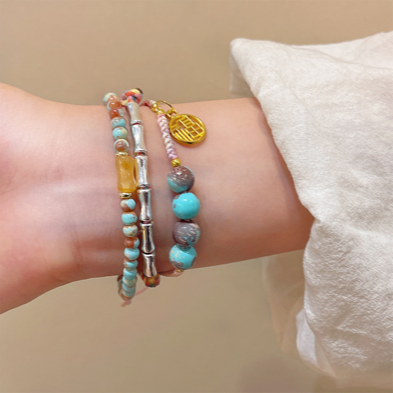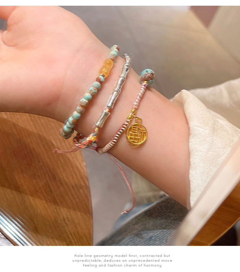 国风竹节串珠编织手链女款复古轻奢小众福牌手绳新中式爆款手饰品