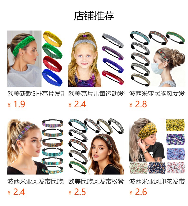 欧美运动舞蹈亮片发带头带闪亮弹力比赛儿童演出发箍时尚发饰发卡