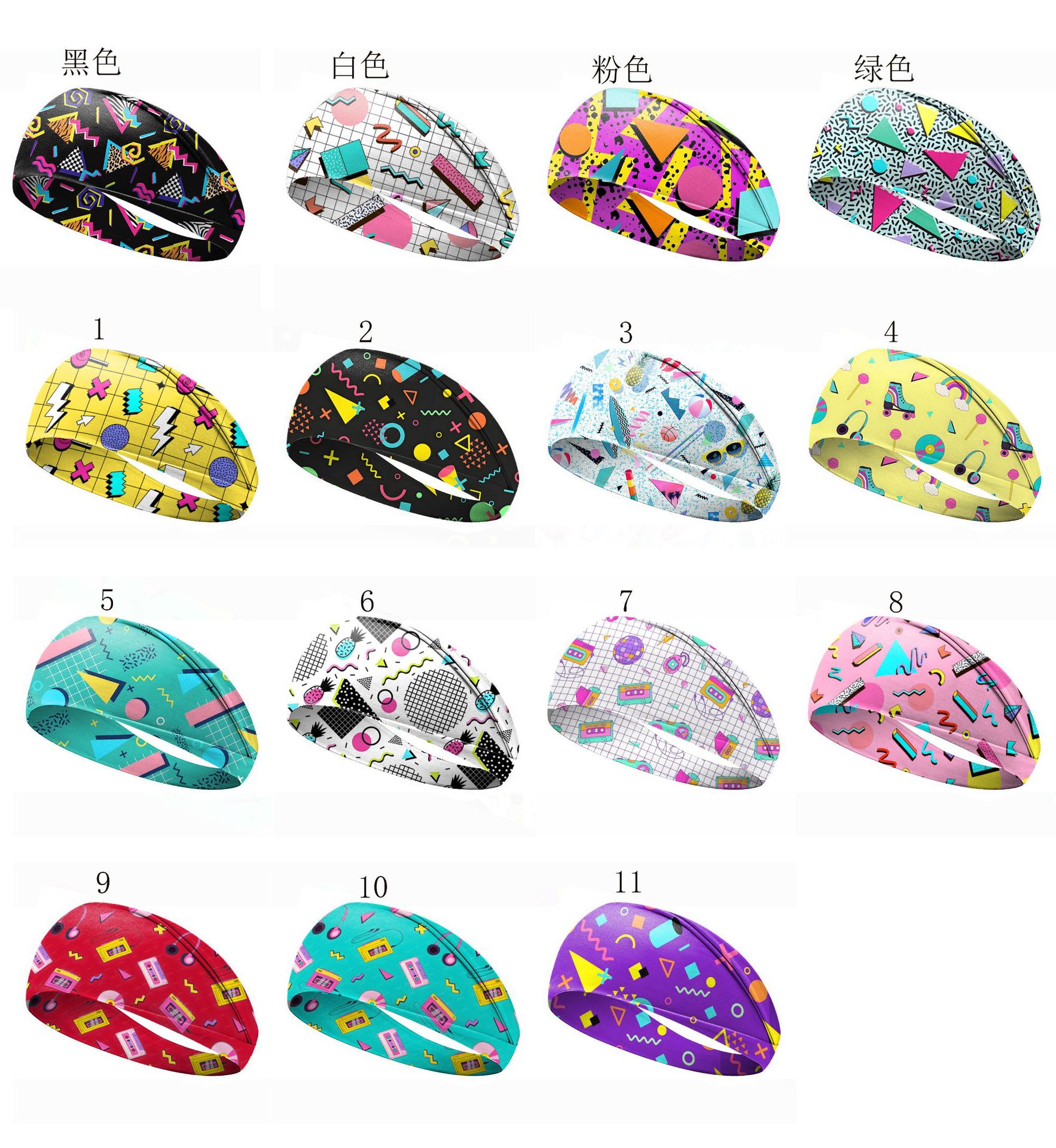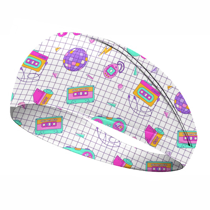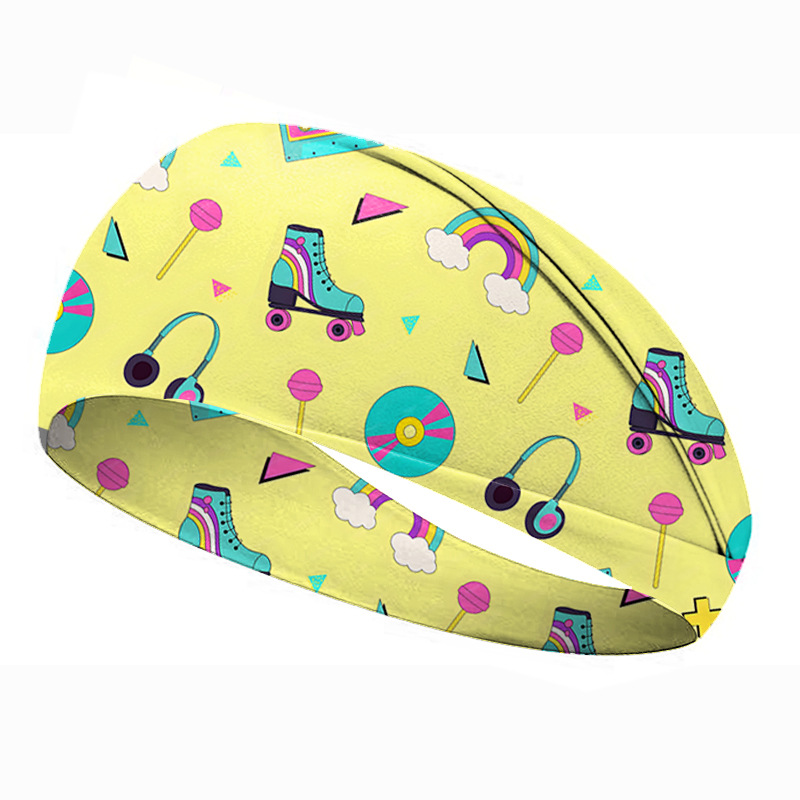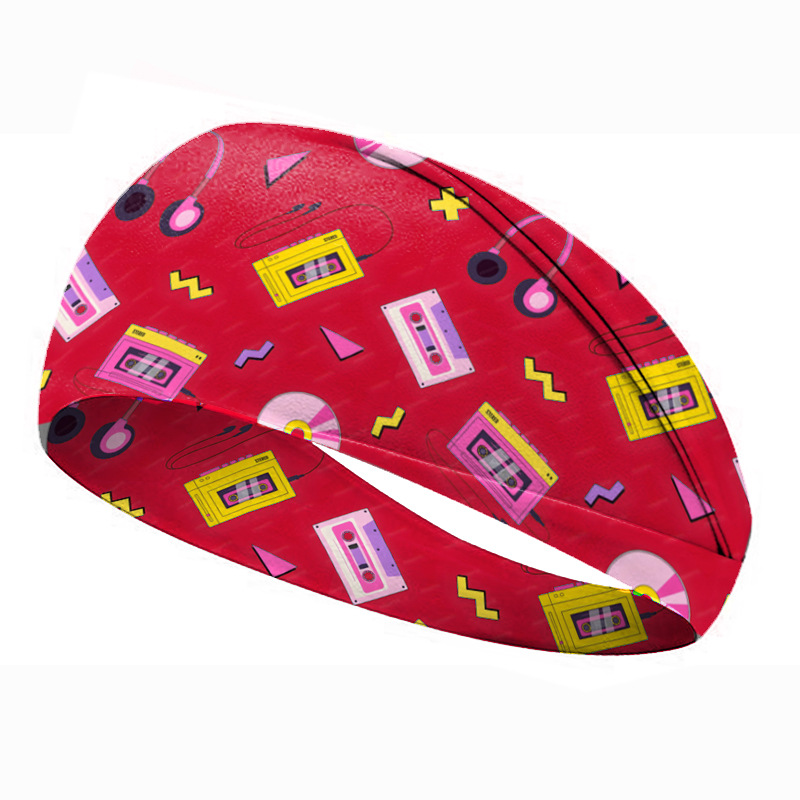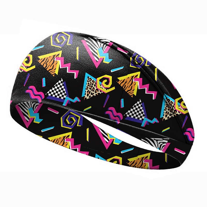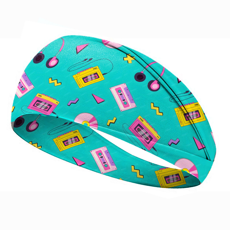 欧美80年代复古印花发带运动头带女发带吸汗止汗带男宽边瑜伽发饰