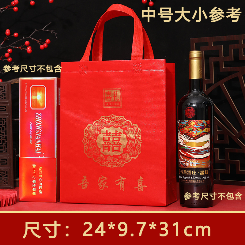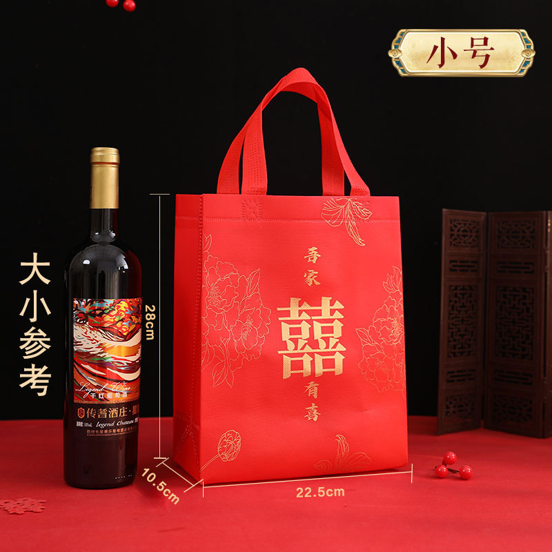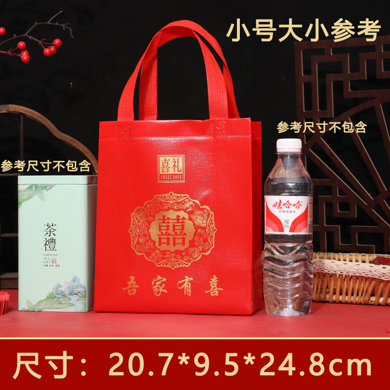 红色手提袋结婚喜糖盒大号婚礼回礼喜字礼品袋伴手礼盒包装袋帆布