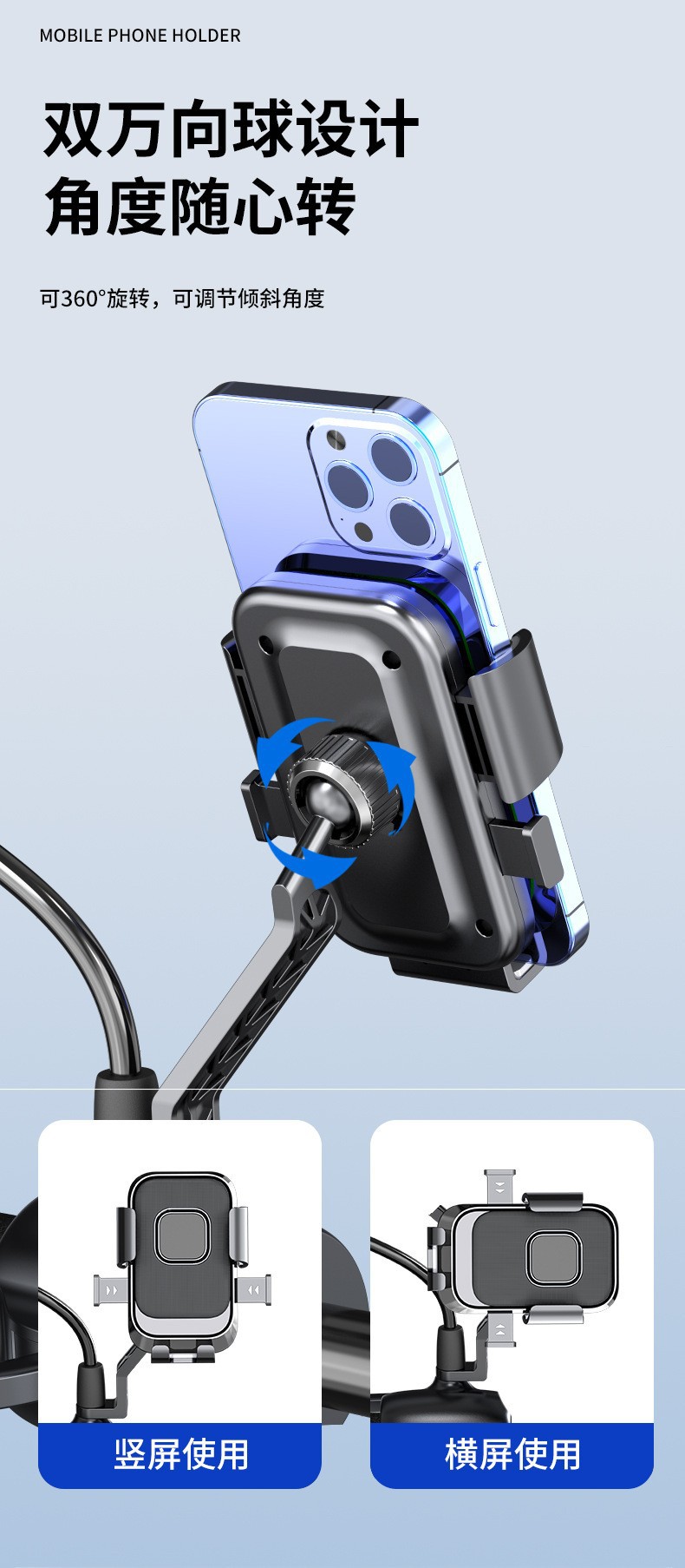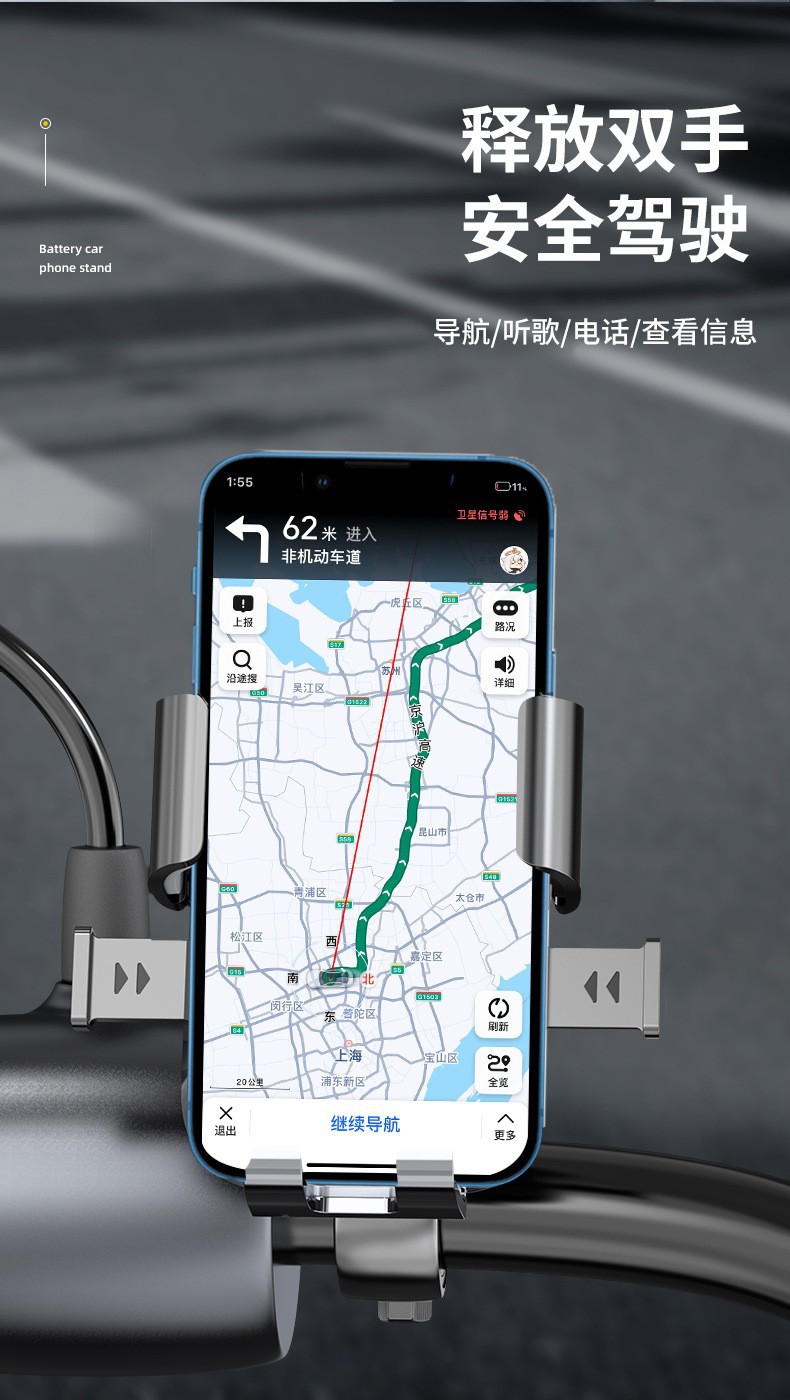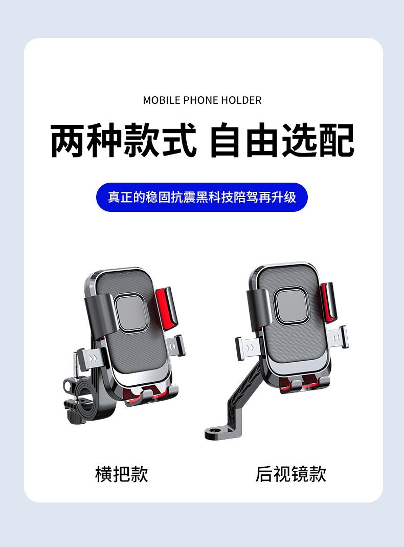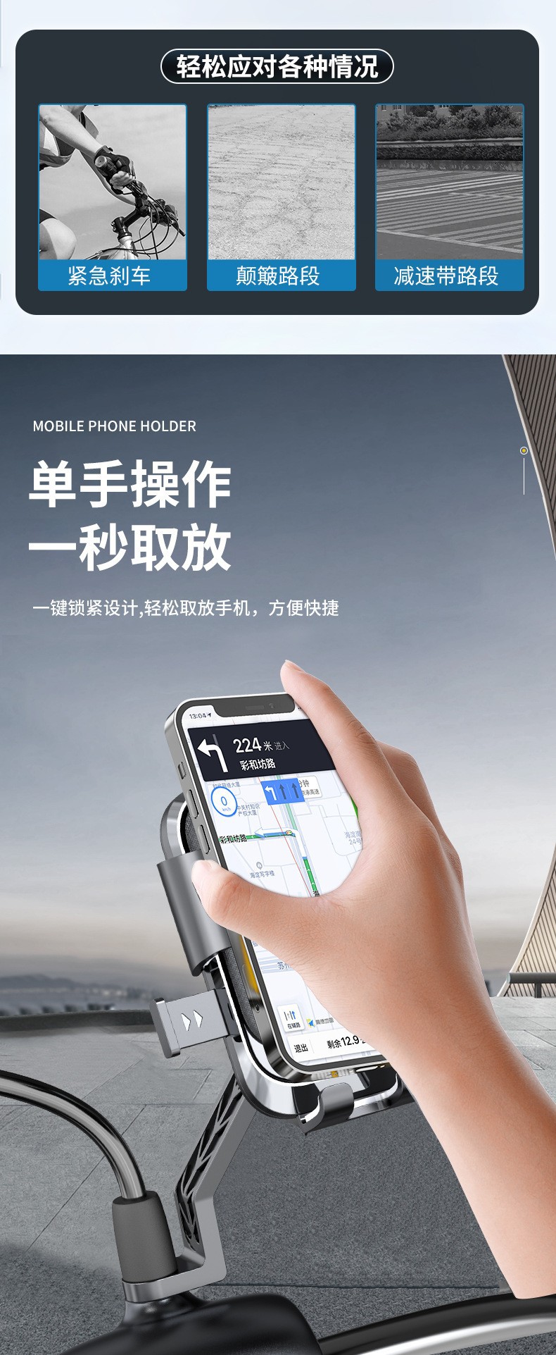 新款跨境电动车车载手机支架自行车摩托车外卖导航手机防震支撑架
