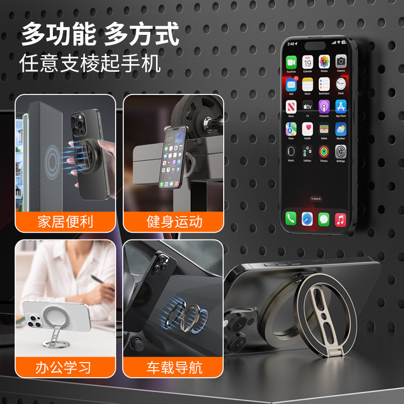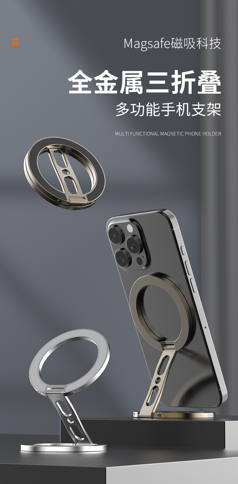 新款磁吸折叠手机指环支架金属Z型通用双面磁吸360调节指环扣支架
