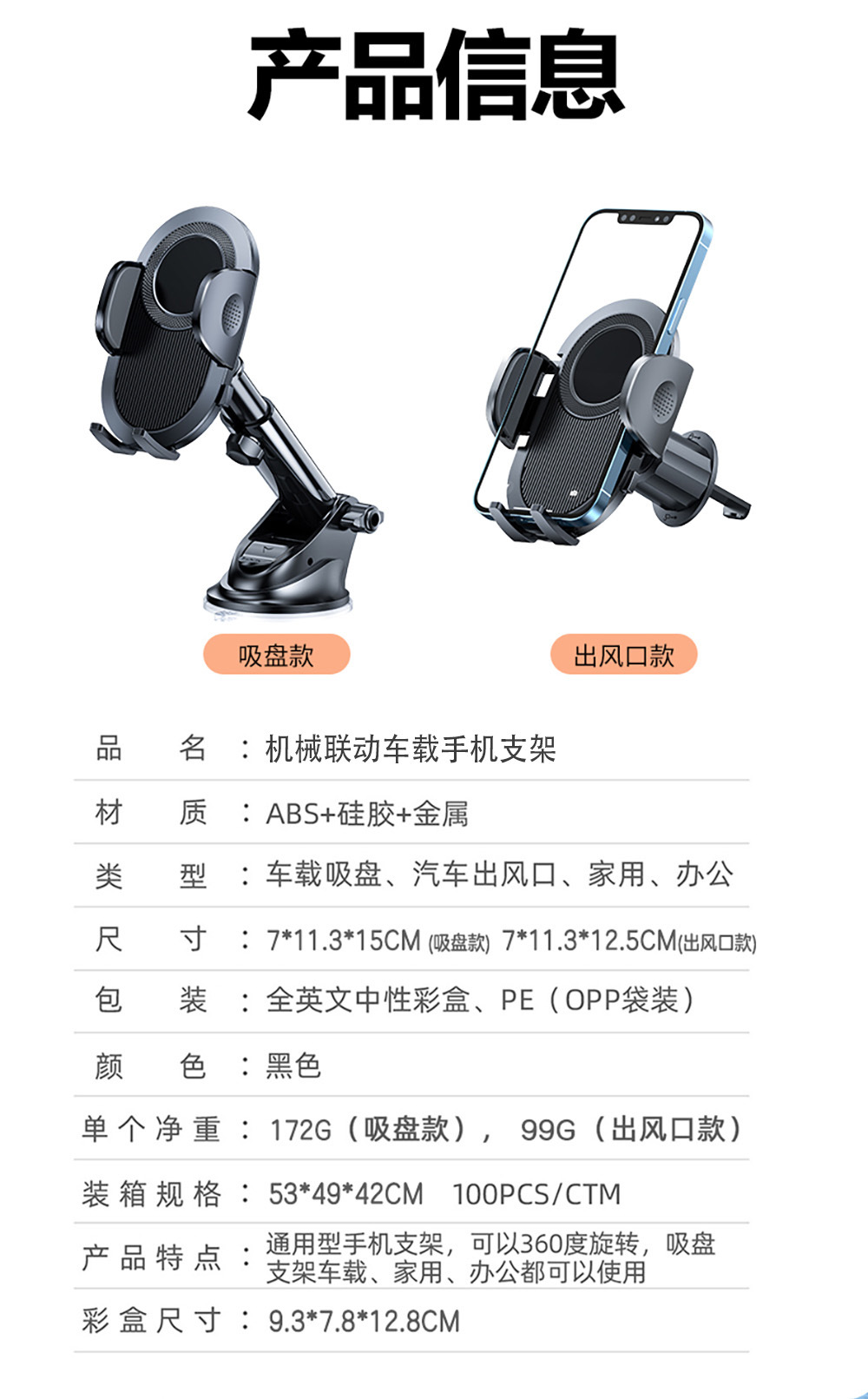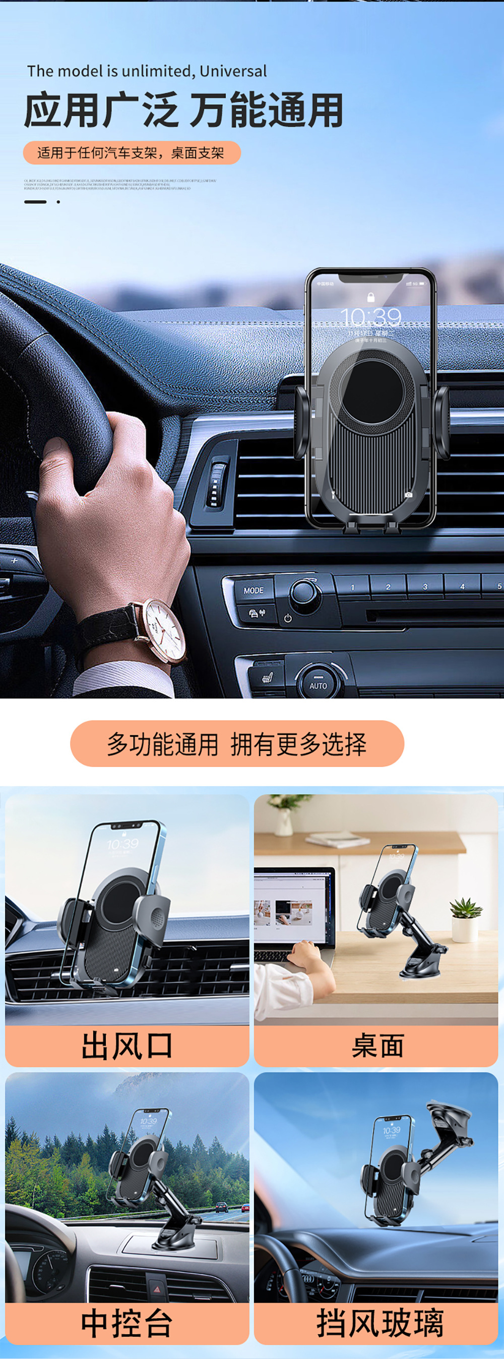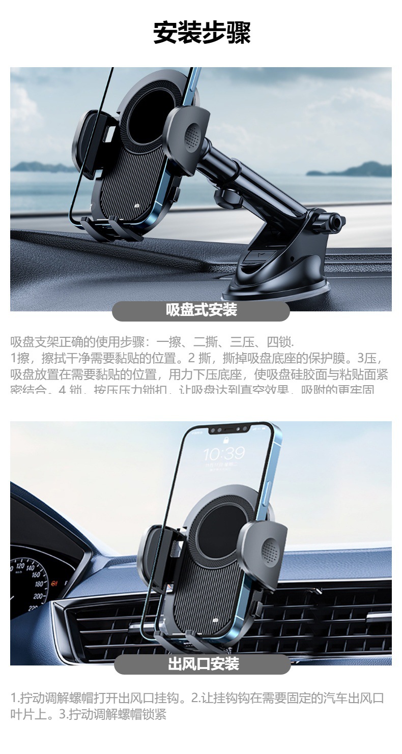 新款车载手机支架汽车用手机架导航车内吸盘仪表台前挡中控台固定