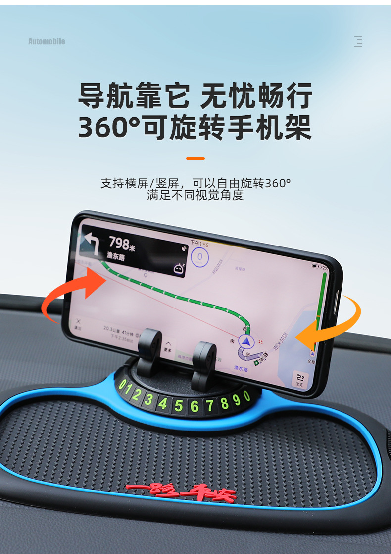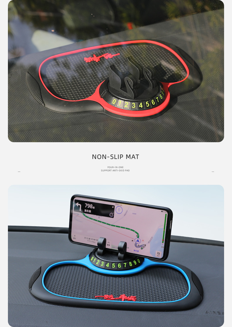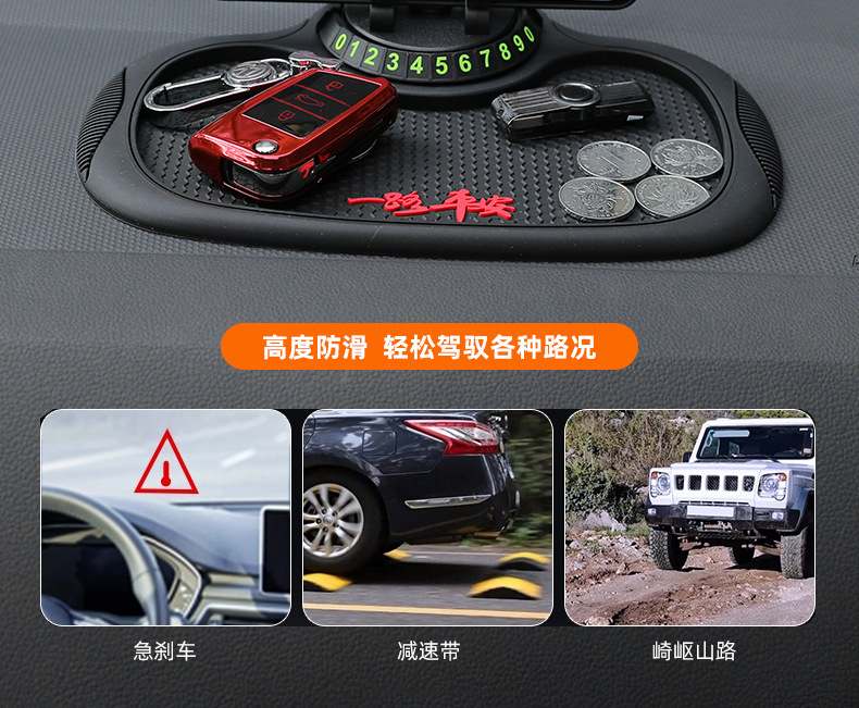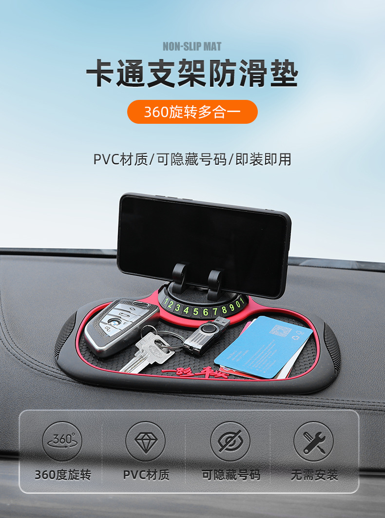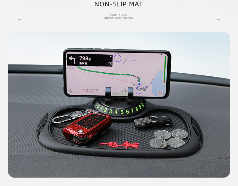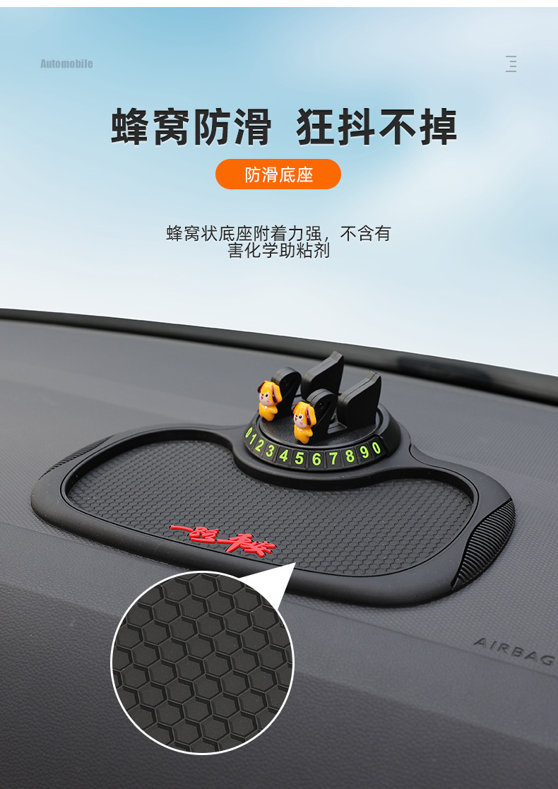 B-25车载防滑垫三合一置物停车导航支架PVC隐藏号码蜂窝防滑垫