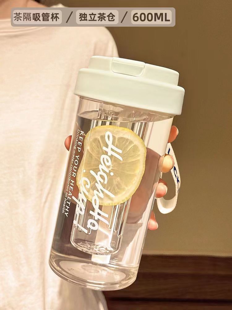 2025新款带茶隔吸管杯夏天水杯女生高颜值夏季耐高温网红泡茶杯子