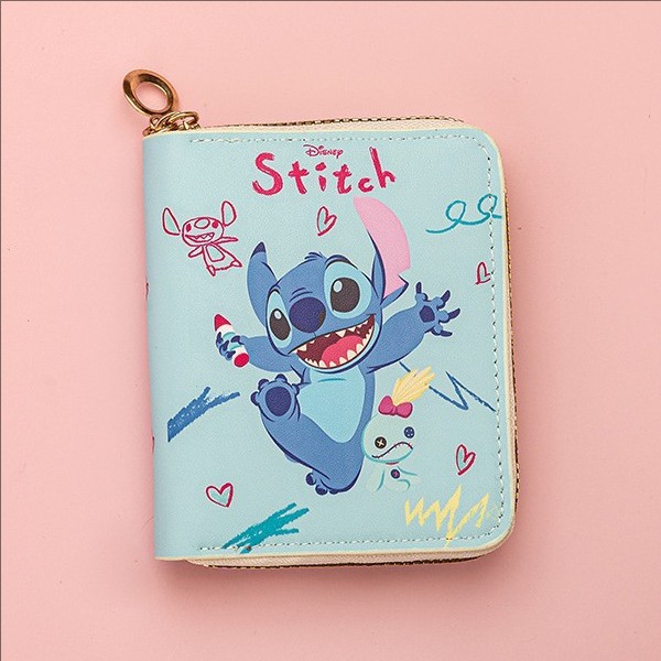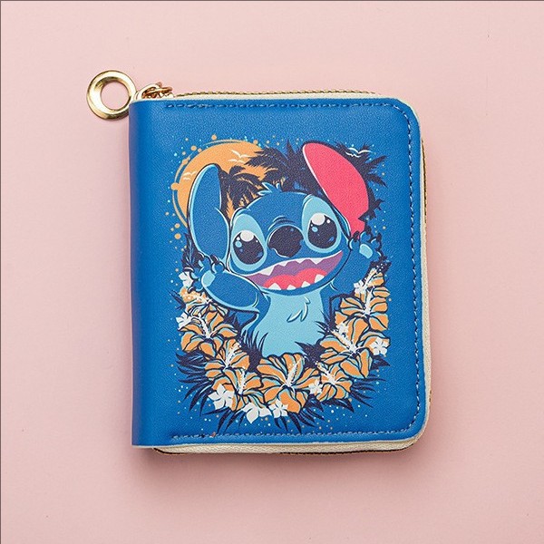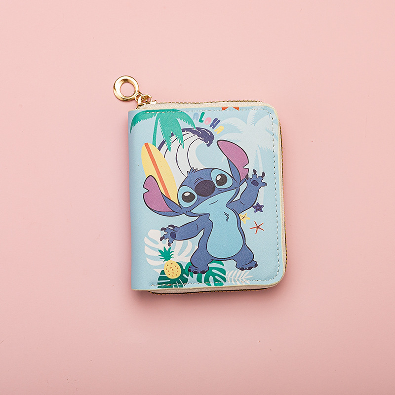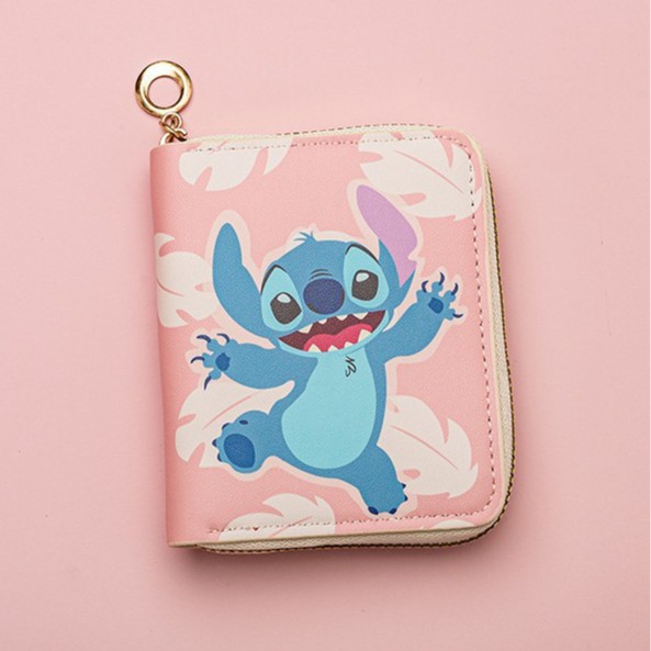 新款高颜值史迪仔短款可爱拉链印花简约实用卡包零钱包手拿包花朵
