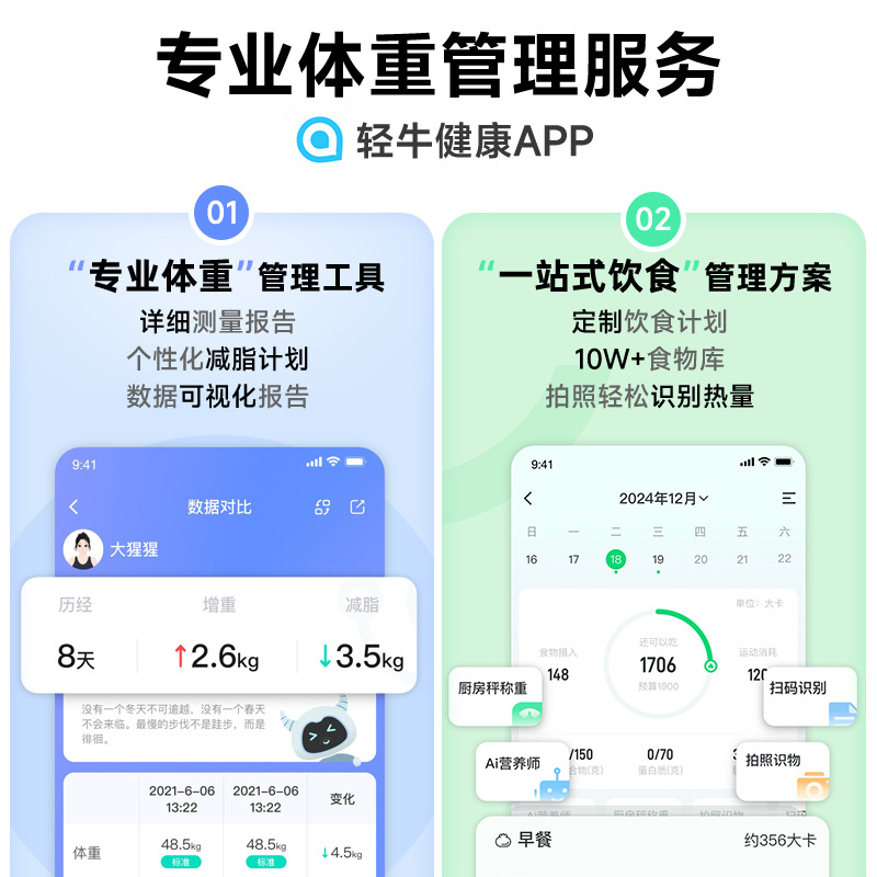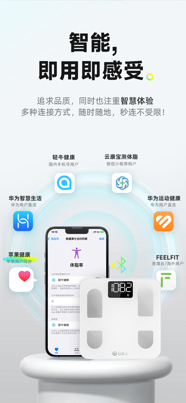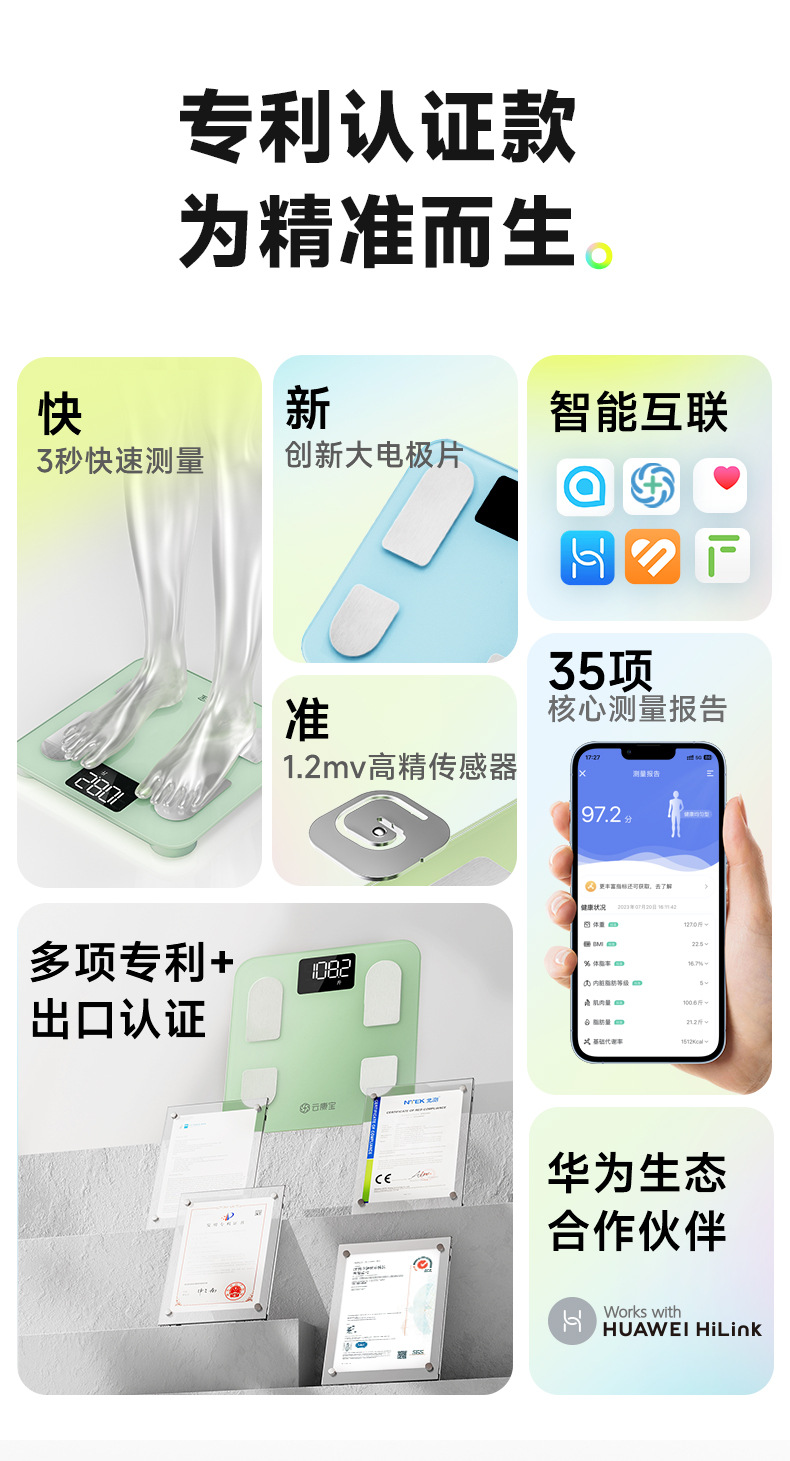 智能体重秤BMI电子称高精度蓝牙减脂健康秤电池测体脂称体脂秤
