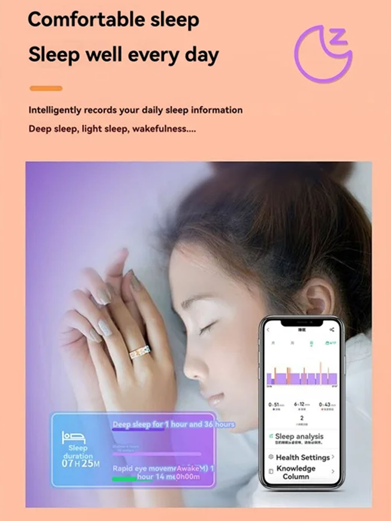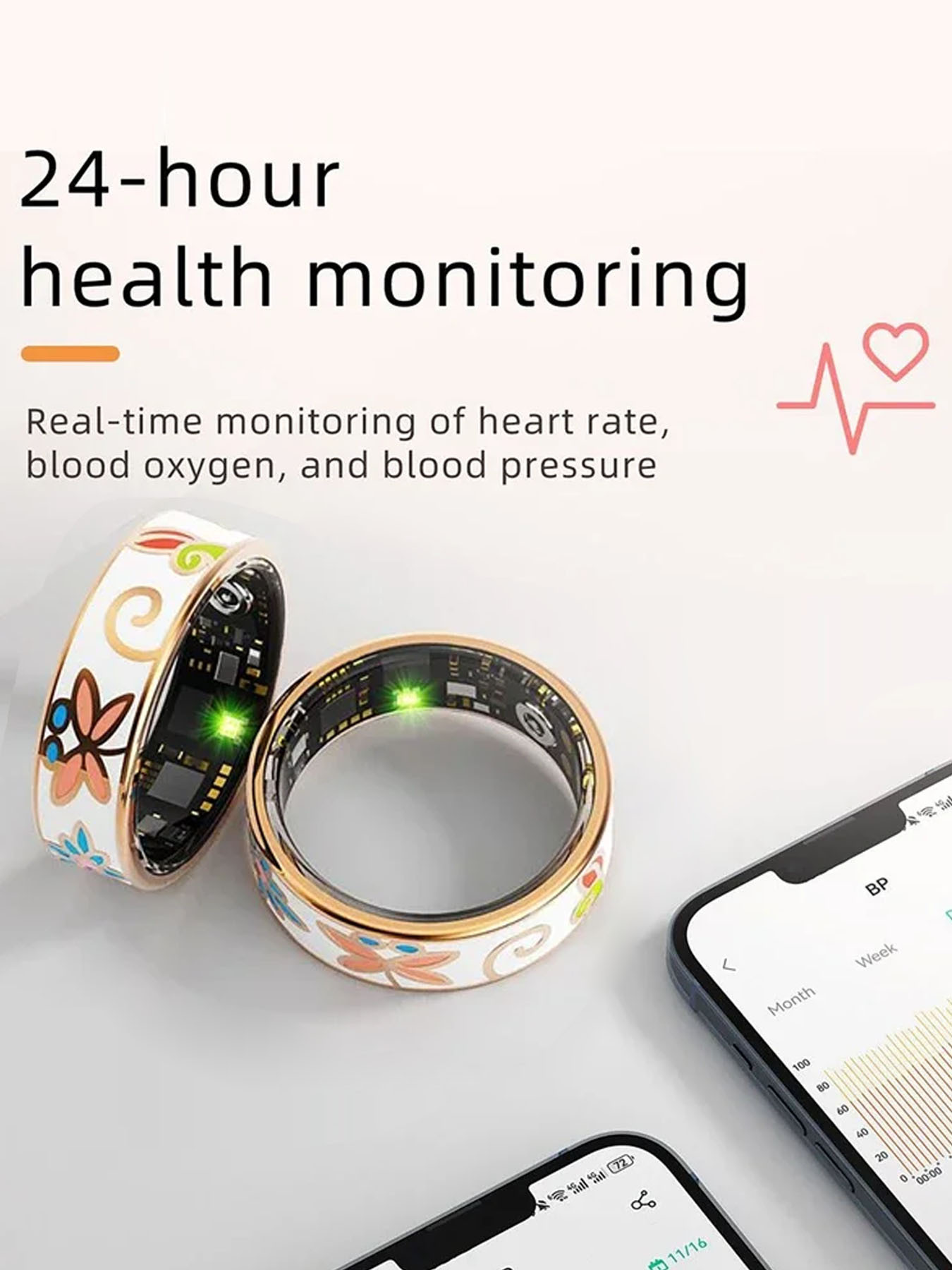 亚马逊珐琅彩智能戒指睡眠心率睡眠健康监测运动计步防水智能指环