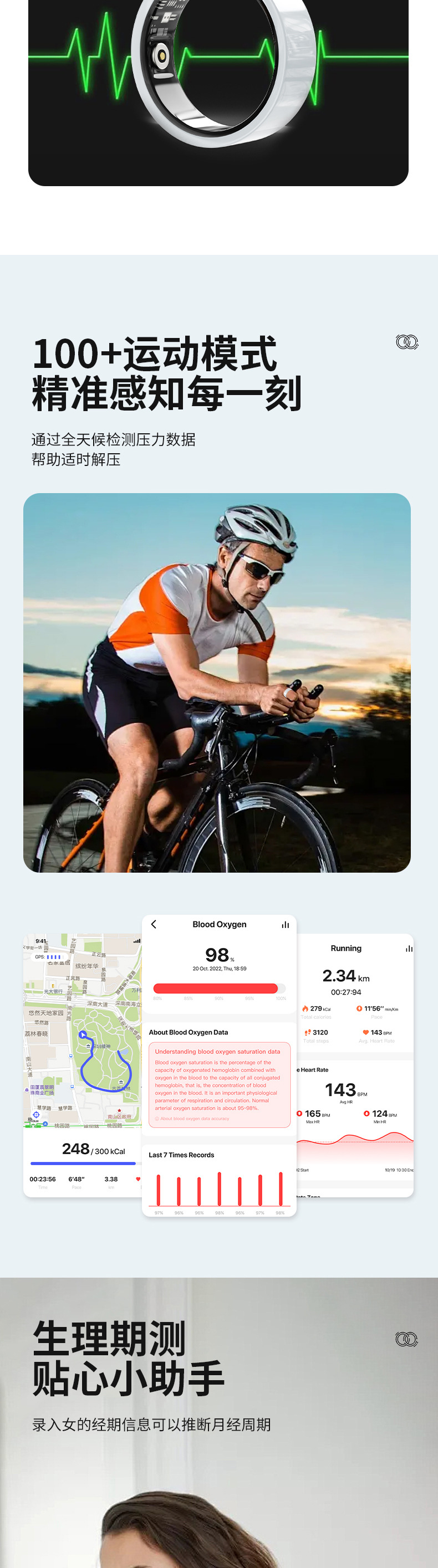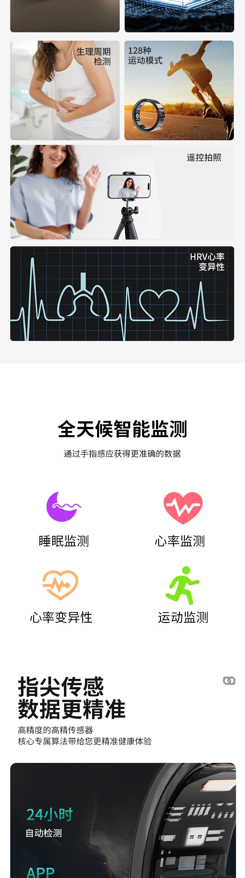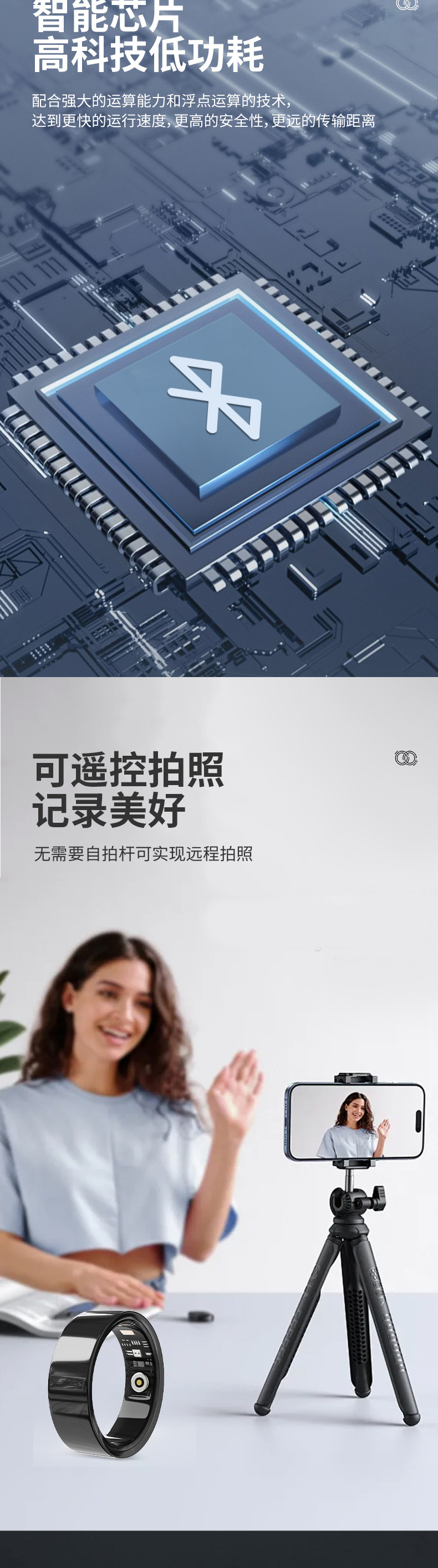 2025新款智能戒指指环压力血氧睡眠心率步数监测多种运动模式拍照