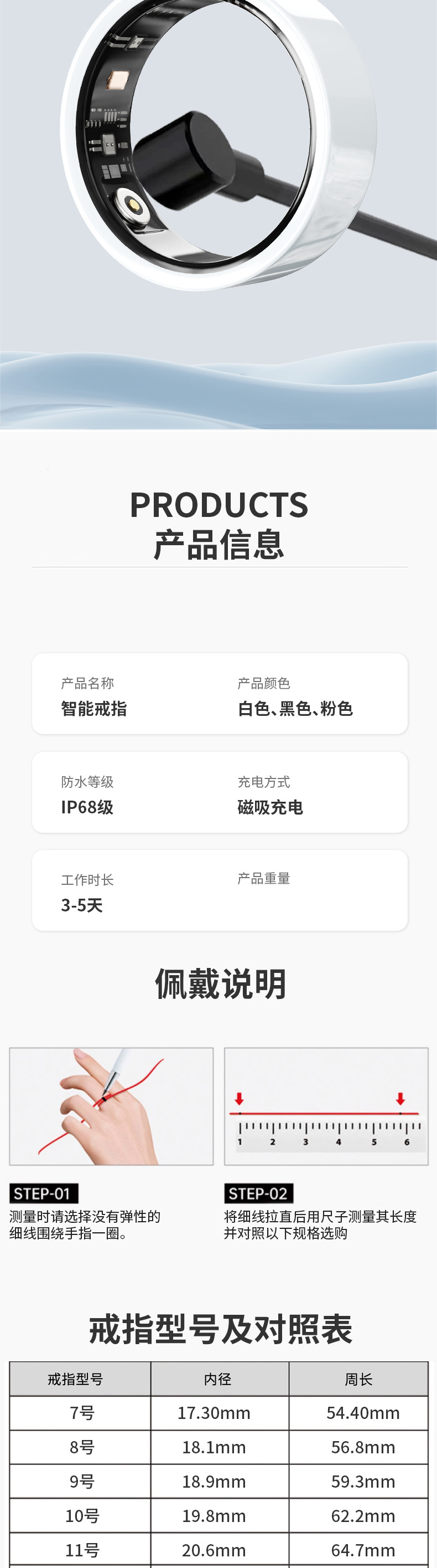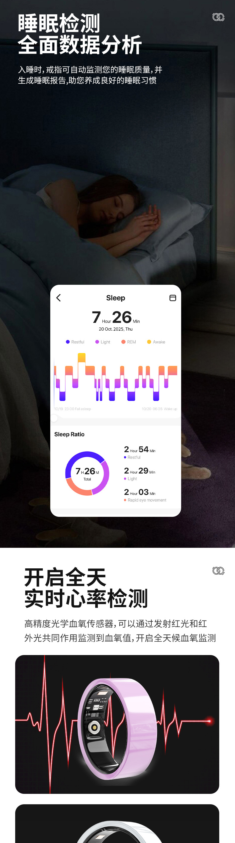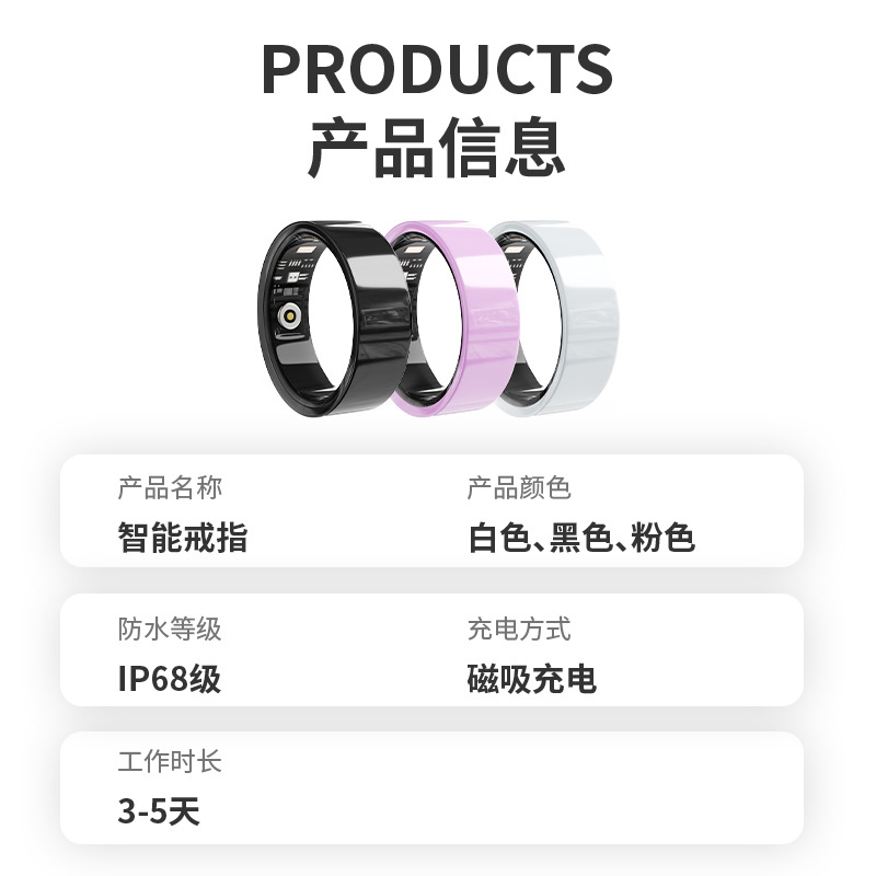 2025新款智能戒指指环压力血氧睡眠心率步数监测多种运动模式拍照