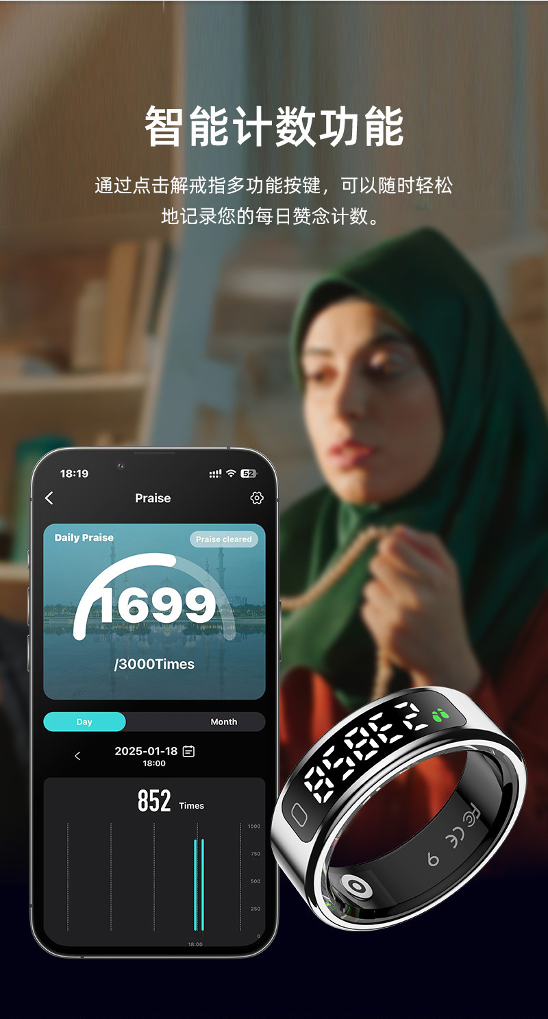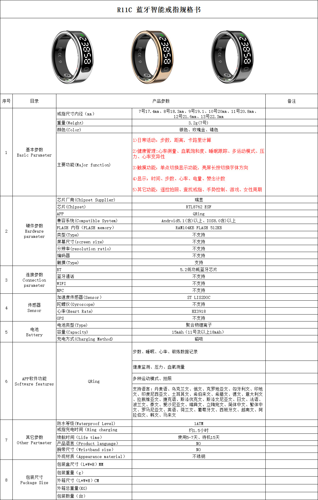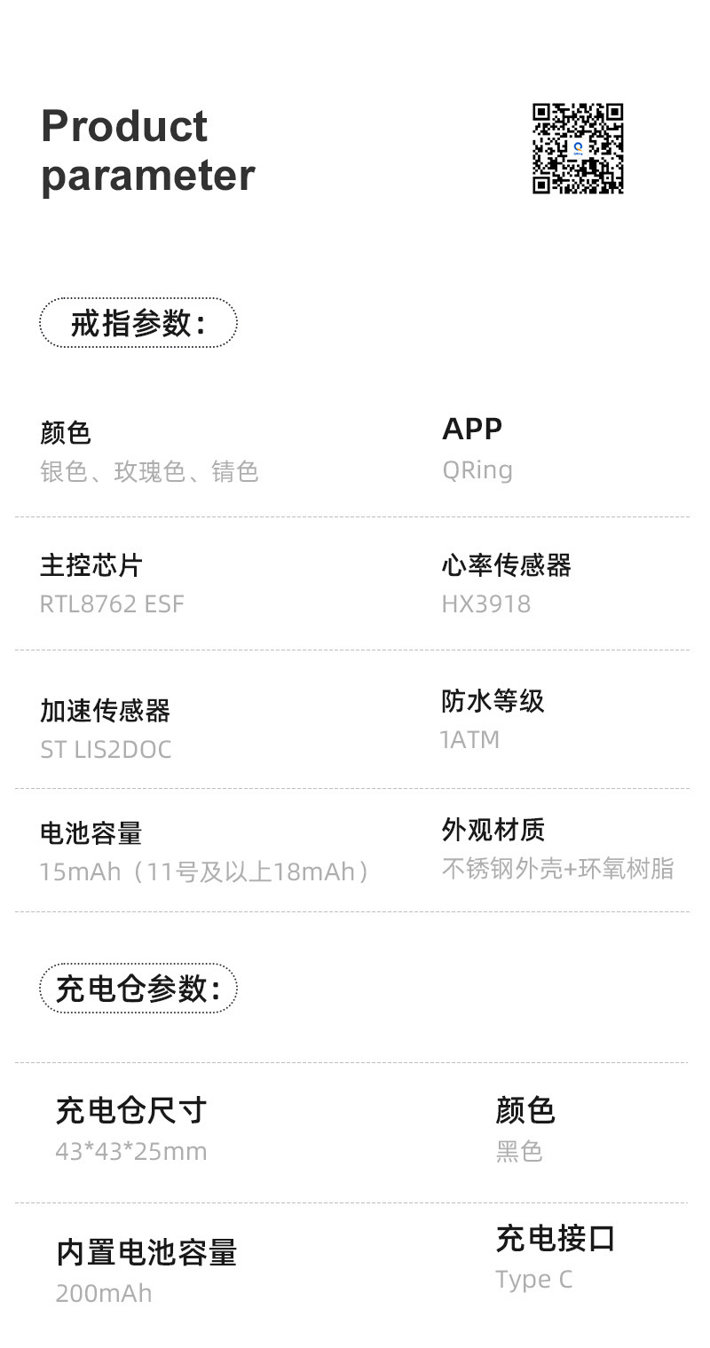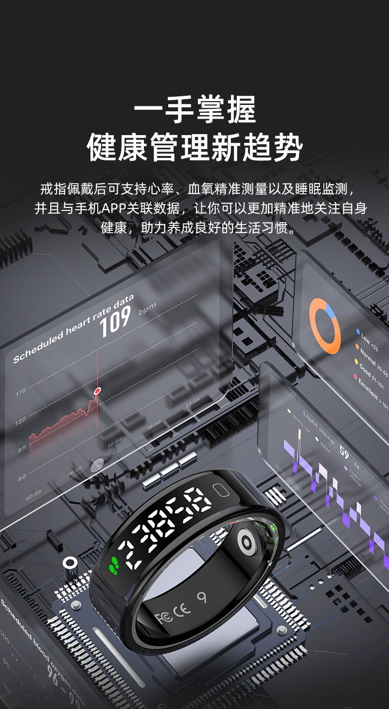 R11C(Qring)心率血氧睡眠计步运动健康监测显示屏屏幕智能戒指