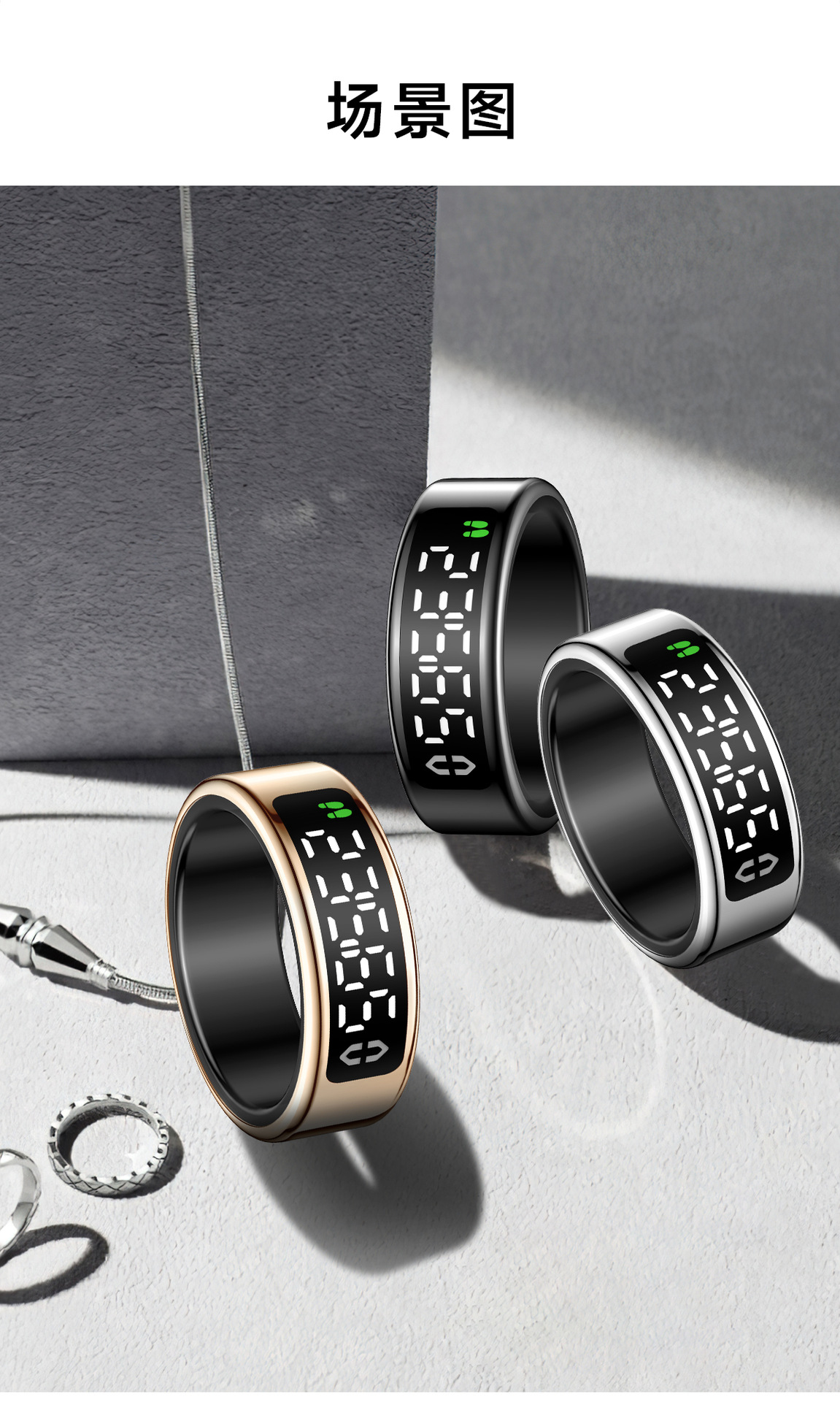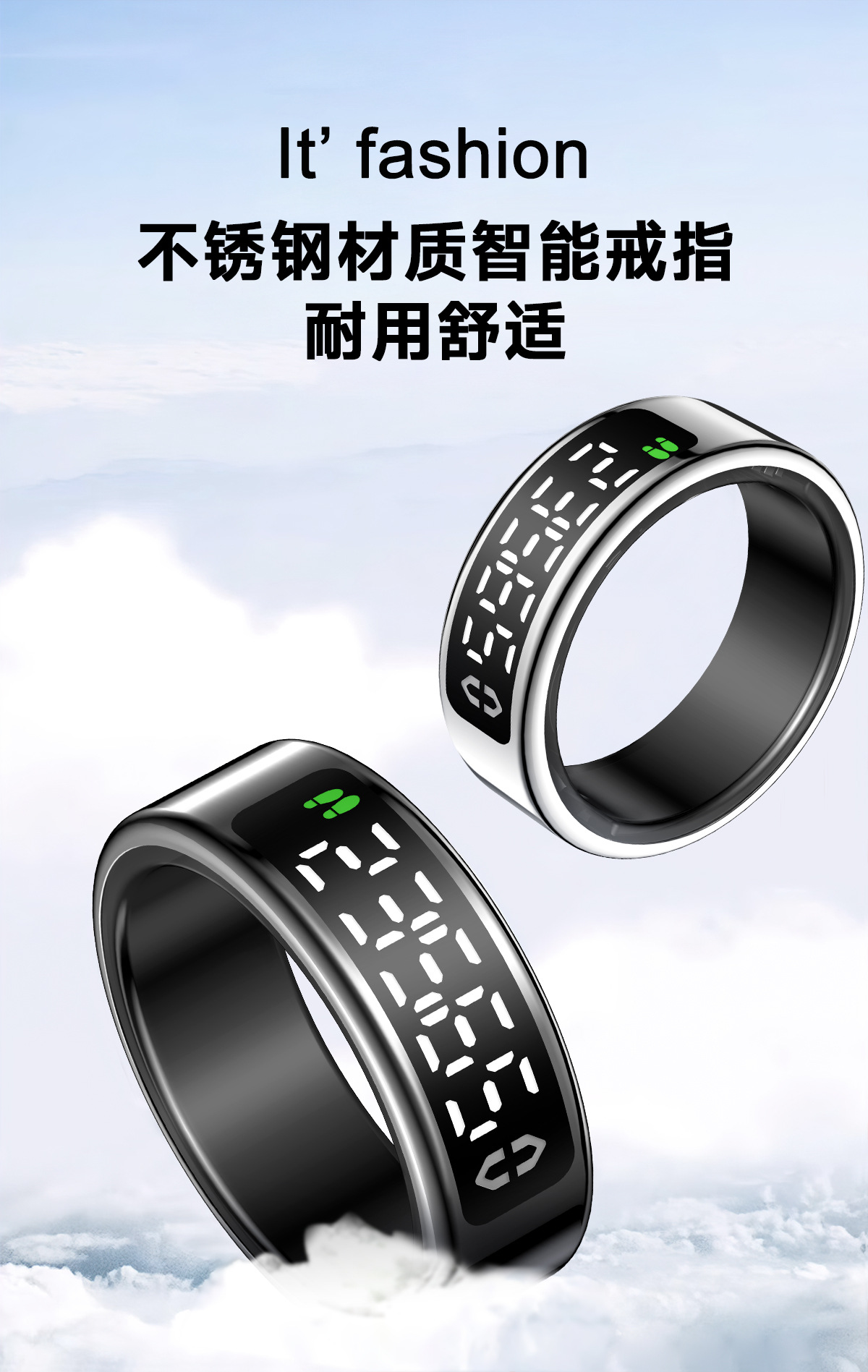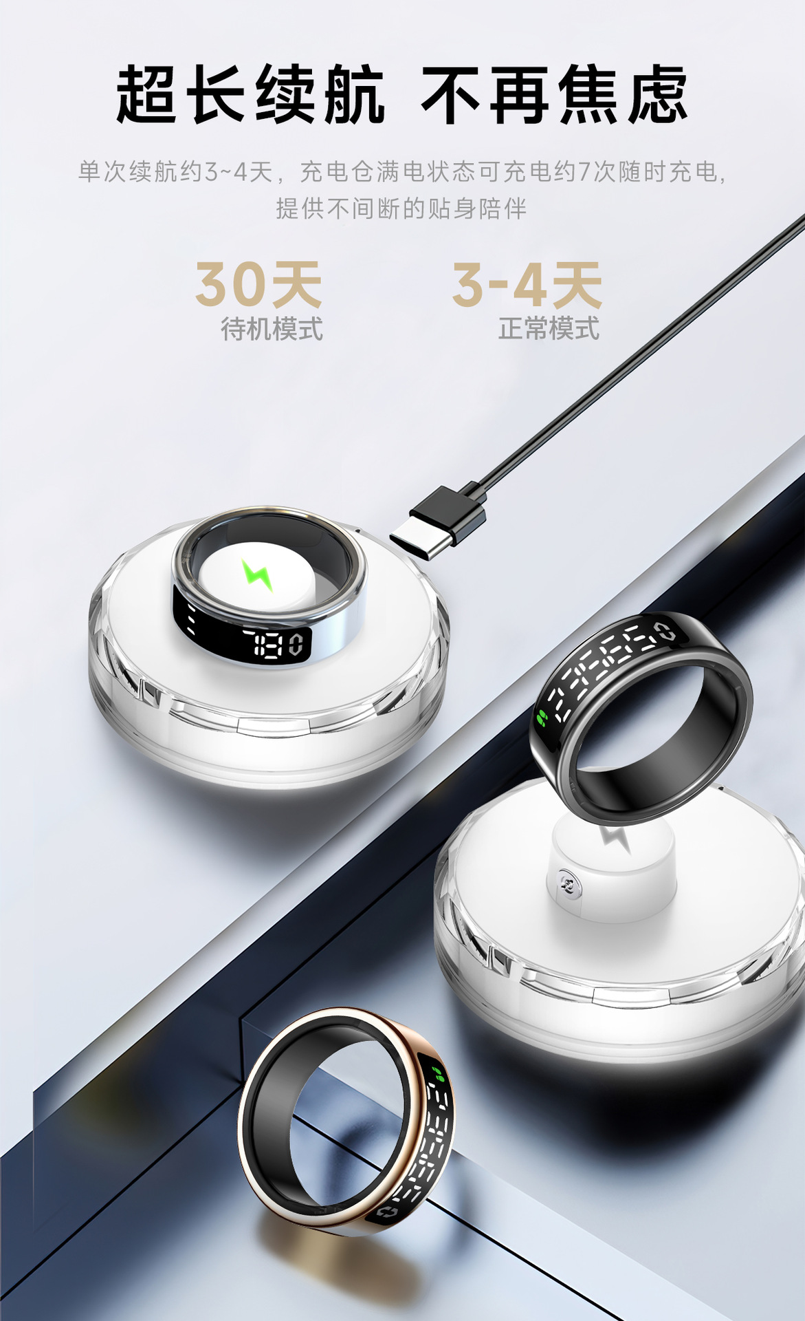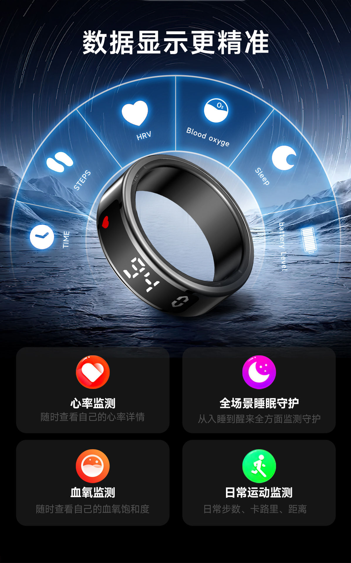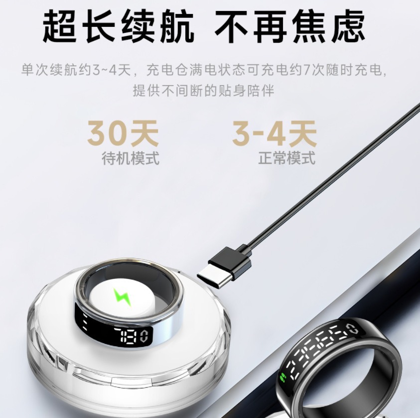 跨境智能戒指全功能健康监测心率睡眠运动带显示屏智能指环批发