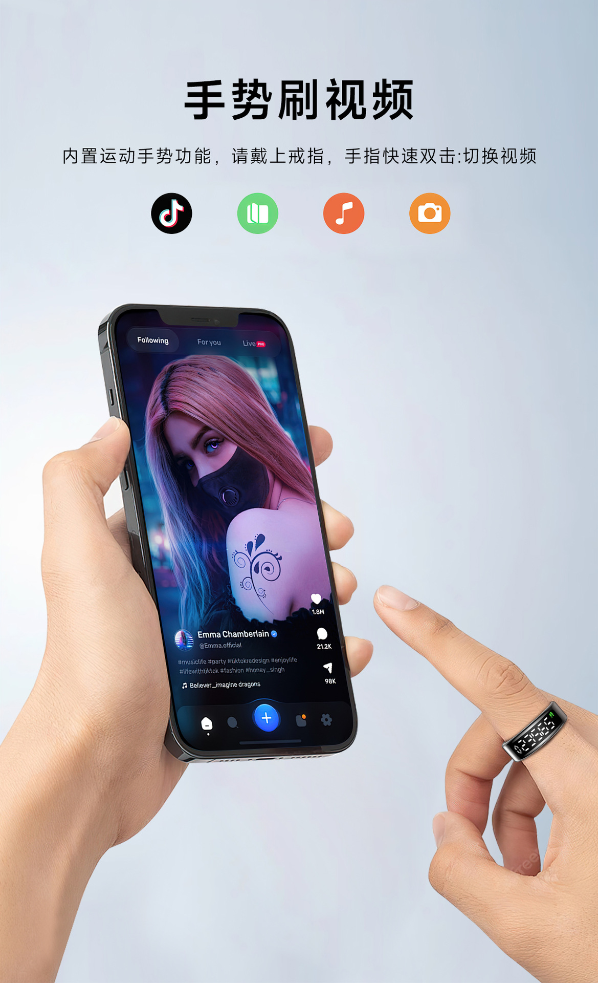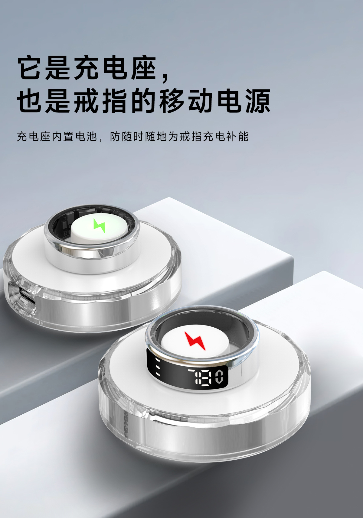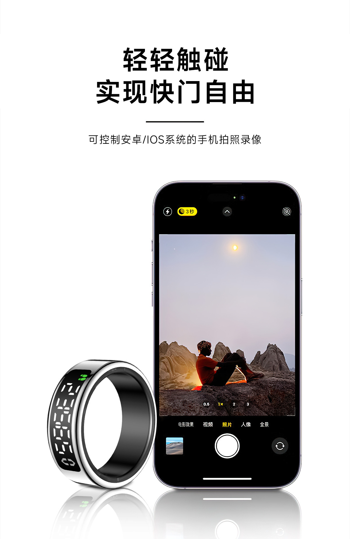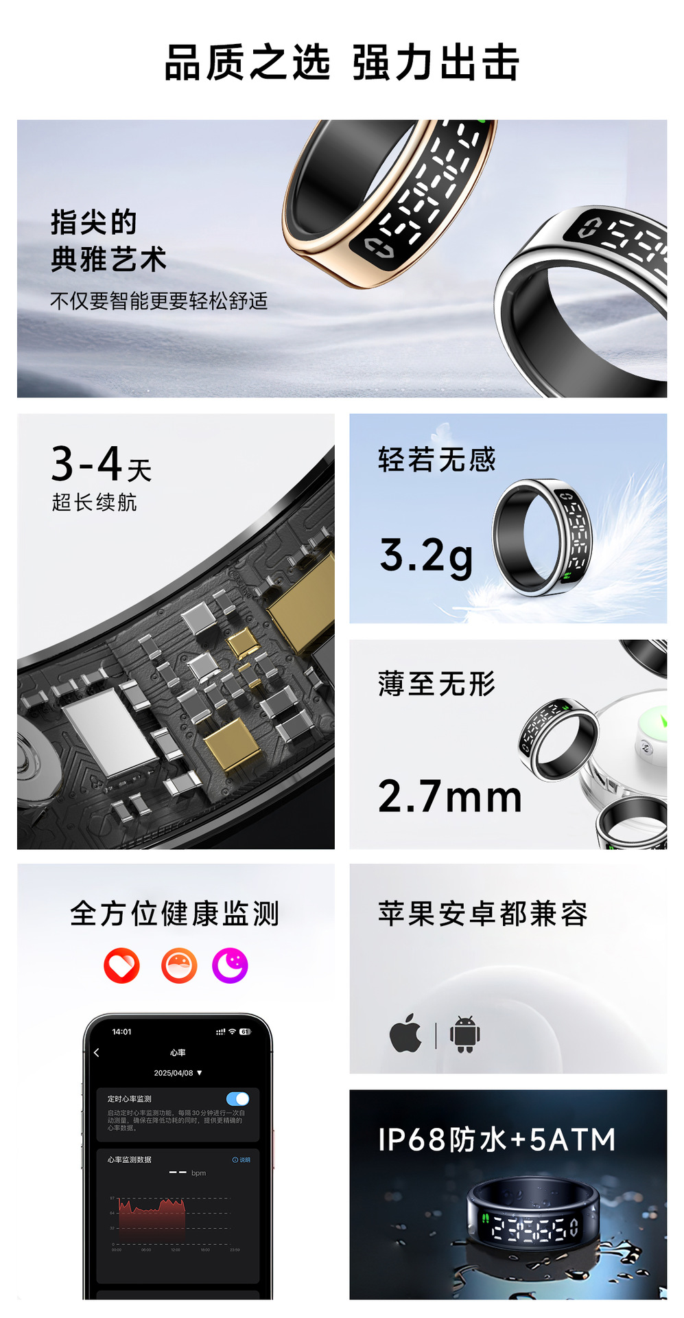 跨境智能戒指全功能健康监测心率睡眠运动带显示屏智能指环批发