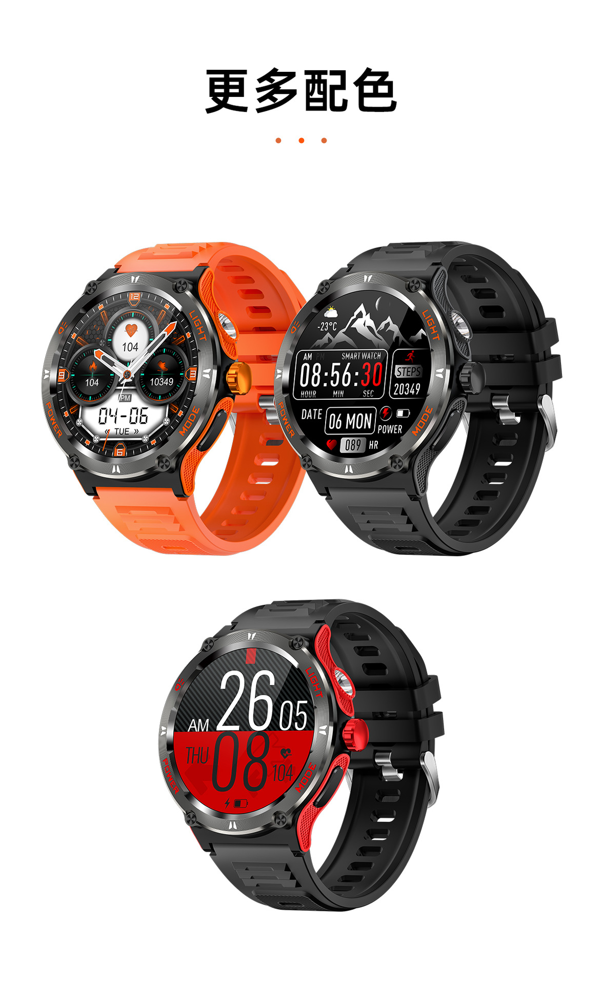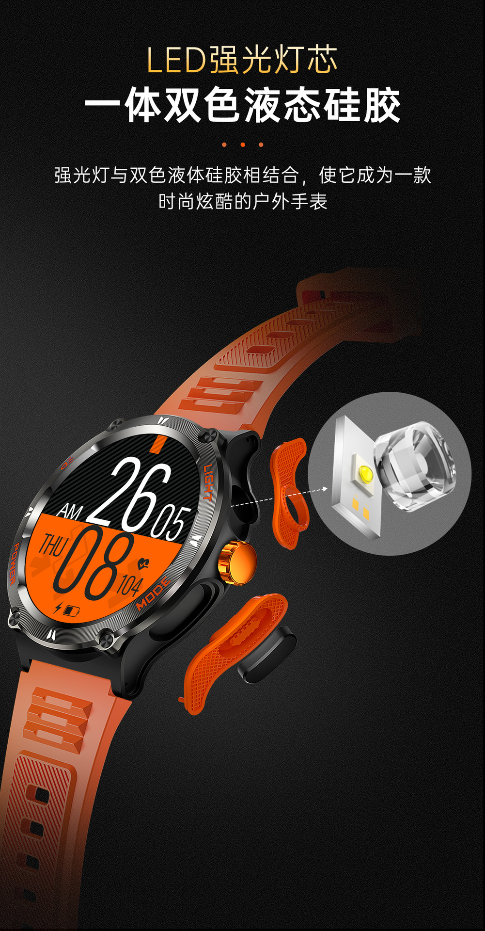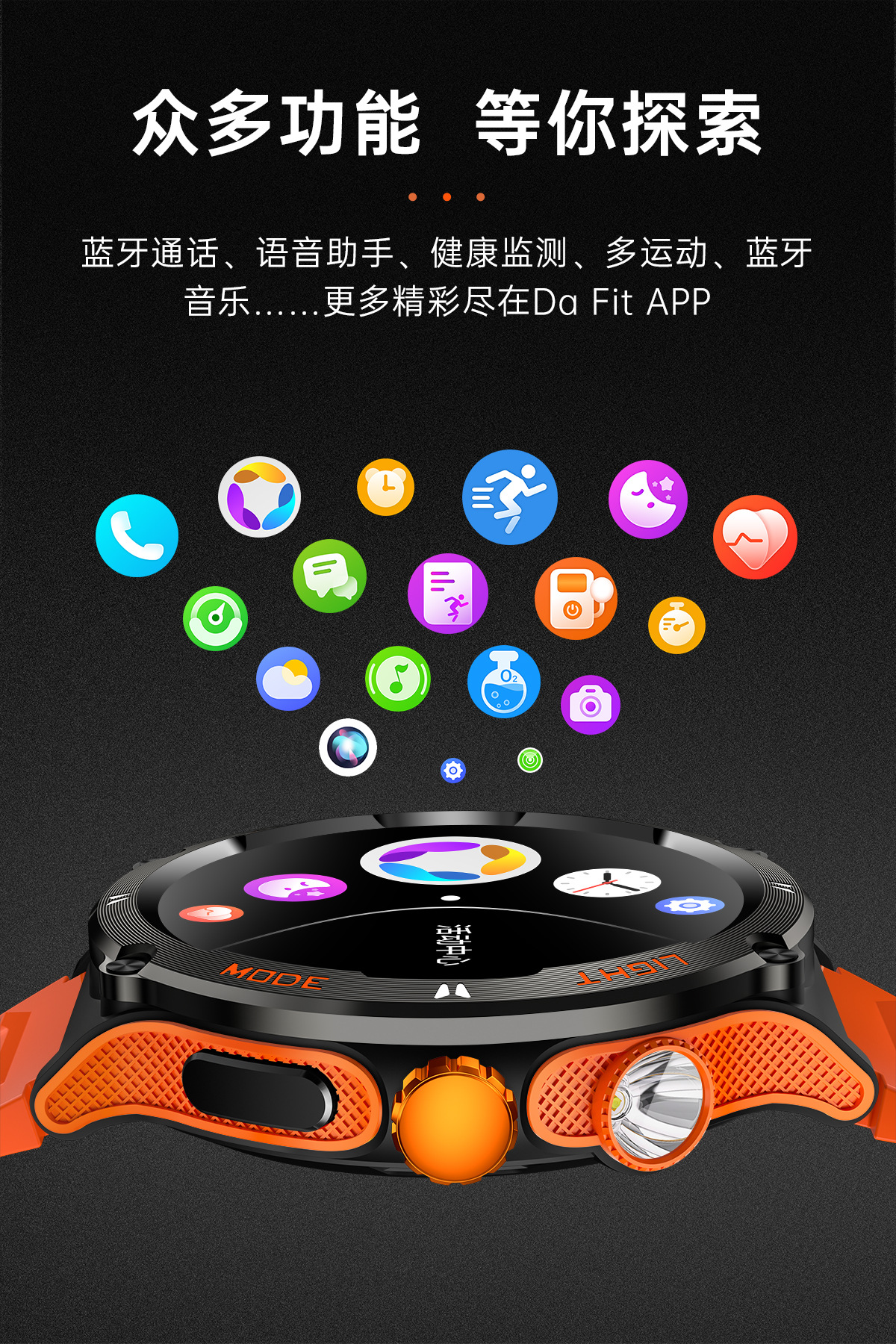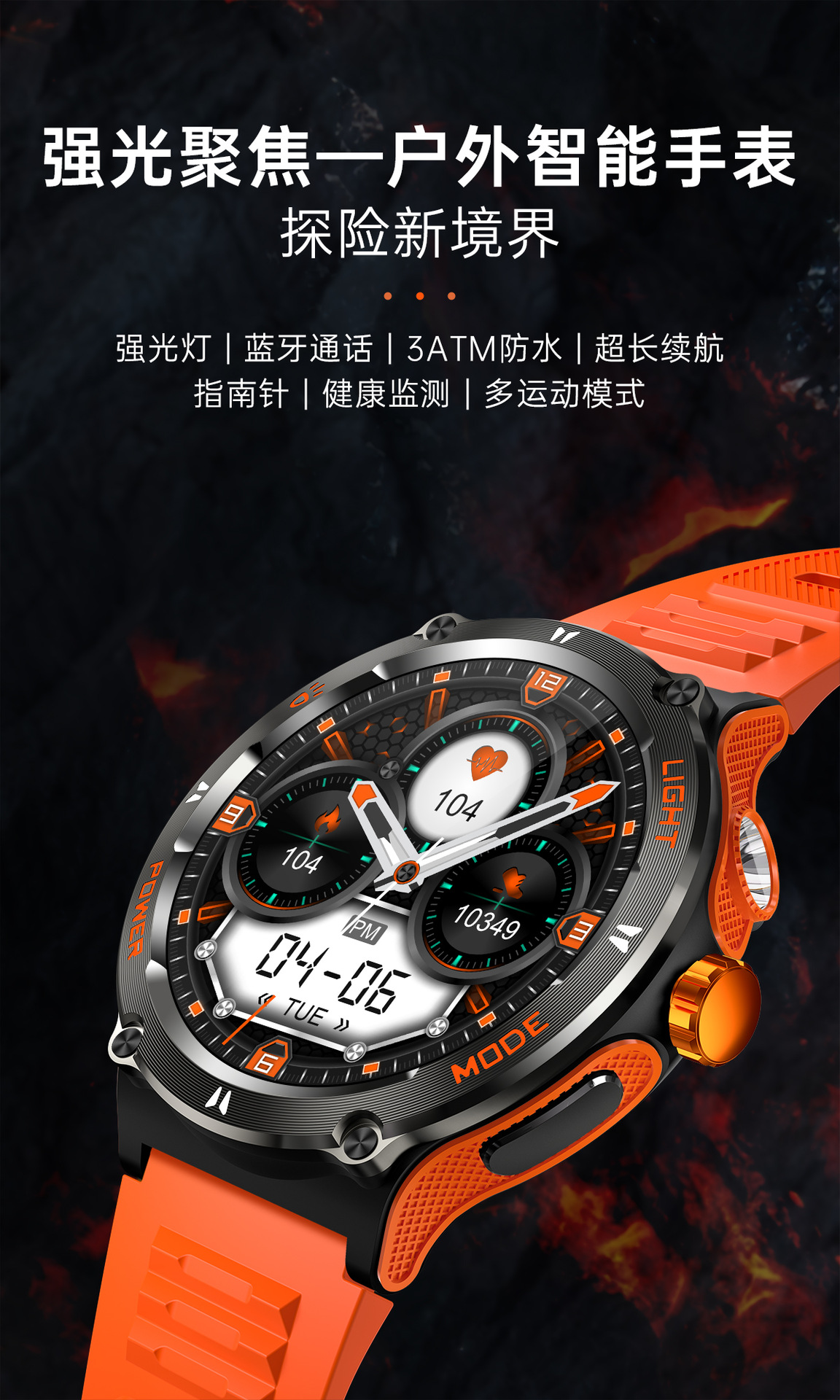 新品KT76智能手表户外三防运动蓝牙通话手电筒深防水健康监测