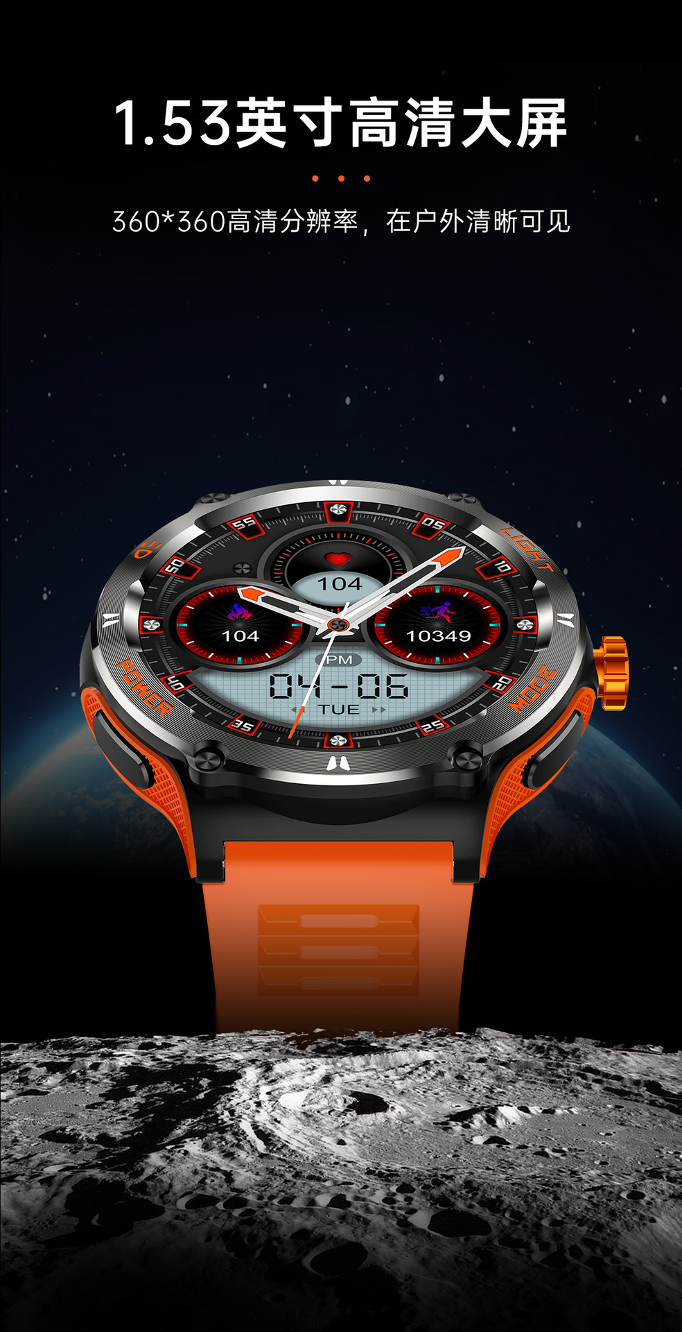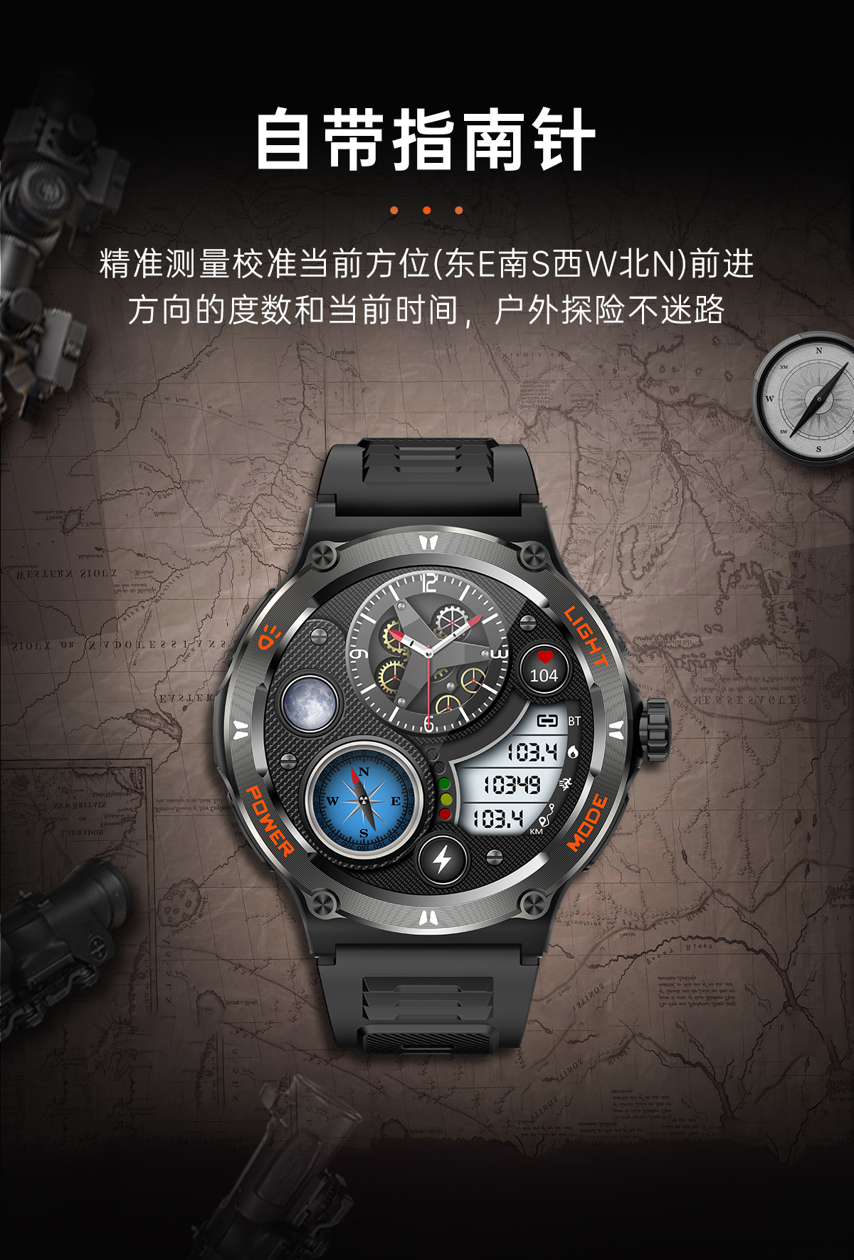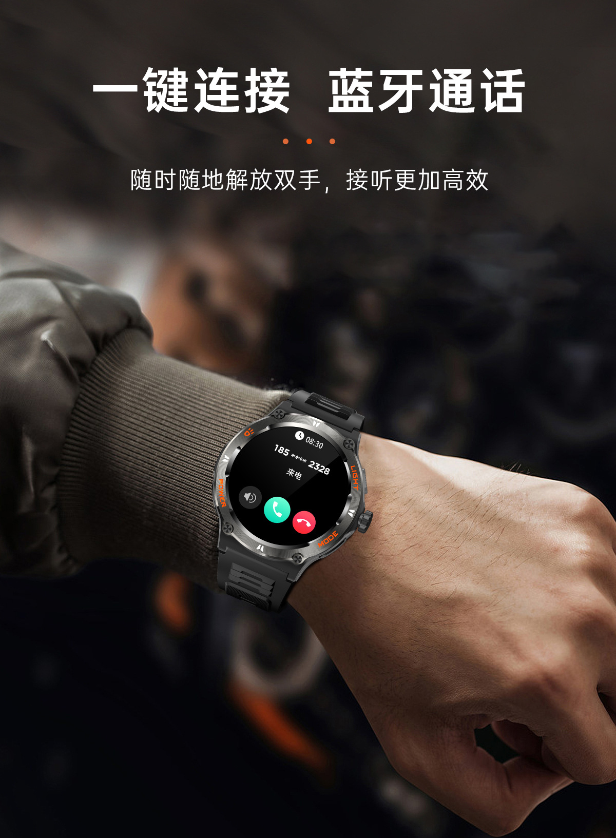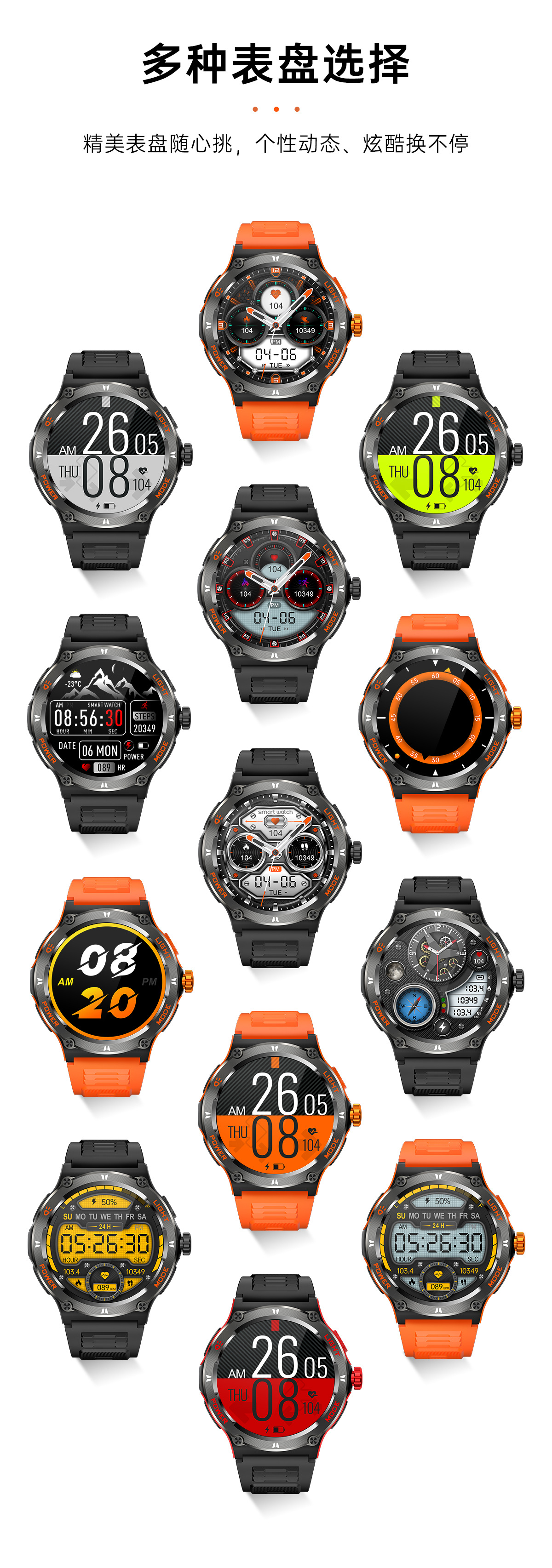 新品KT76智能手表户外三防运动蓝牙通话手电筒深防水健康监测