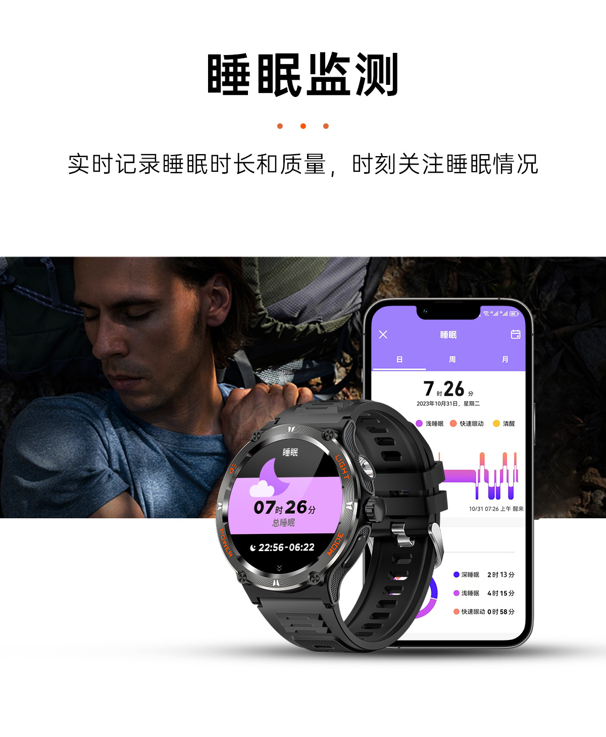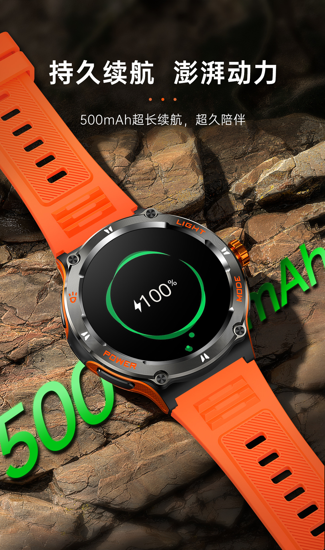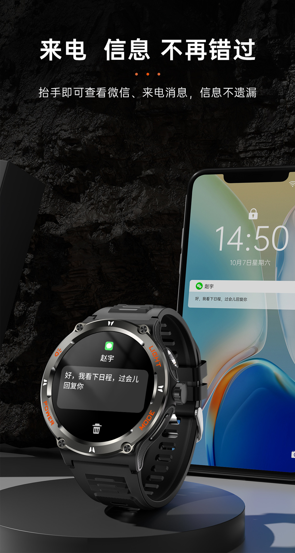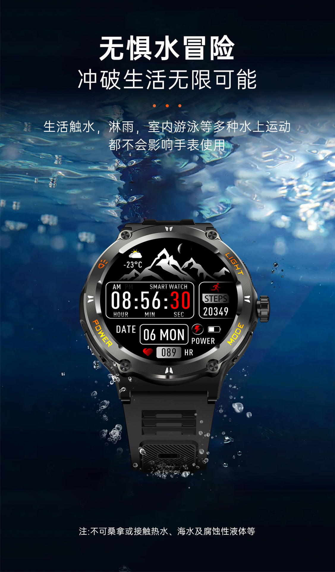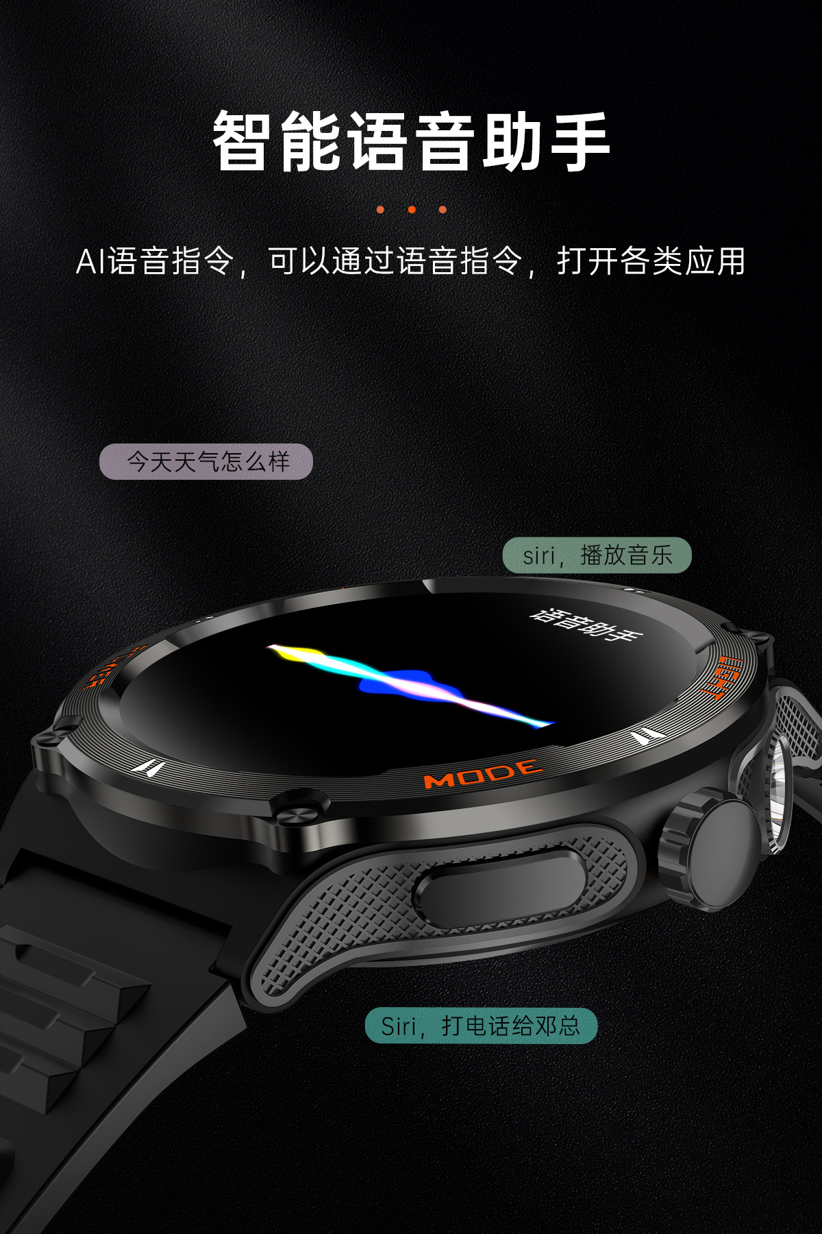 新品KT76智能手表户外三防运动蓝牙通话手电筒深防水健康监测