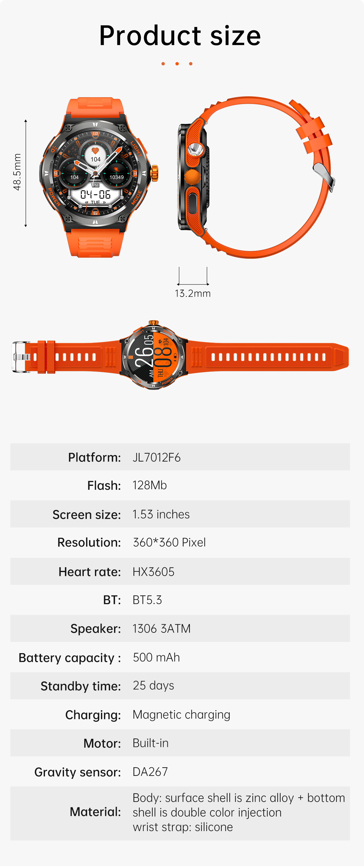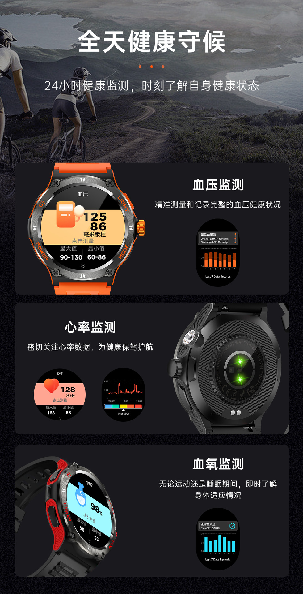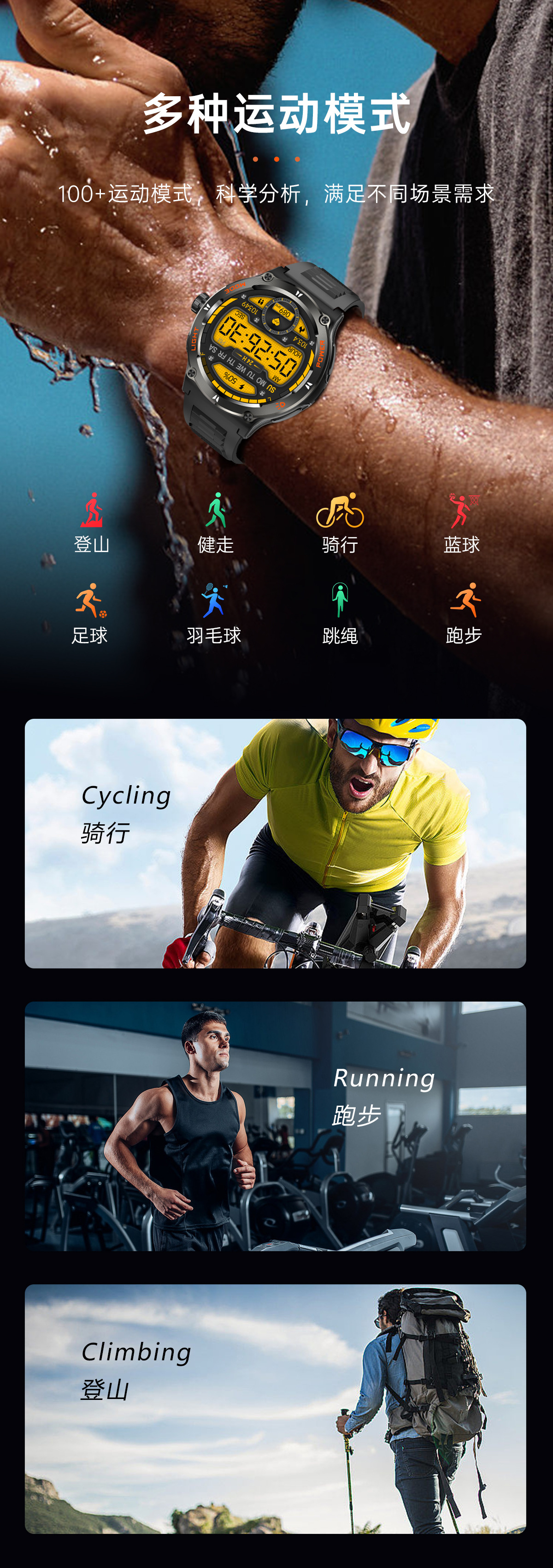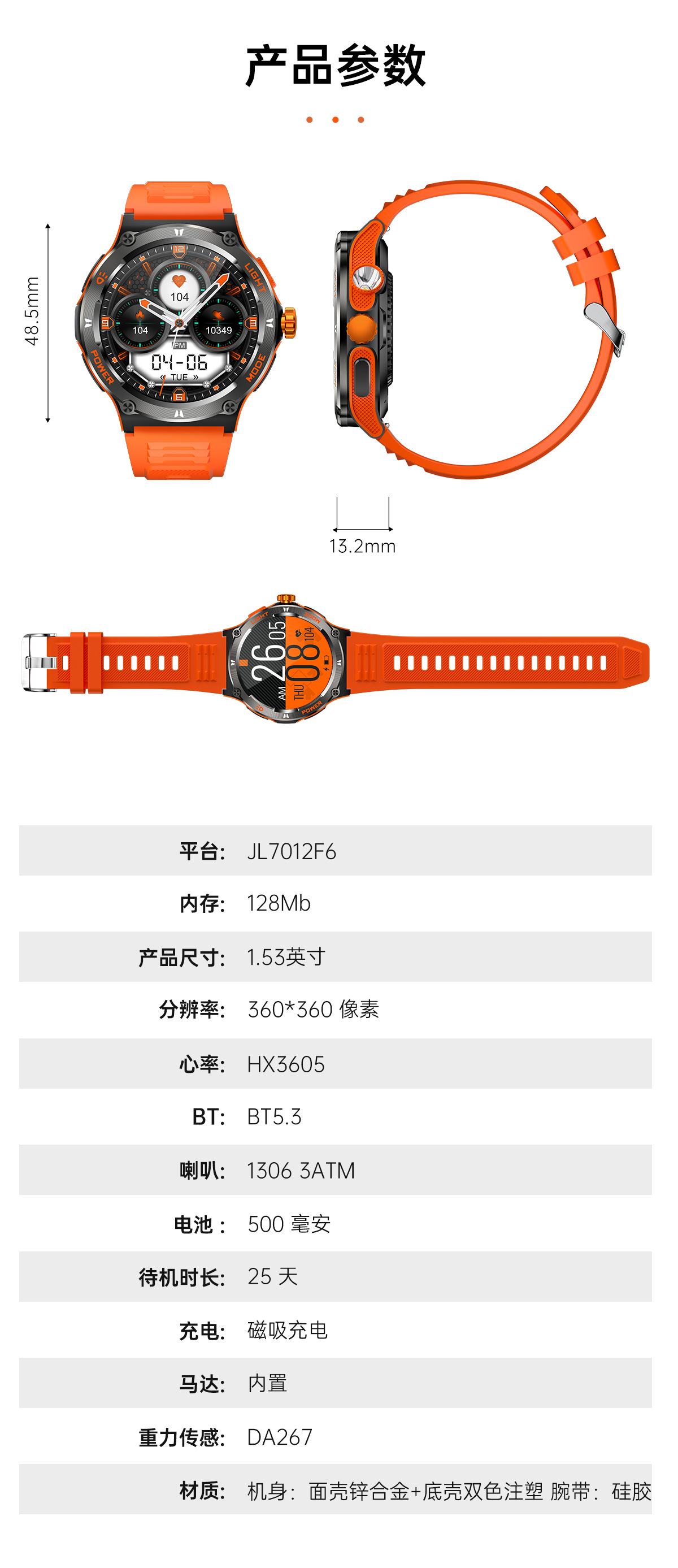 新品KT76智能手表户外三防运动蓝牙通话手电筒深防水健康监测