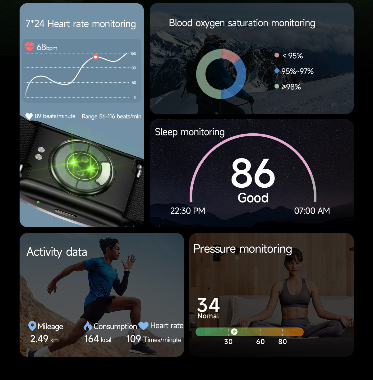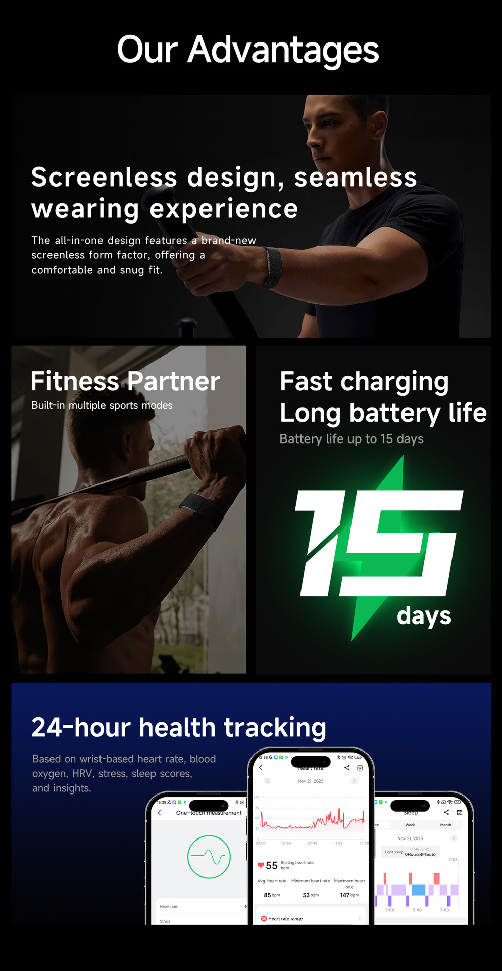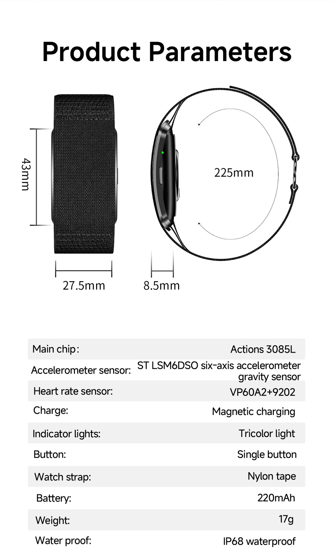 跨境新品y105智能手环超长续航无感佩戴HRV心率健康监测无屏手环