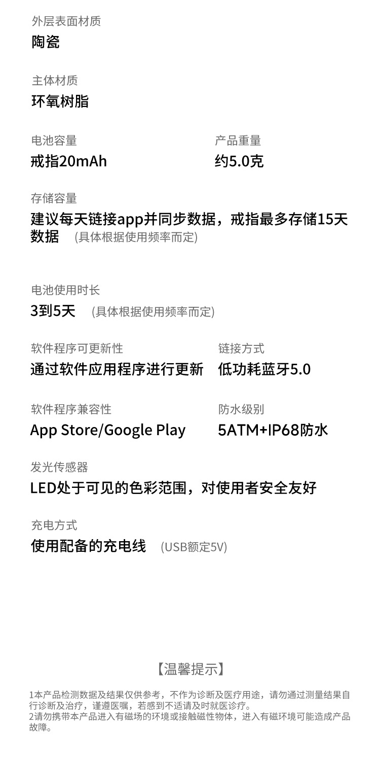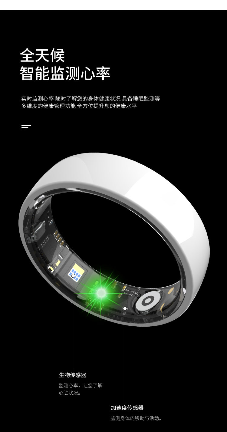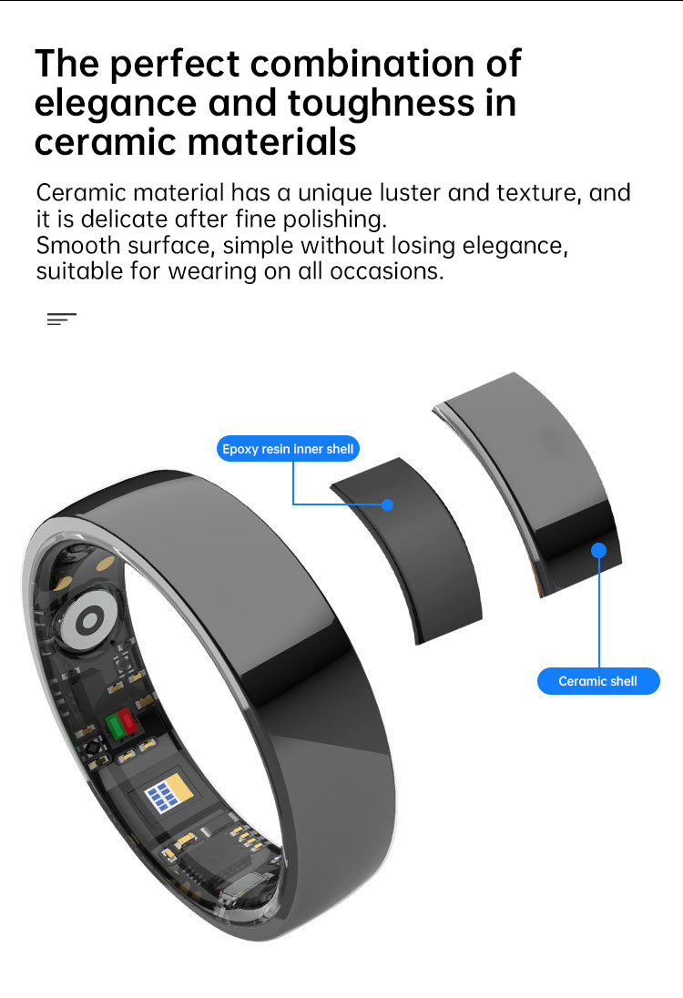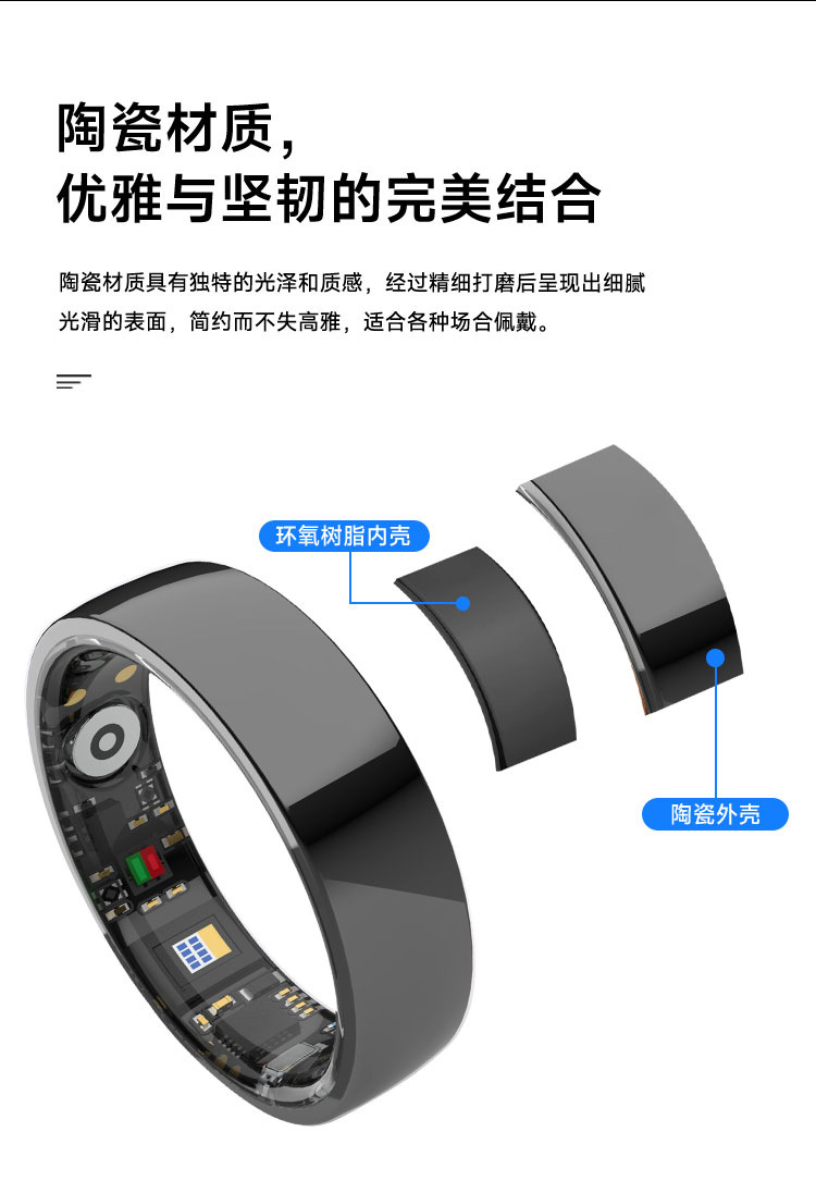 跨境新品陶瓷光泽智能戒指健康监测心率血氧睡眠运动蓝牙防水指环