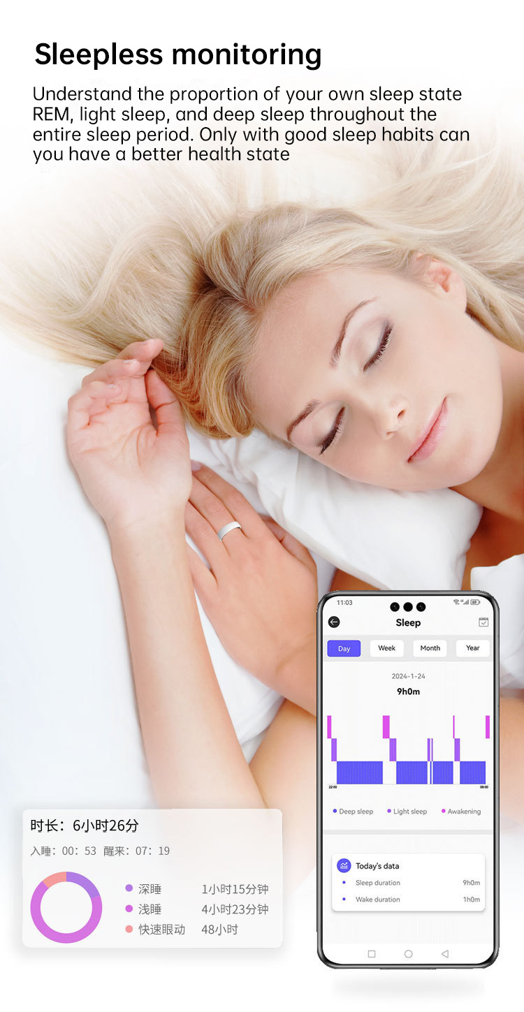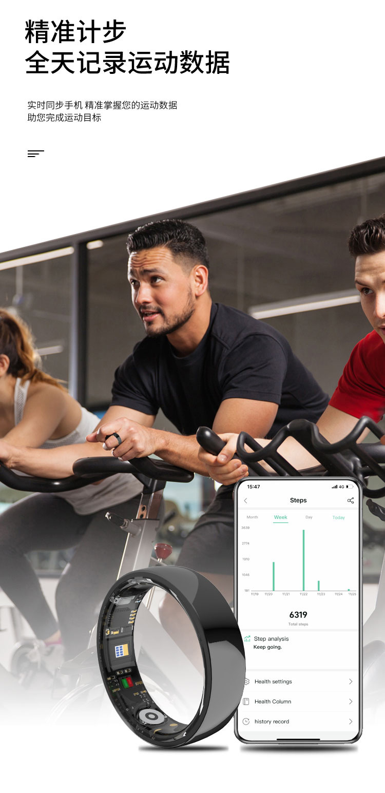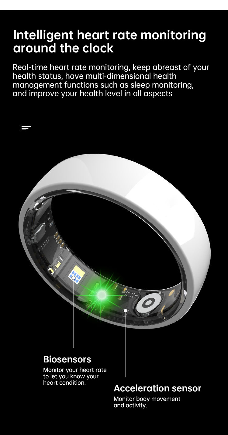 跨境新品陶瓷光泽智能戒指健康监测心率血氧睡眠运动蓝牙防水指环