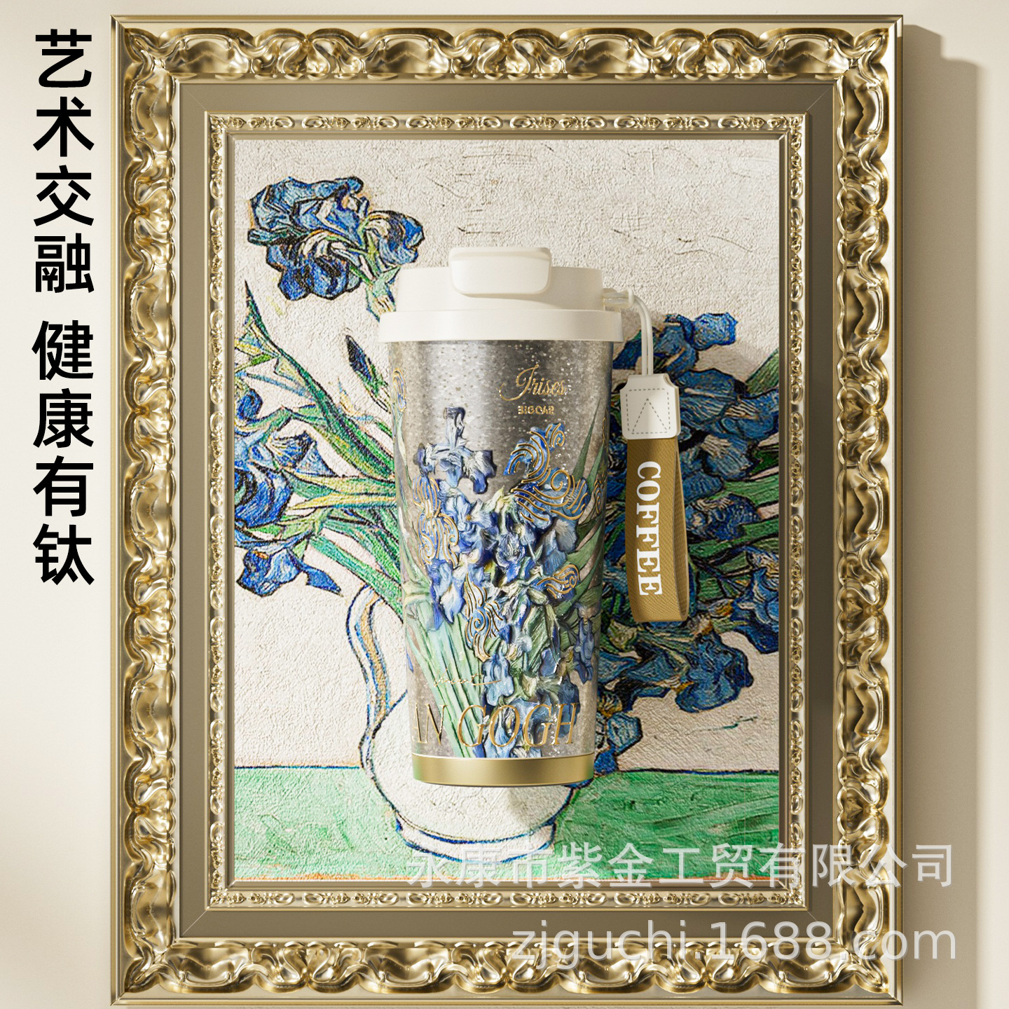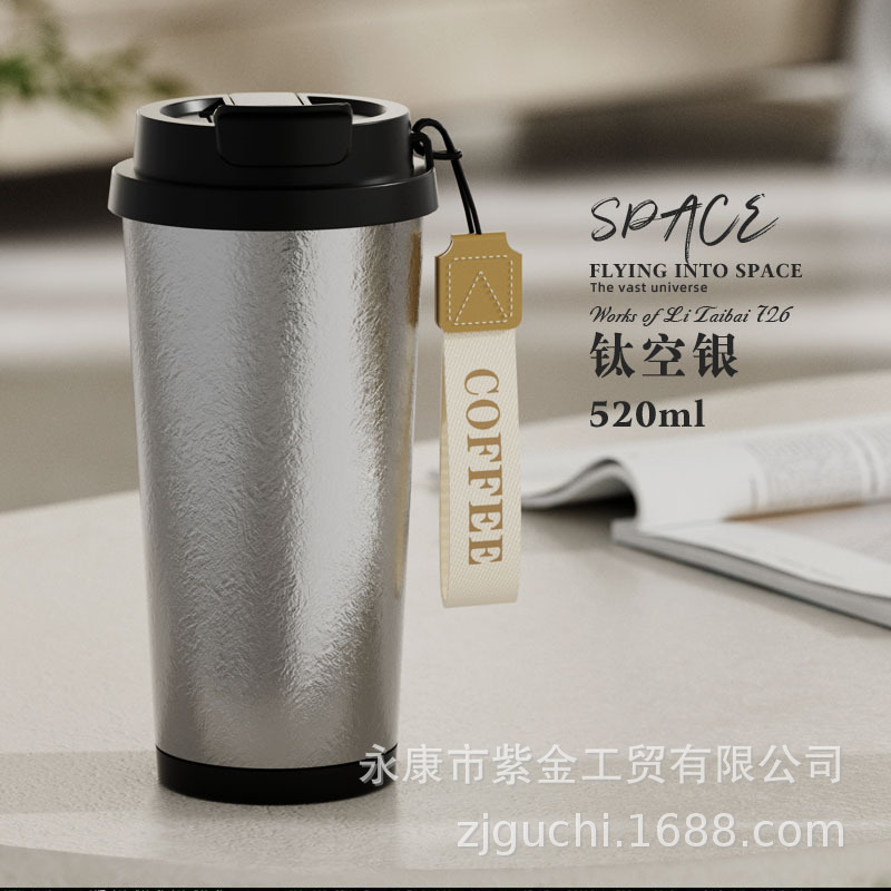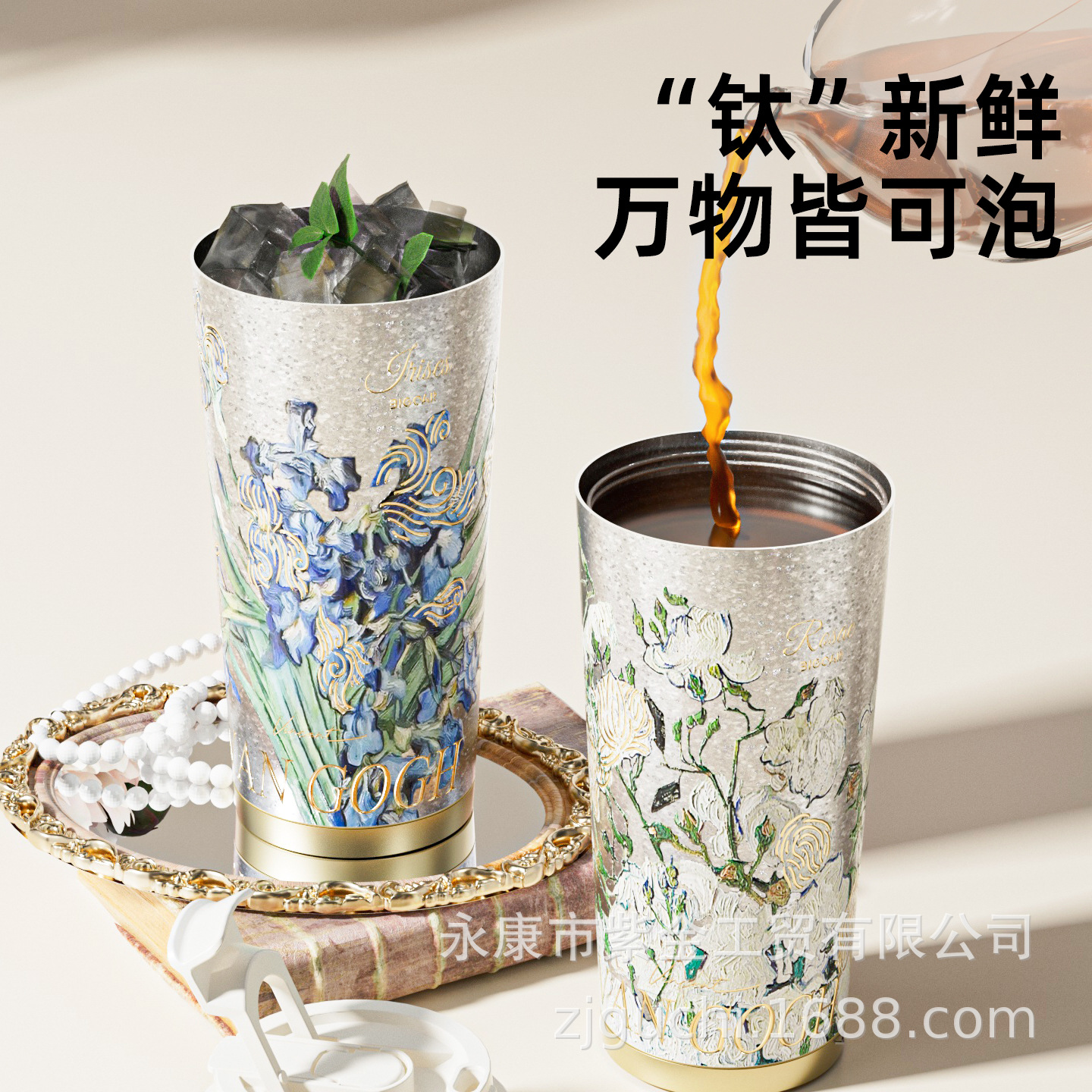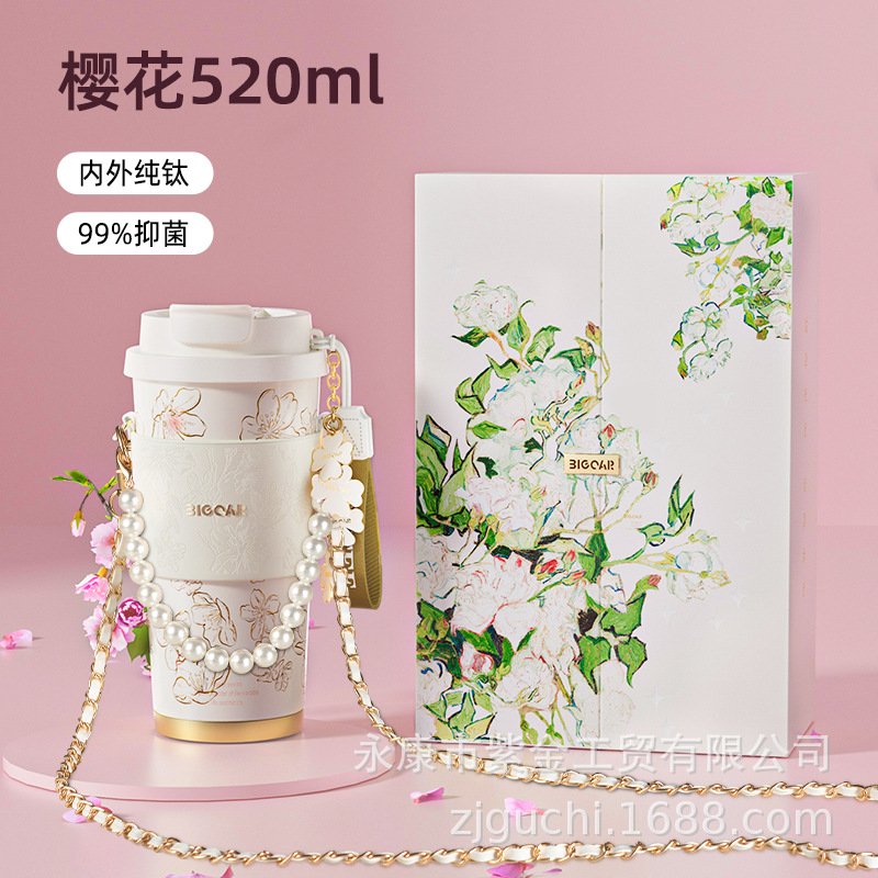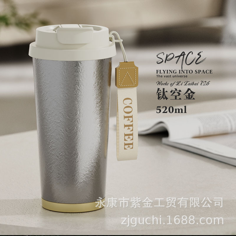 新款纯钛保温杯女轻奢高档便携保冰水杯高颜值定制吸管双饮咖啡杯