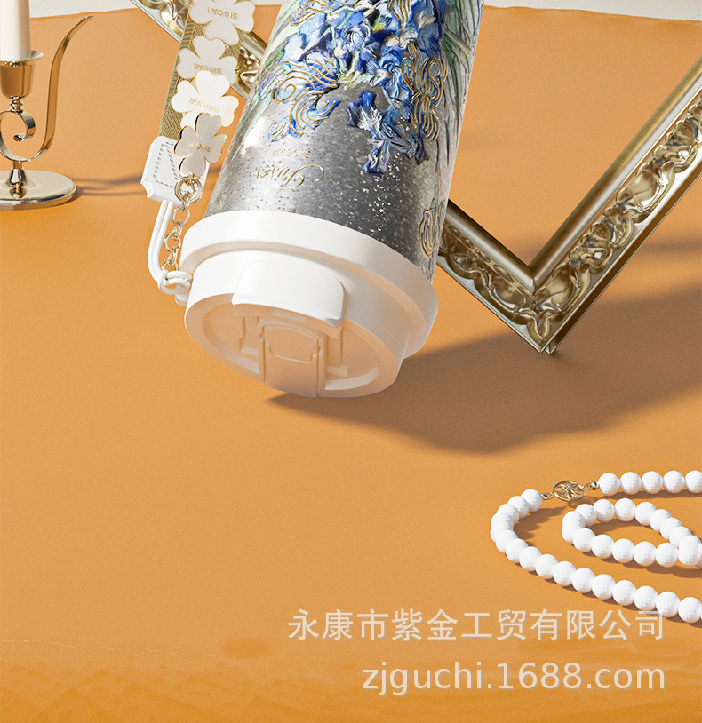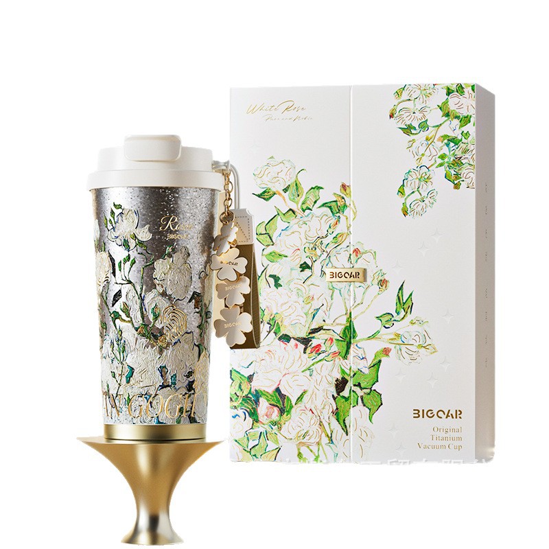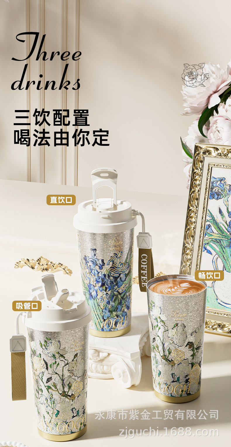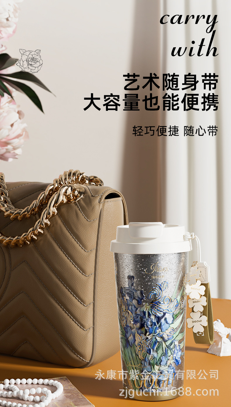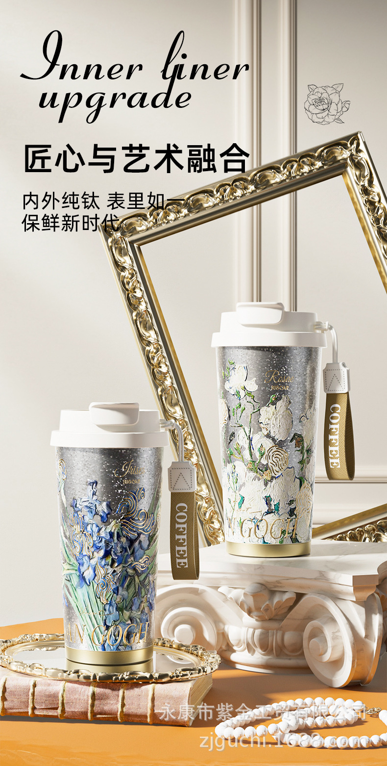 新款纯钛保温杯女轻奢高档便携保冰水杯高颜值定制吸管双饮咖啡杯