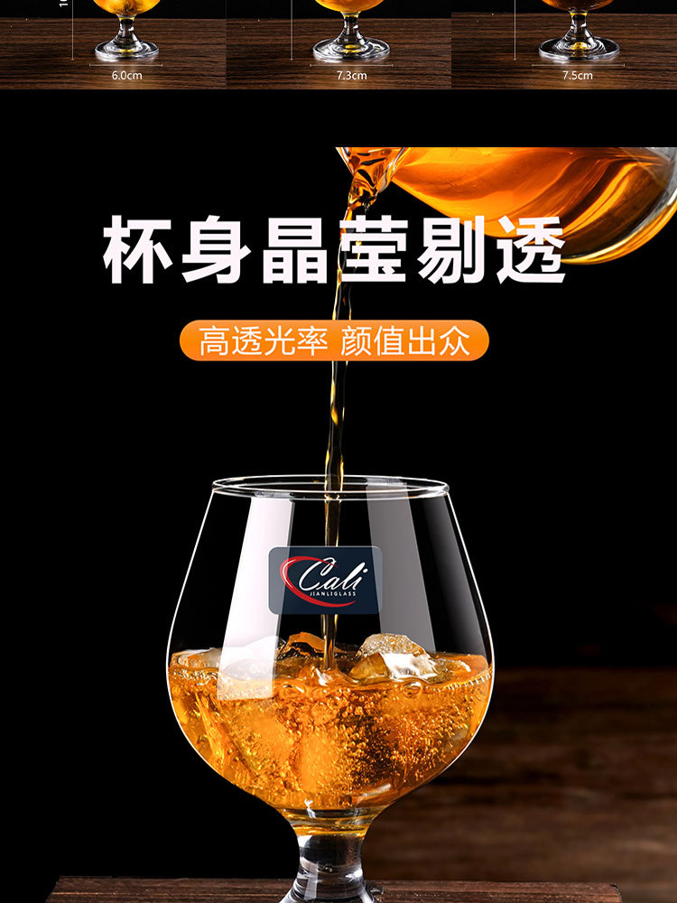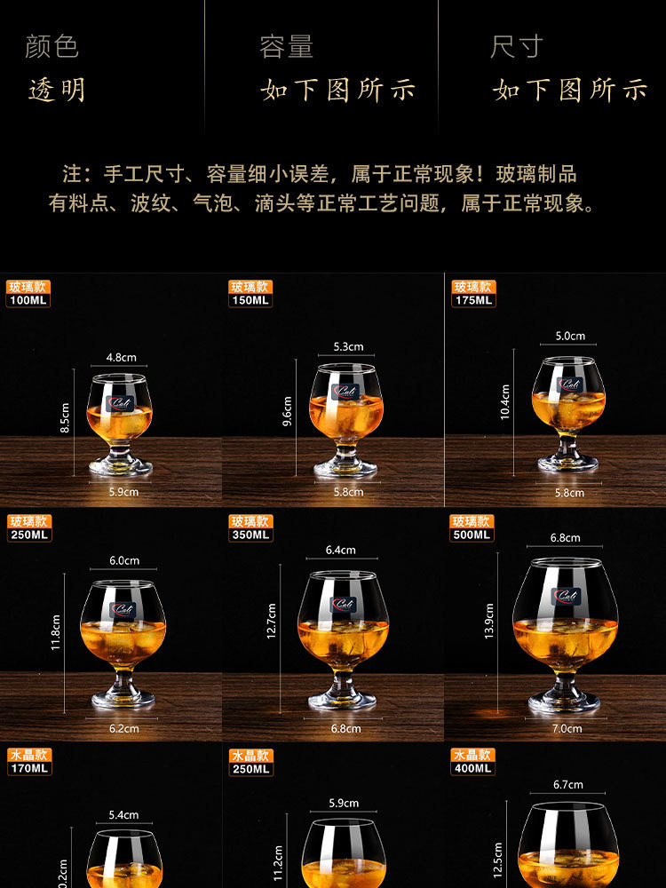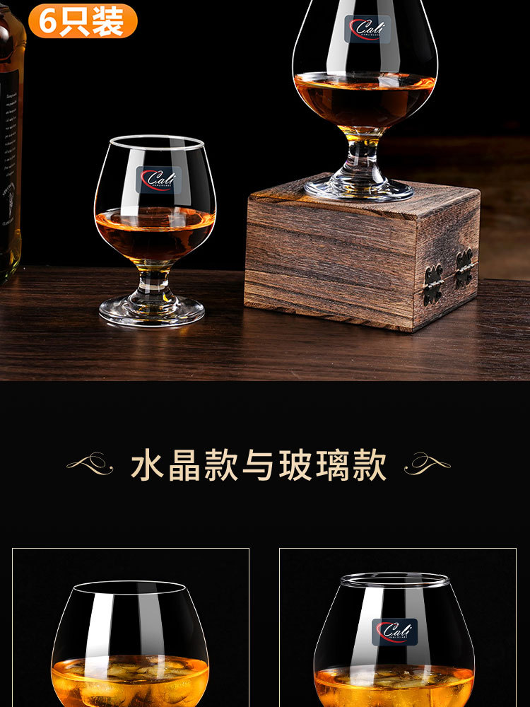 水晶玻璃洋酒杯白兰地杯套装家用白酒杯加厚威士忌酒杯高脚红酒杯