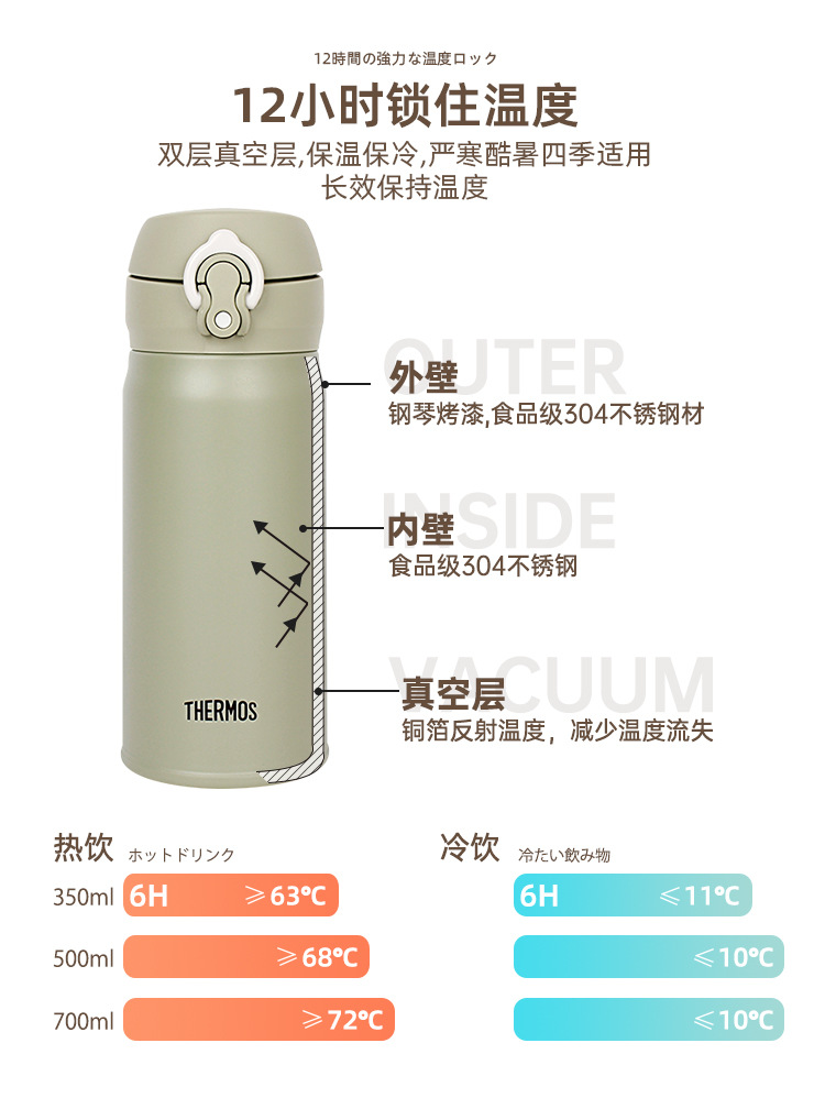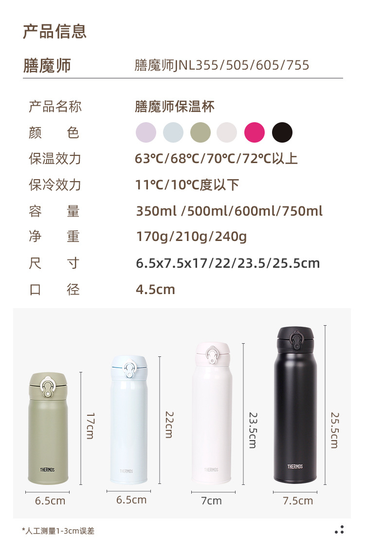 日本膳魔师保温杯男女便携不锈钢超轻可爱水杯子JNL/356/506/502