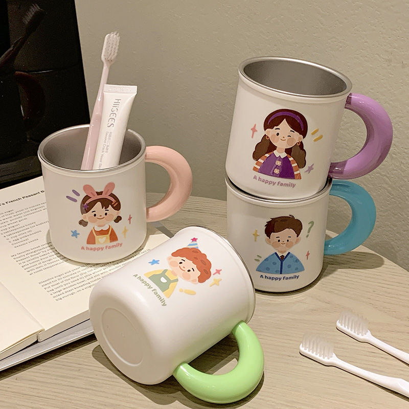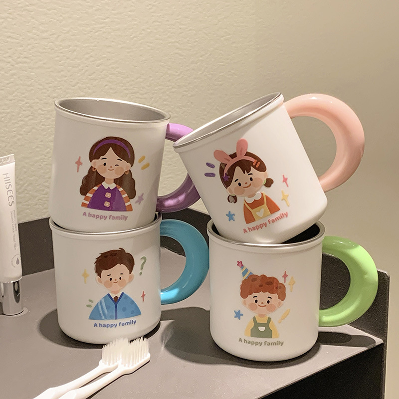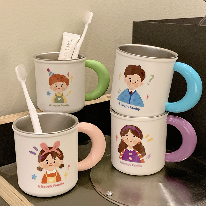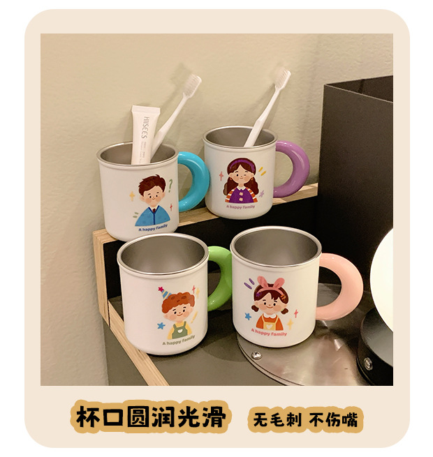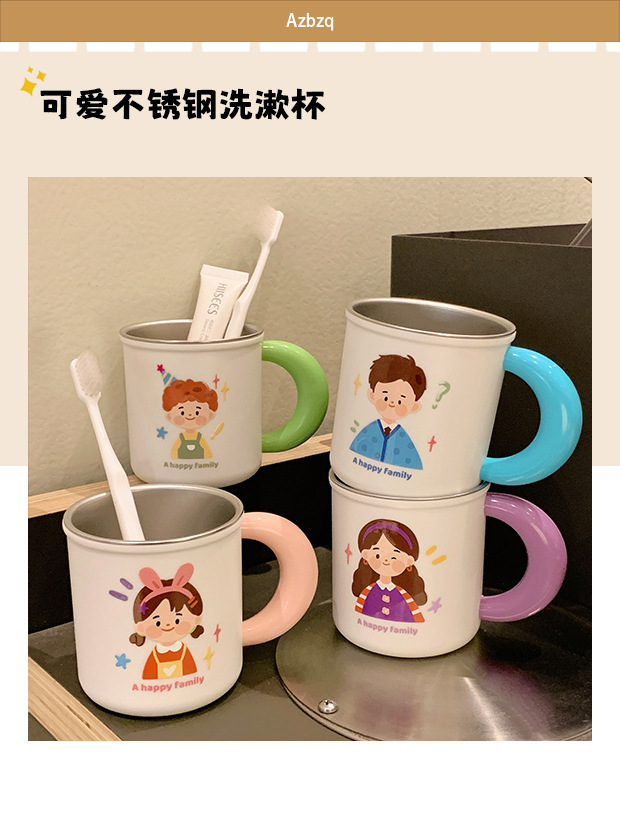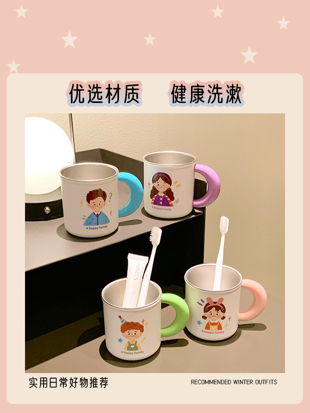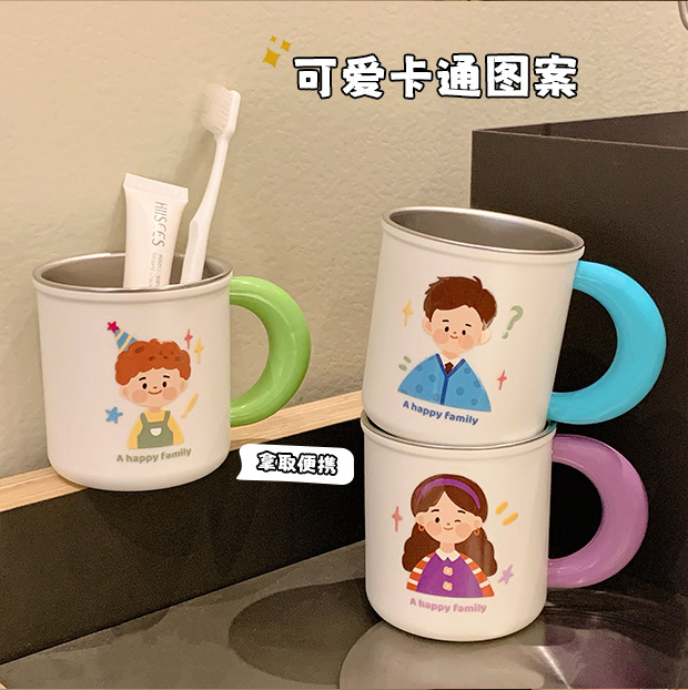 原创316不锈钢漱口杯一家四口牙刷杯儿童家庭款水杯刷牙杯洗漱杯
