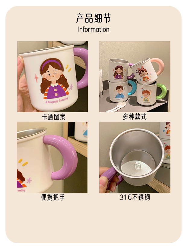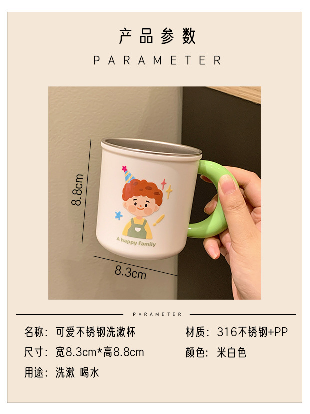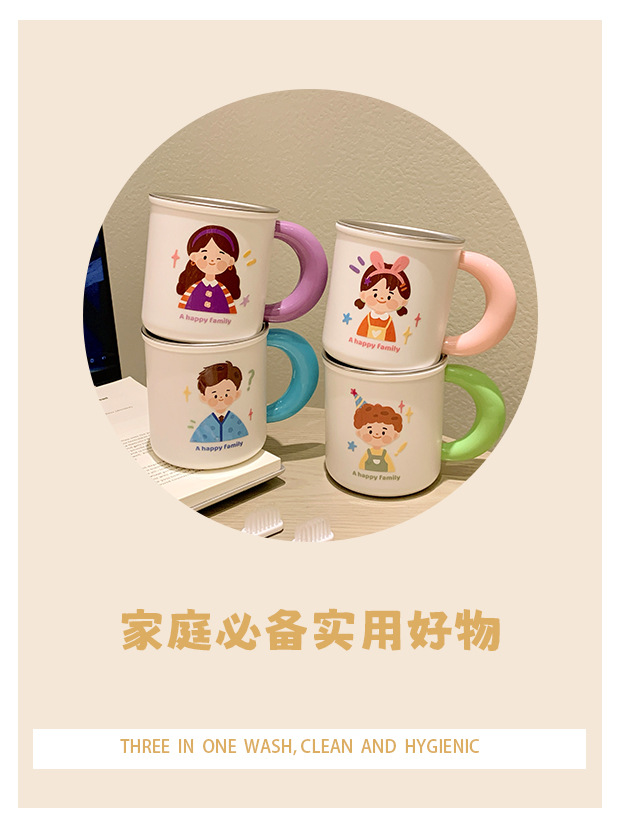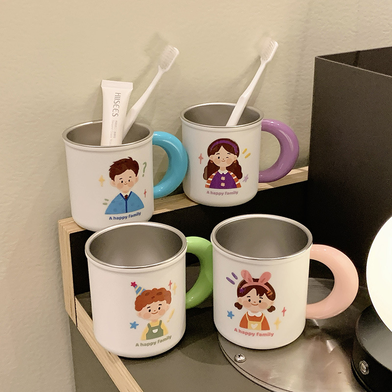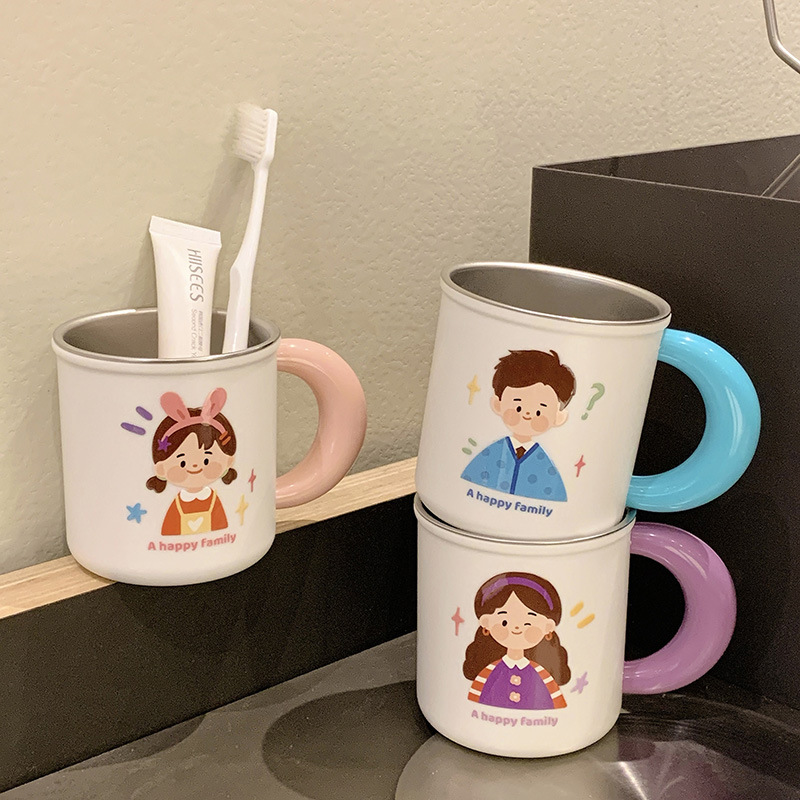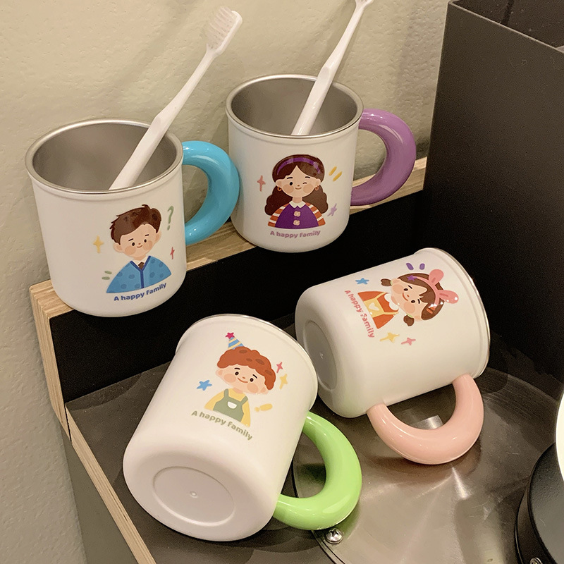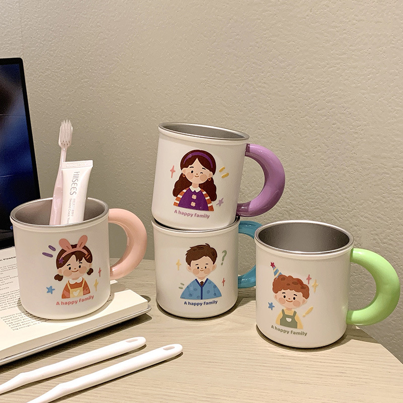 原创316不锈钢漱口杯一家四口牙刷杯儿童家庭款水杯刷牙杯洗漱杯