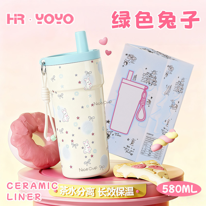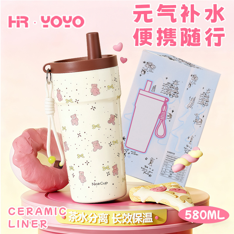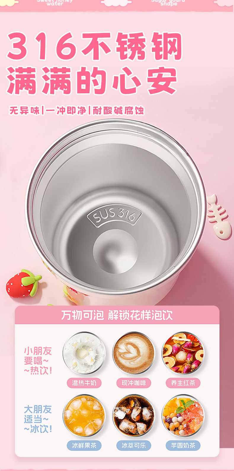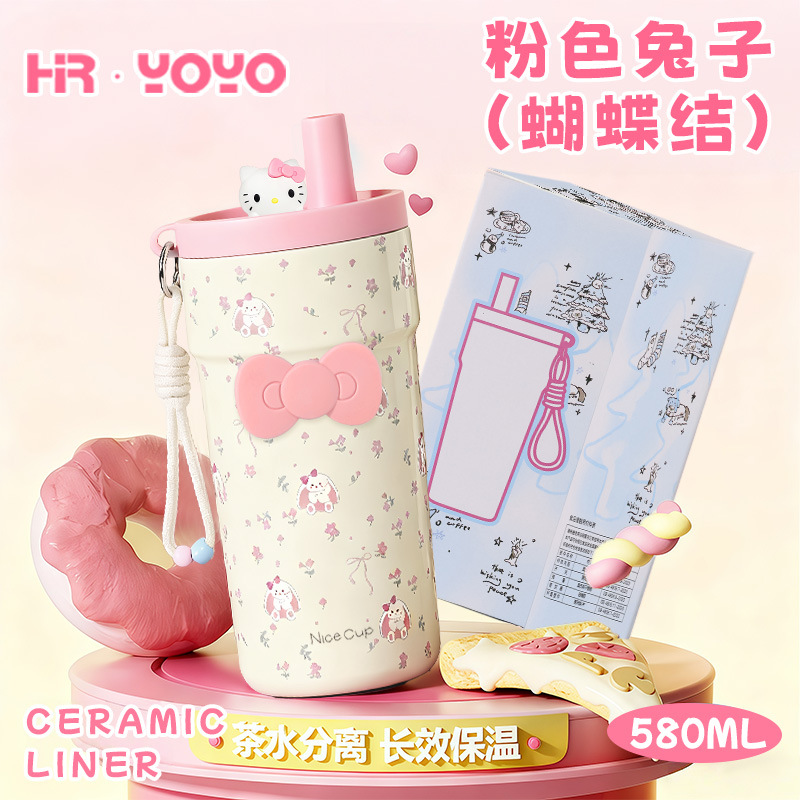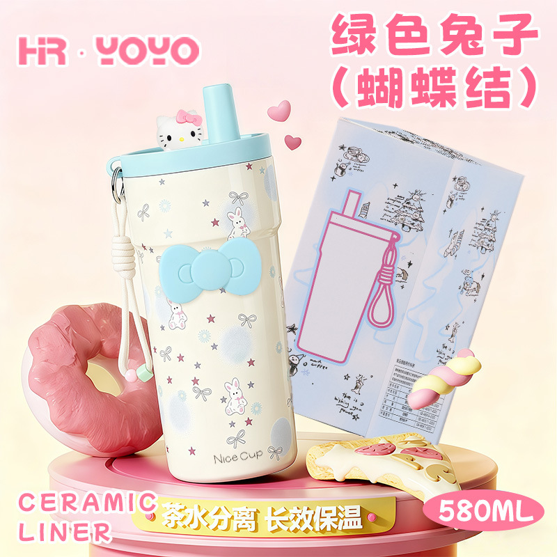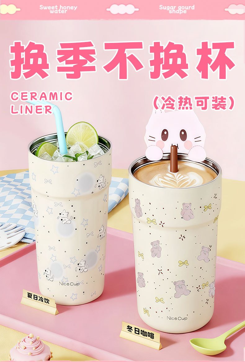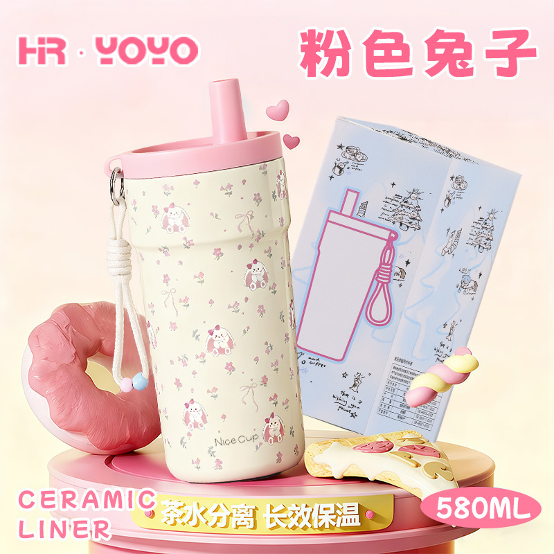 新款卡通保温杯女生学生手提保冷杯可爱办公小巧便携双饮吸管杯