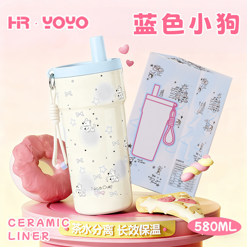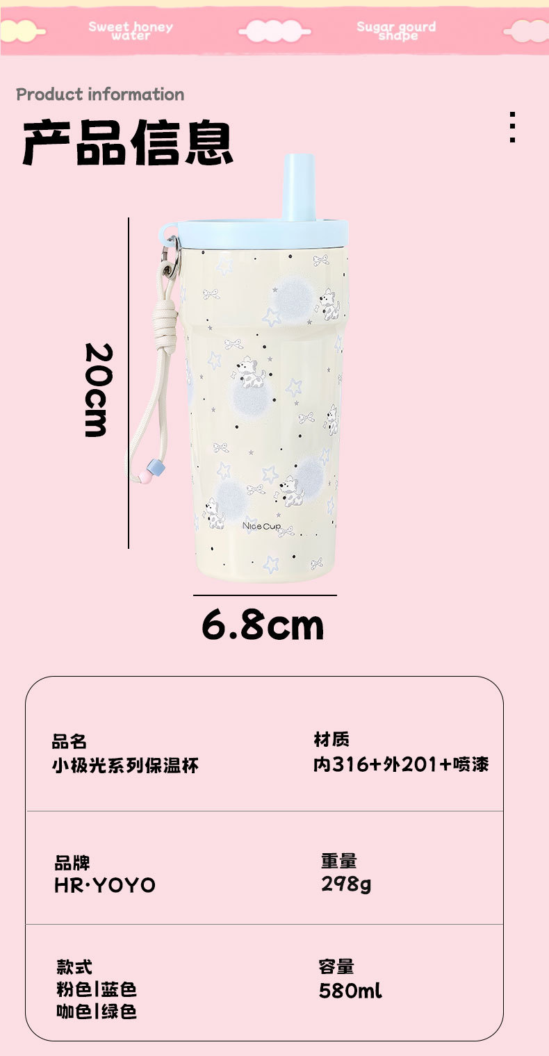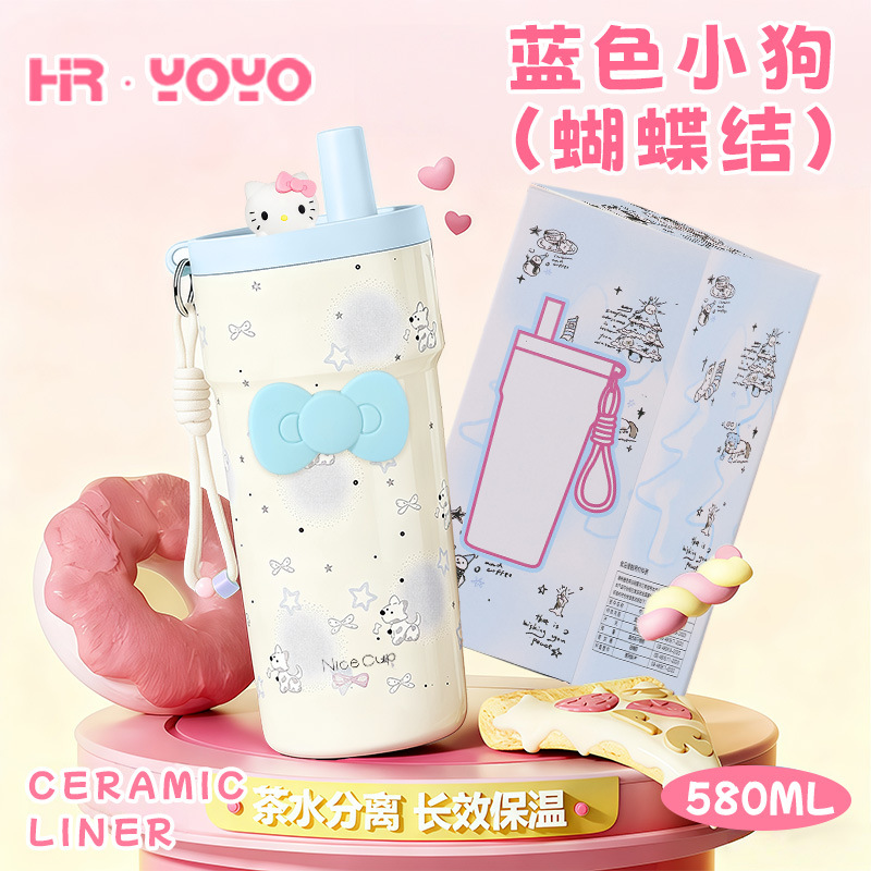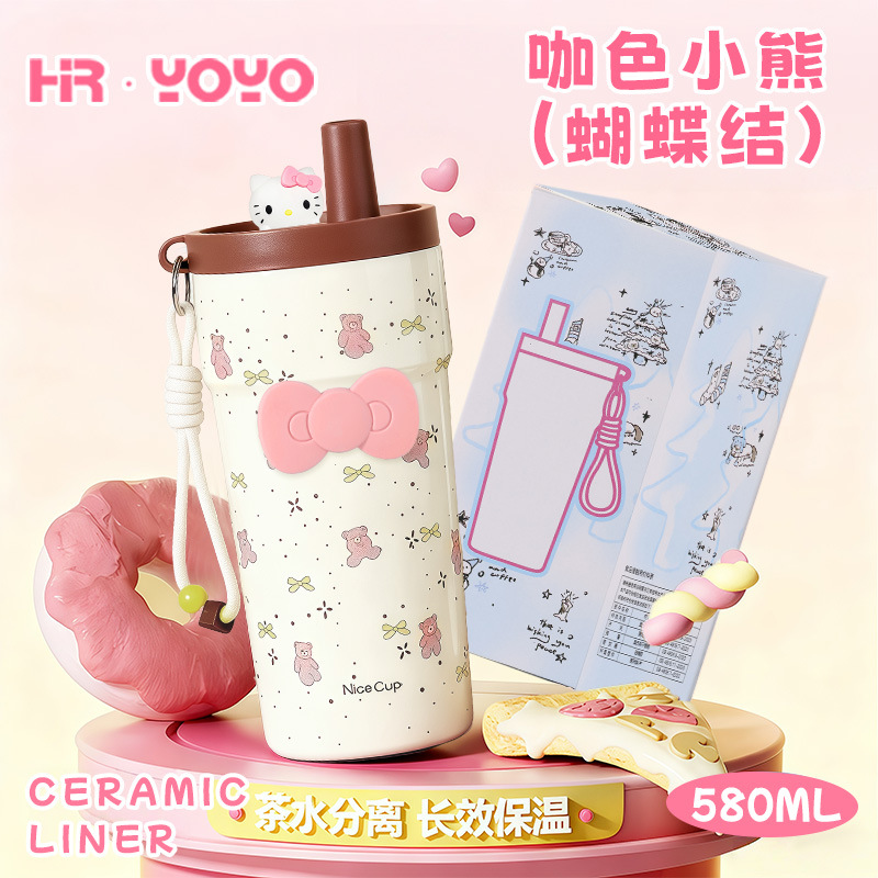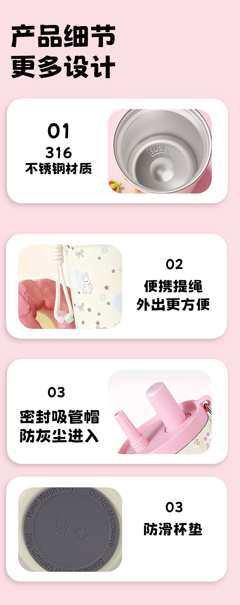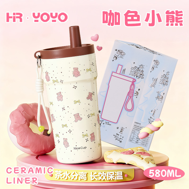 新款卡通保温杯女生学生手提保冷杯可爱办公小巧便携双饮吸管杯