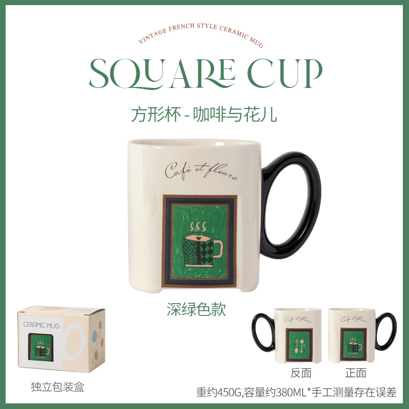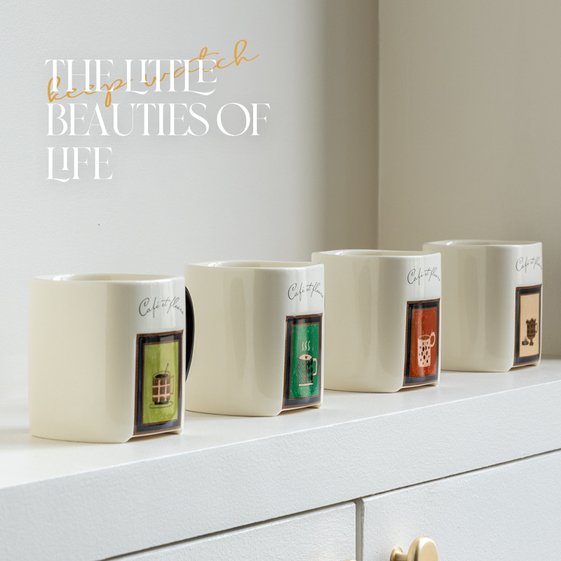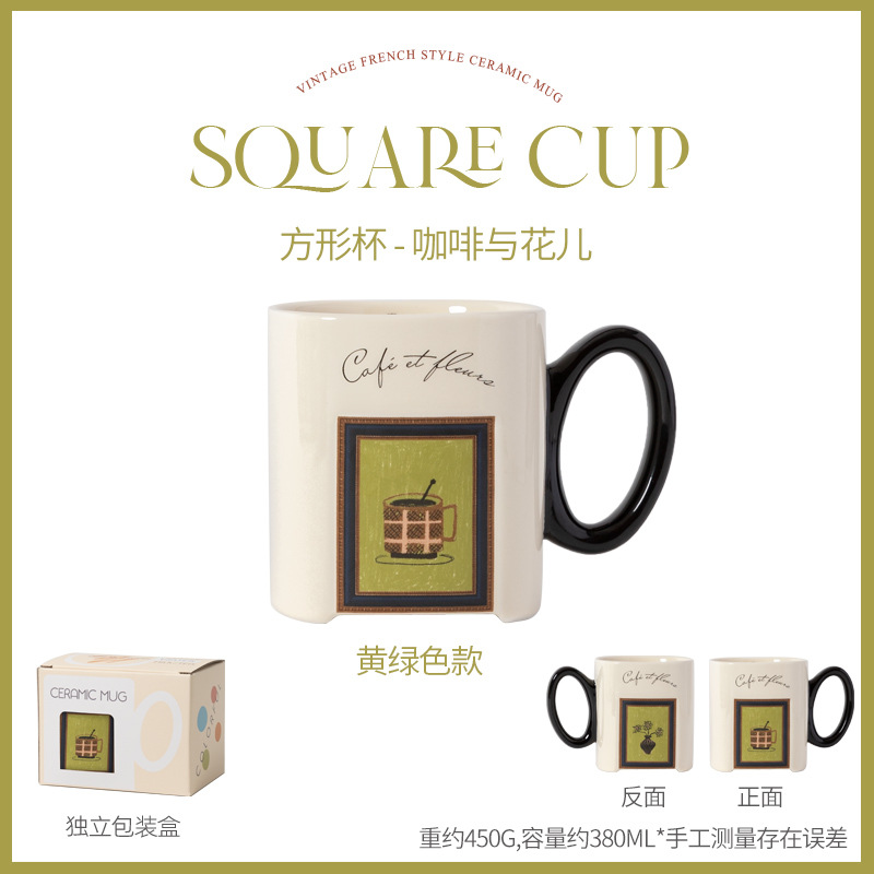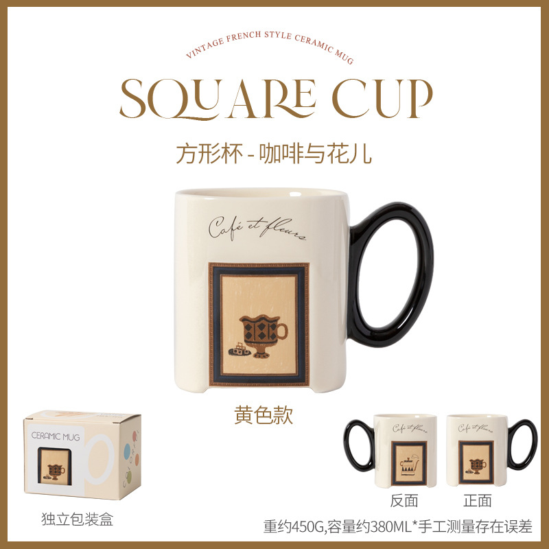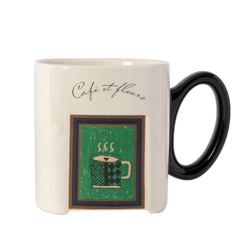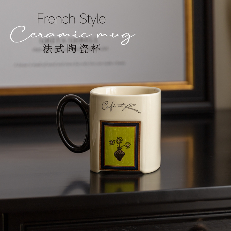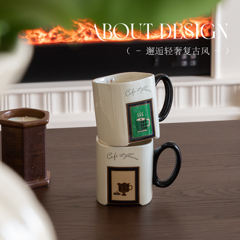 中古风陶瓷咖啡杯复古马克杯大容量厚实高颜值法式喝水杯早餐杯