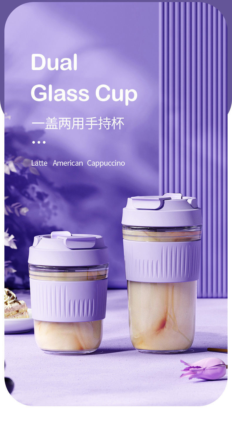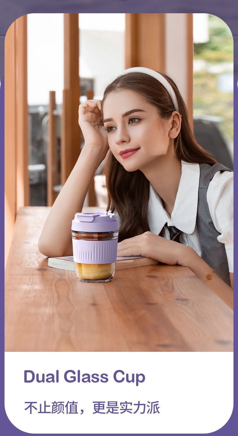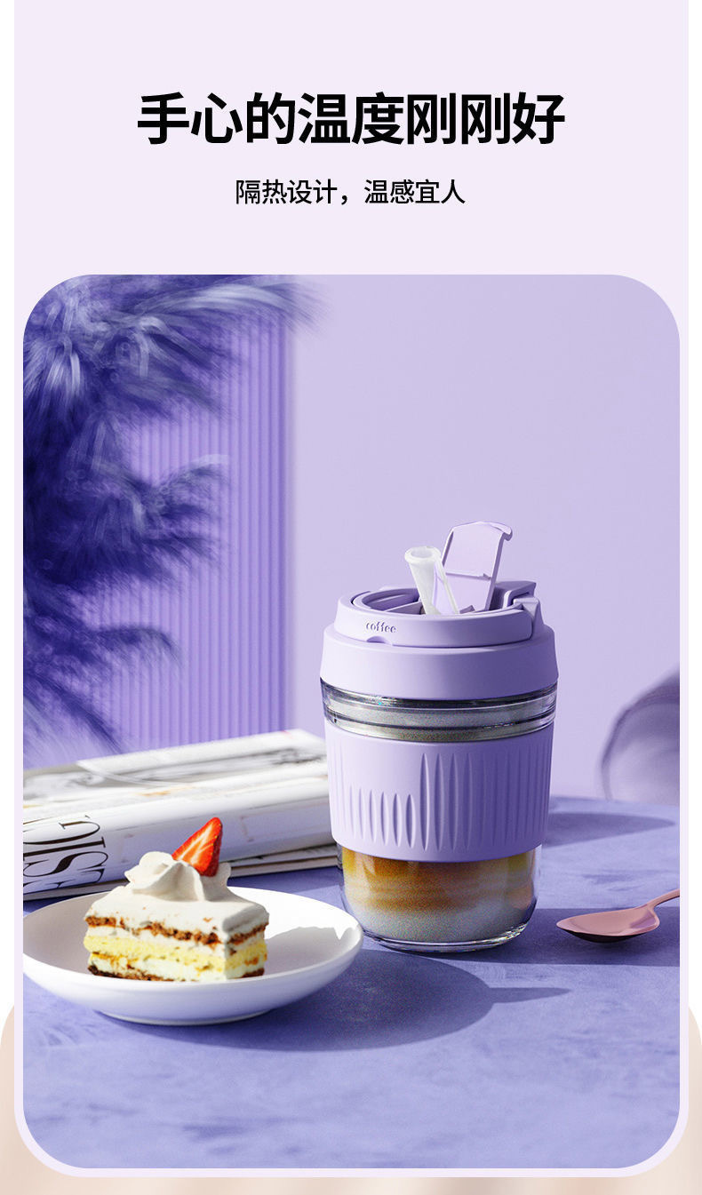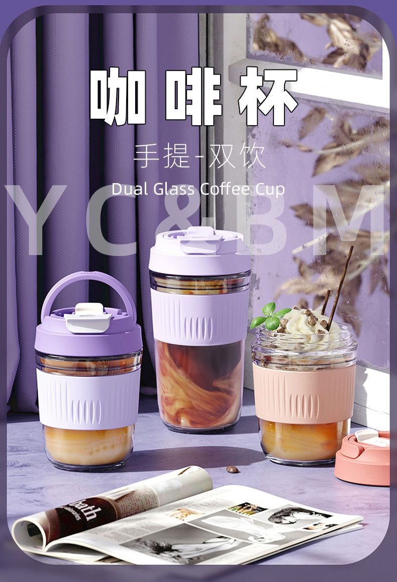 网红礼品高颜值玻璃水杯便携随手杯时尚双饮杯学生吸管杯咖啡杯子