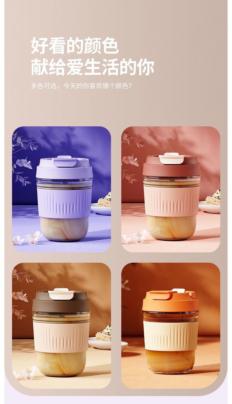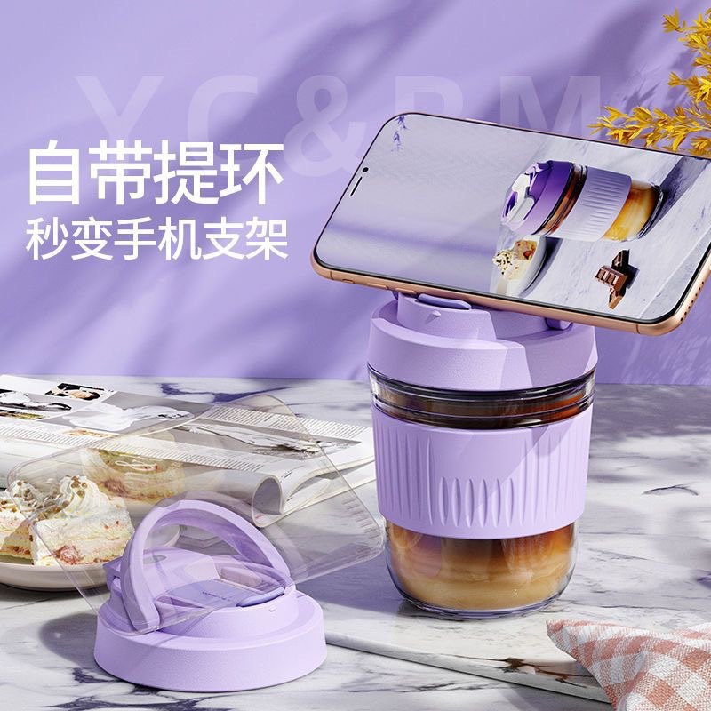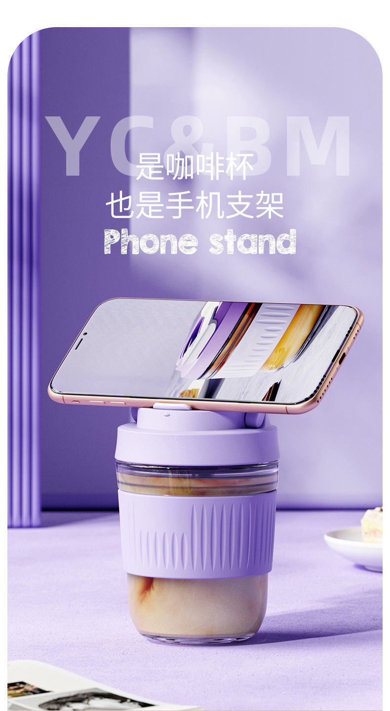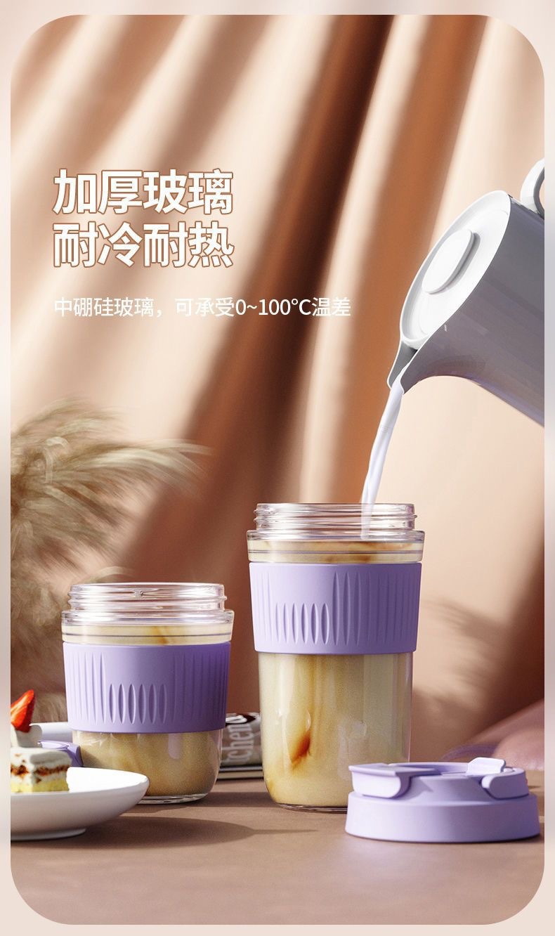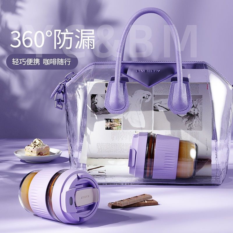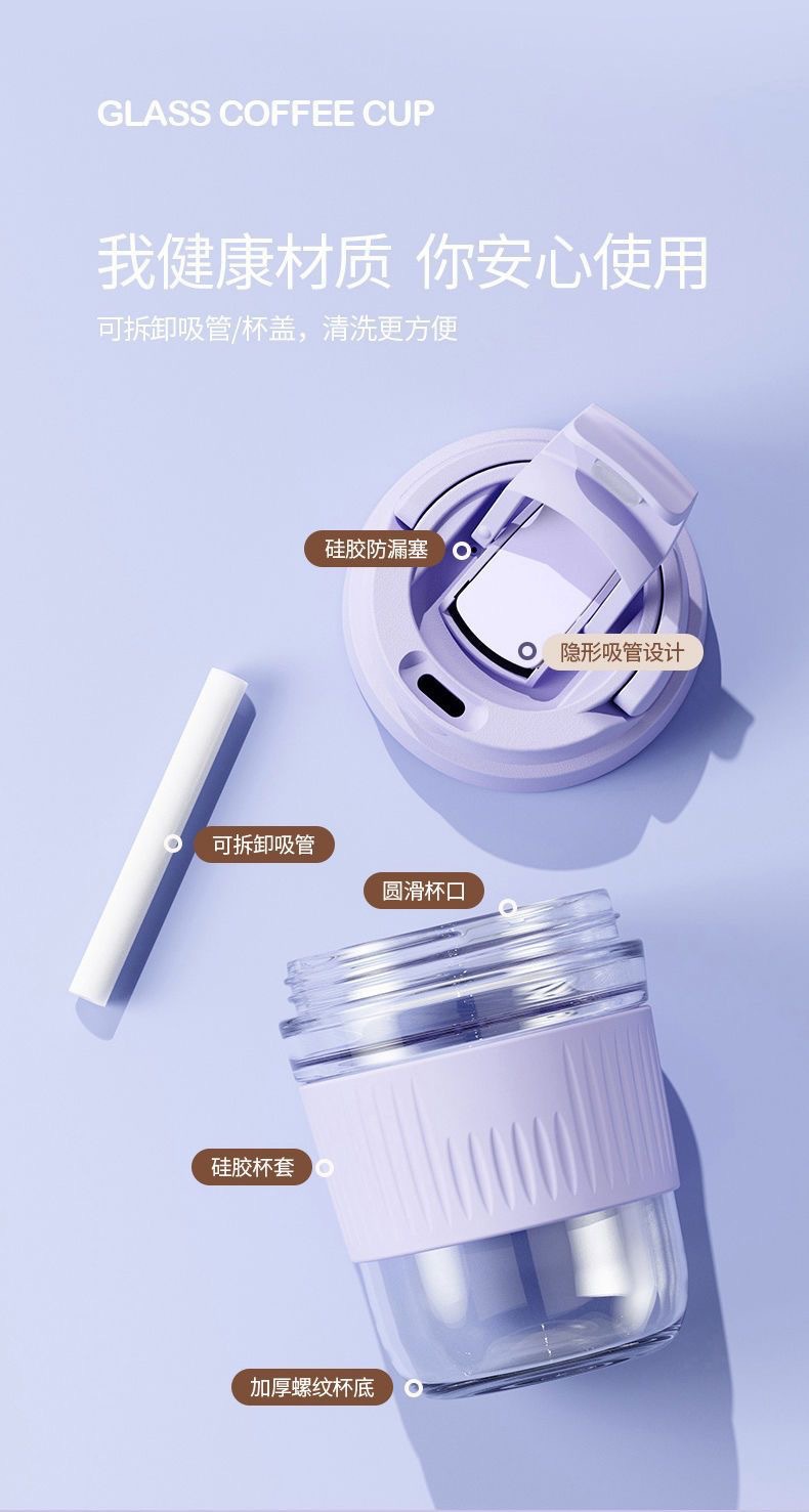 网红礼品高颜值玻璃水杯便携随手杯时尚双饮杯学生吸管杯咖啡杯子