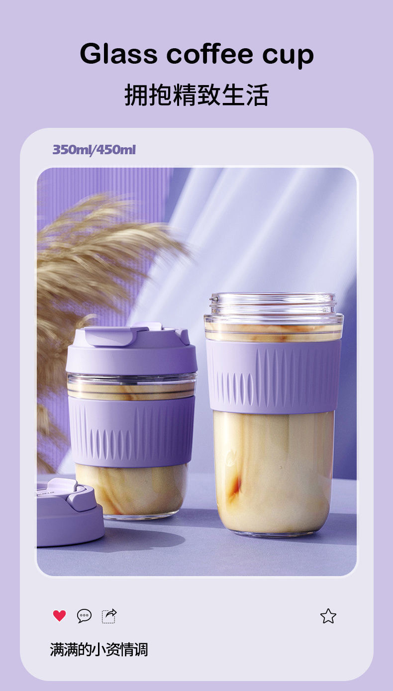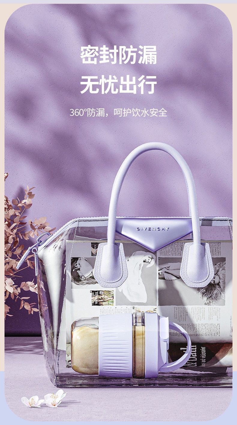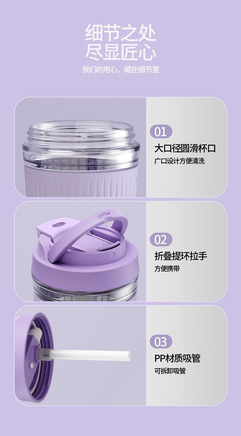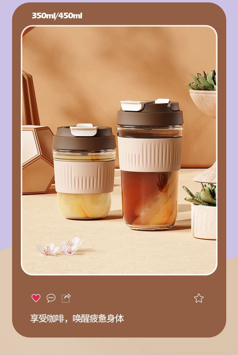 网红礼品高颜值玻璃水杯便携随手杯时尚双饮杯学生吸管杯咖啡杯子