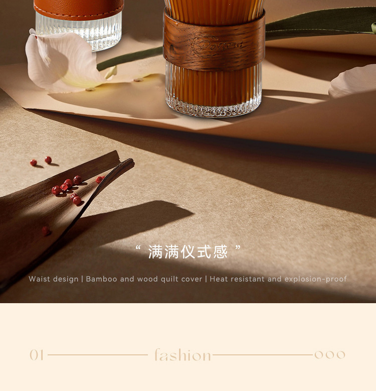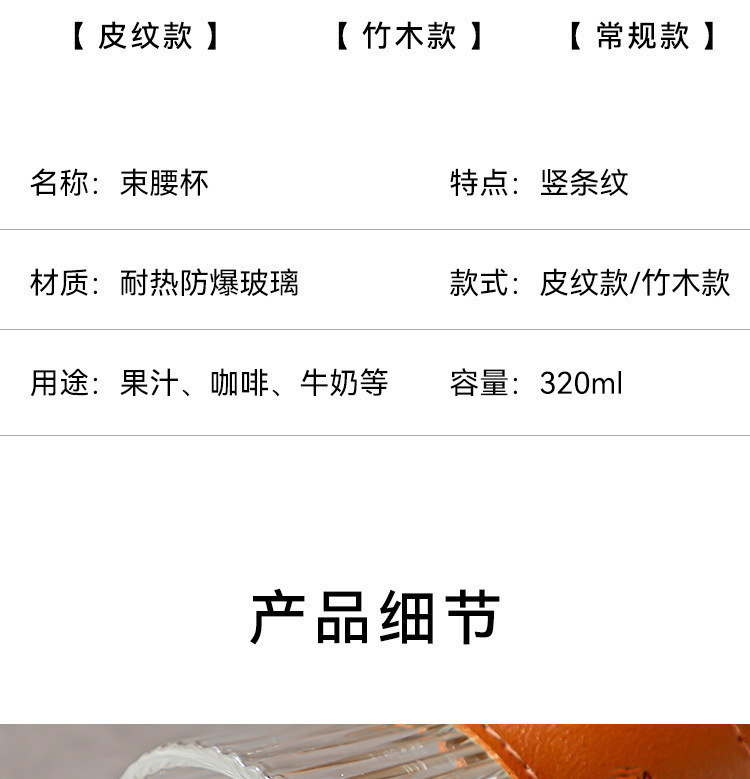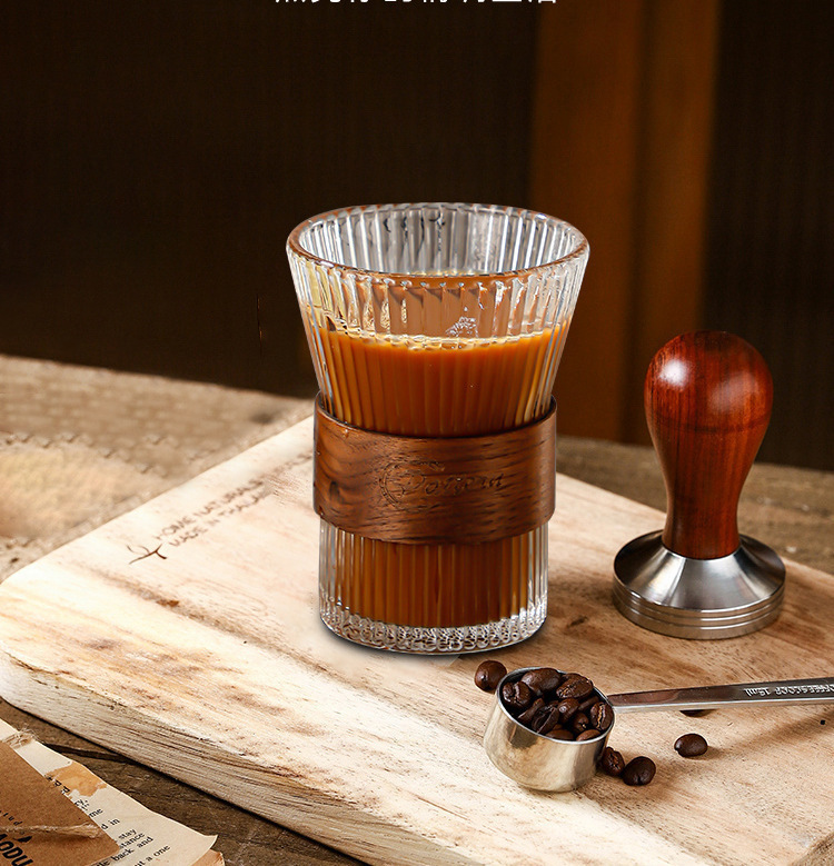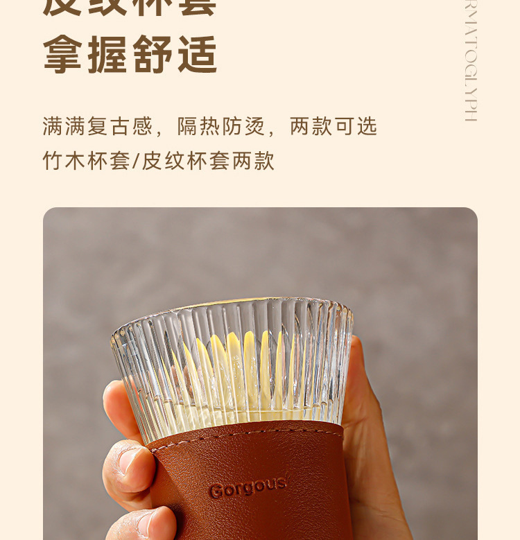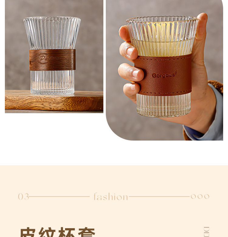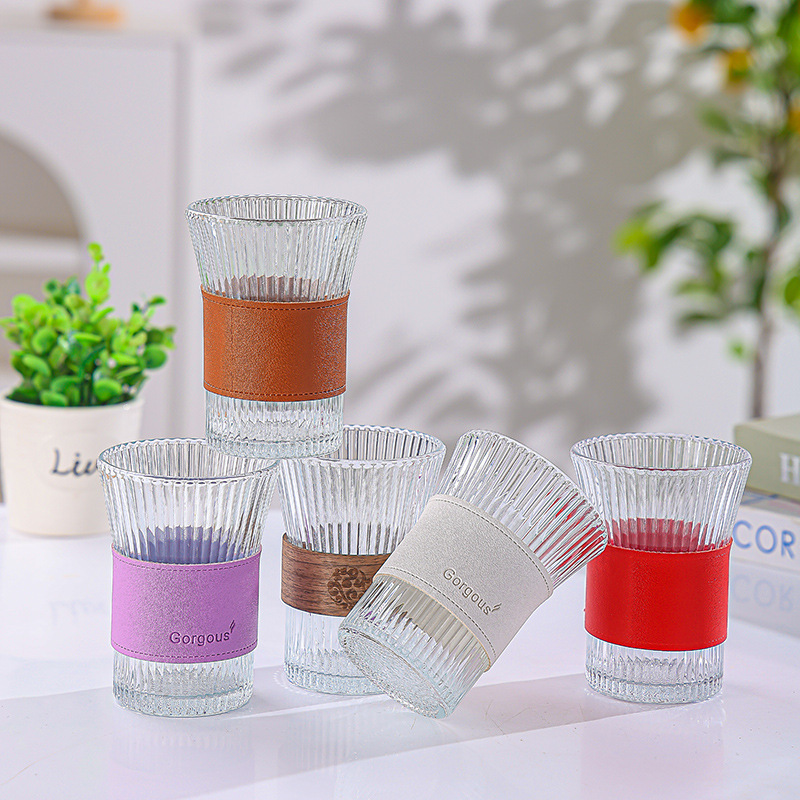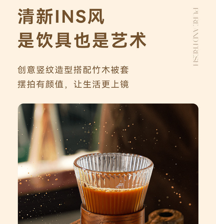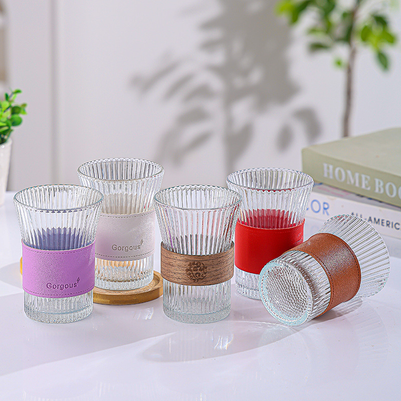 风琴杯竖纹玻璃杯挂耳咖啡杯家用泡茶杯高颜值水杯礼品杯印制杯子