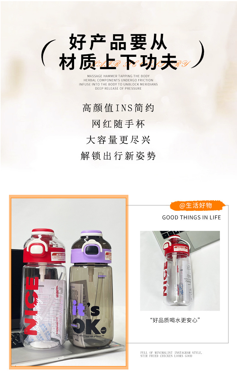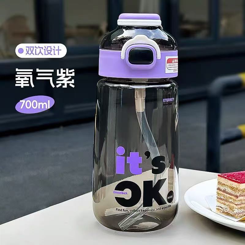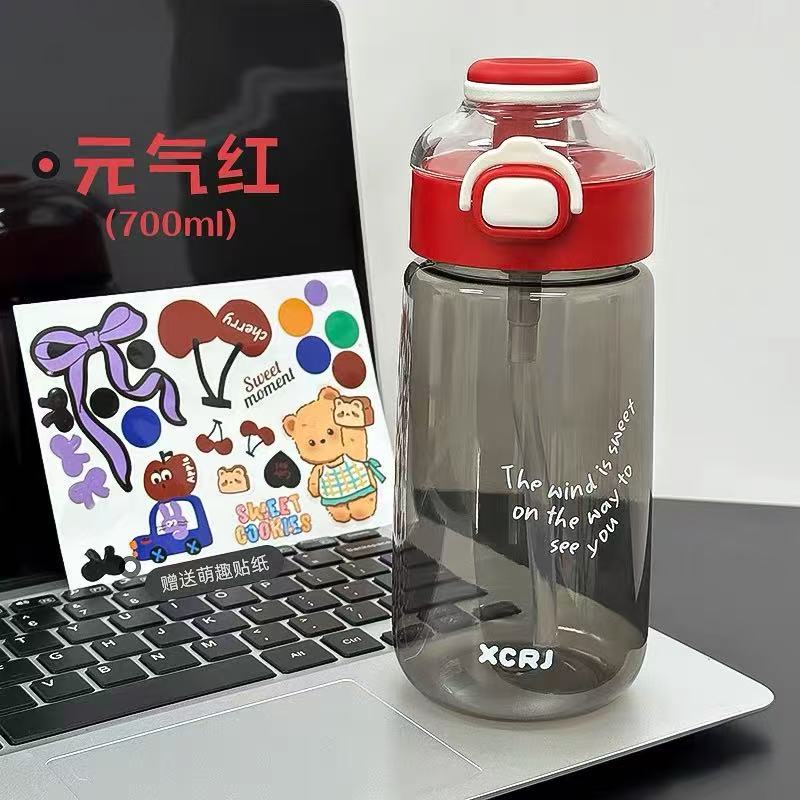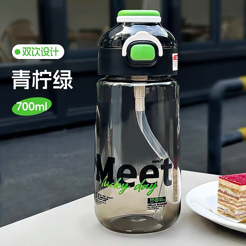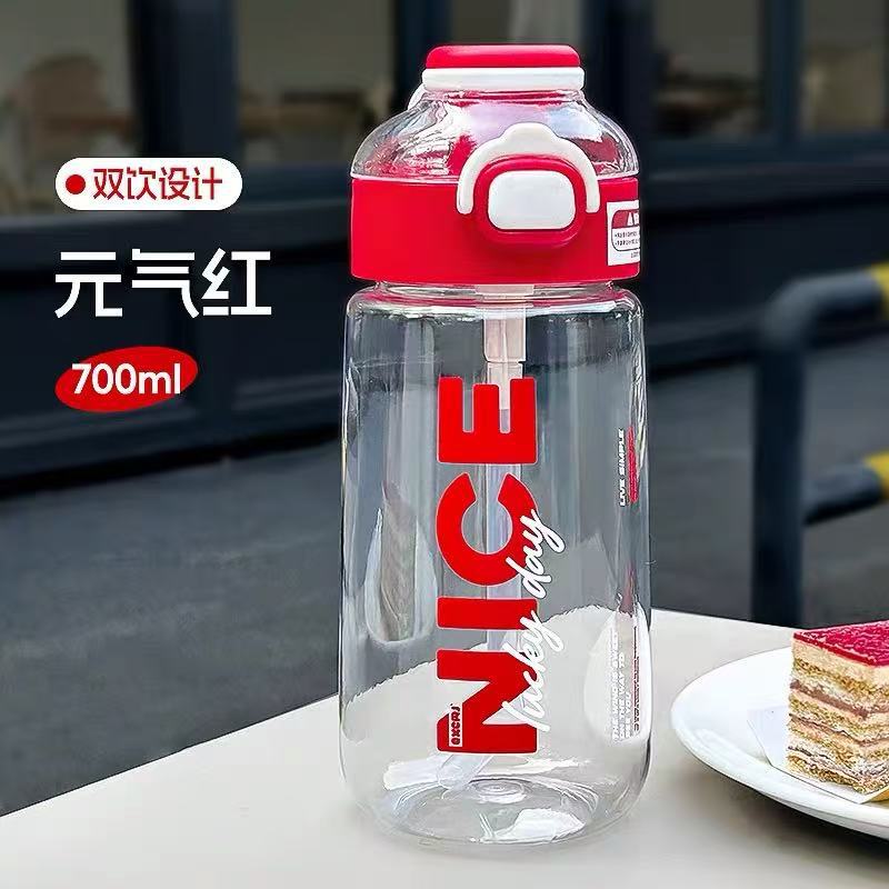 卡通可爱塑料杯学生手提新款春夏水杯户外便携吸管直饮两用杯子