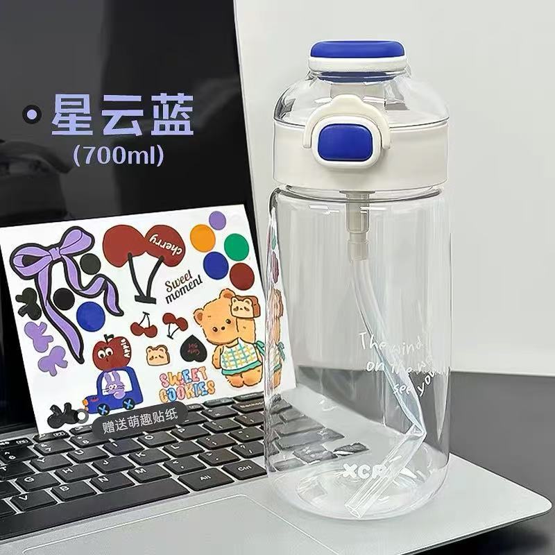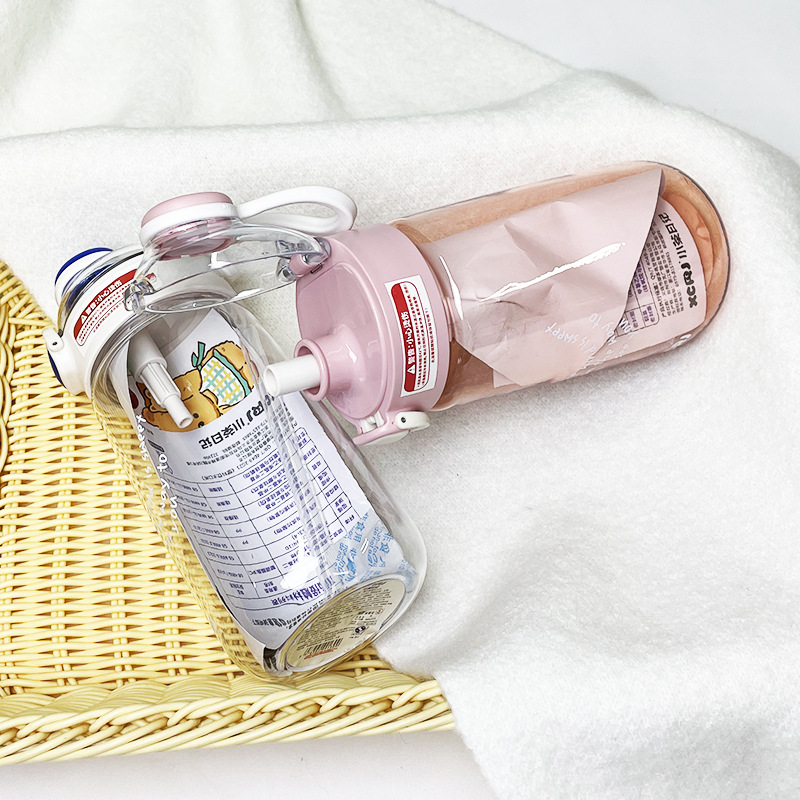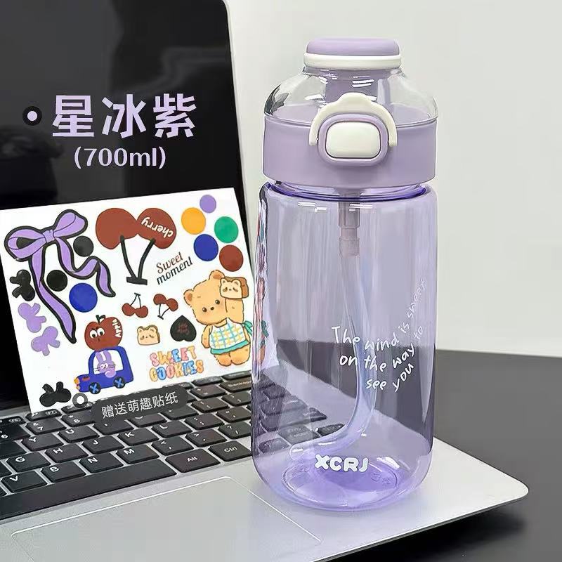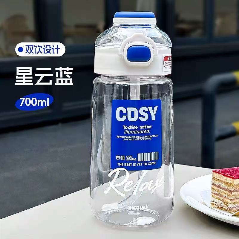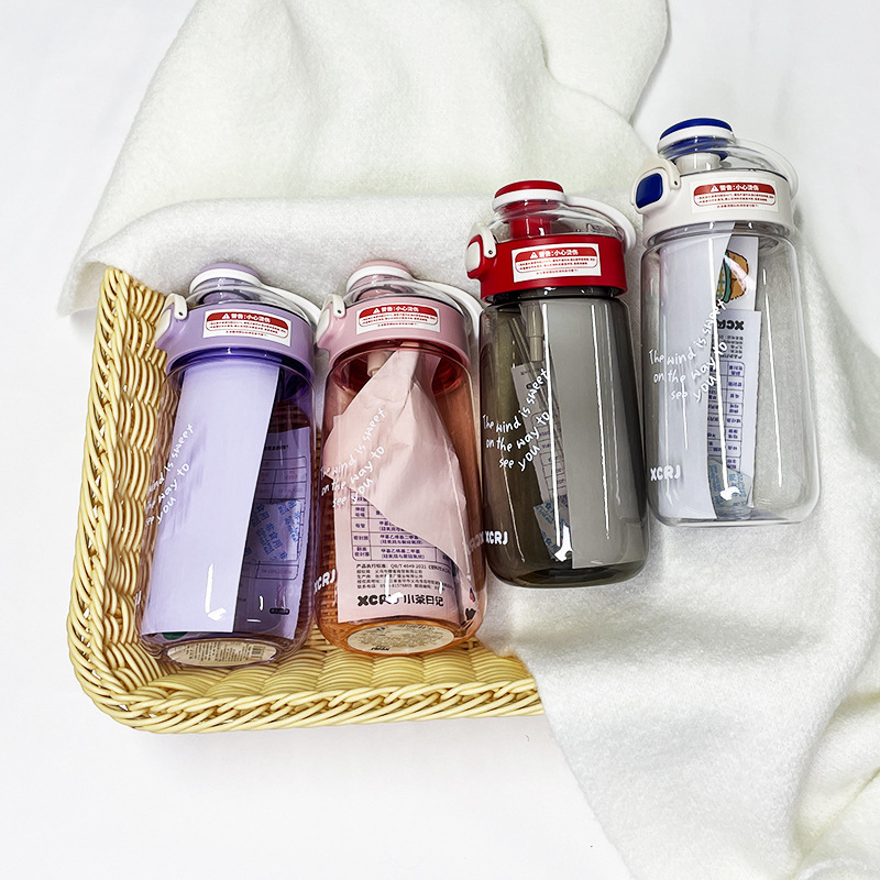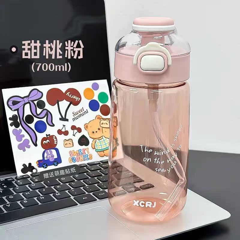 卡通可爱塑料杯学生手提新款春夏水杯户外便携吸管直饮两用杯子