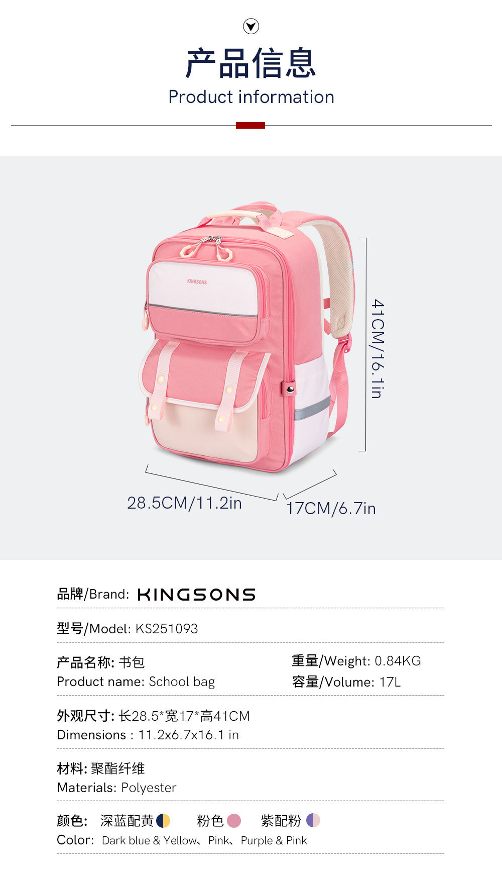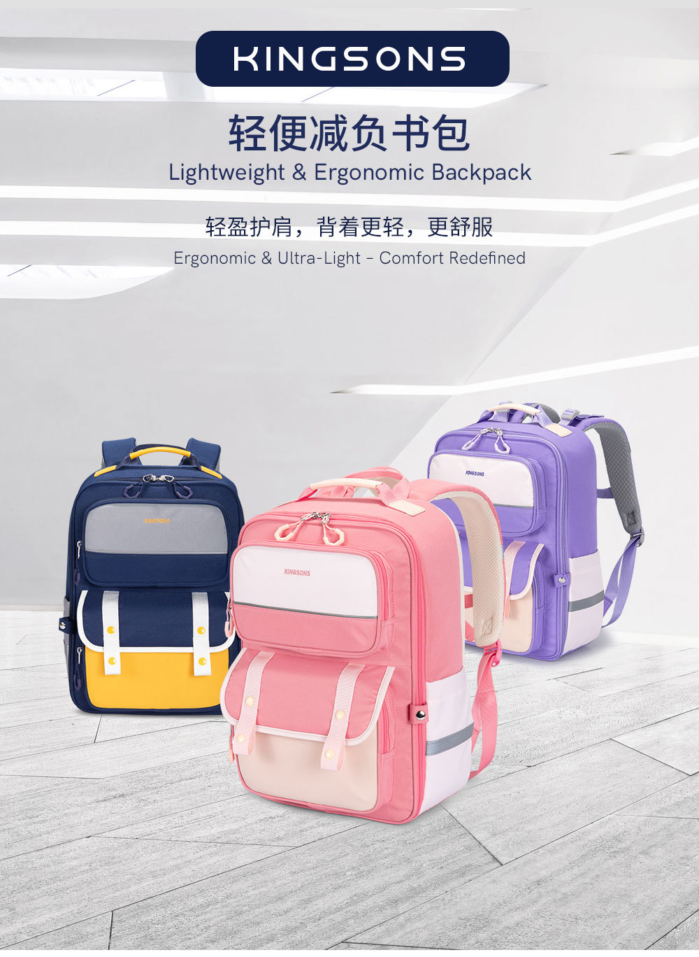 金圣斯减负学生书包小清新超轻女孩男孩三年级儿童背包护脊双肩包