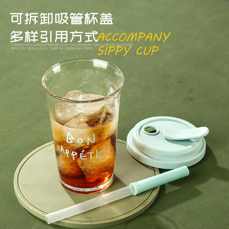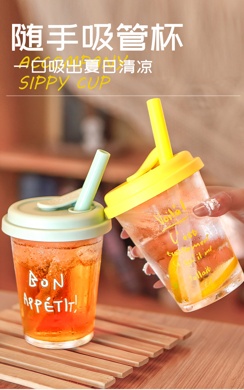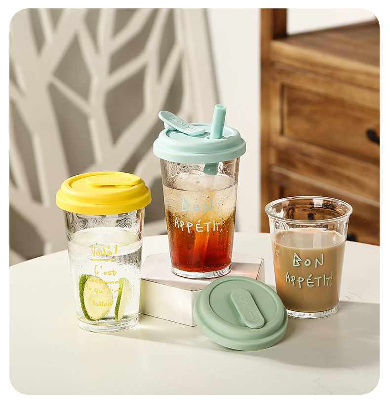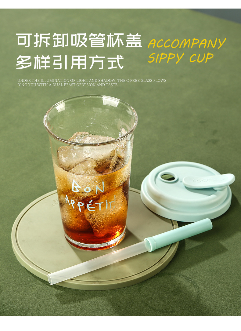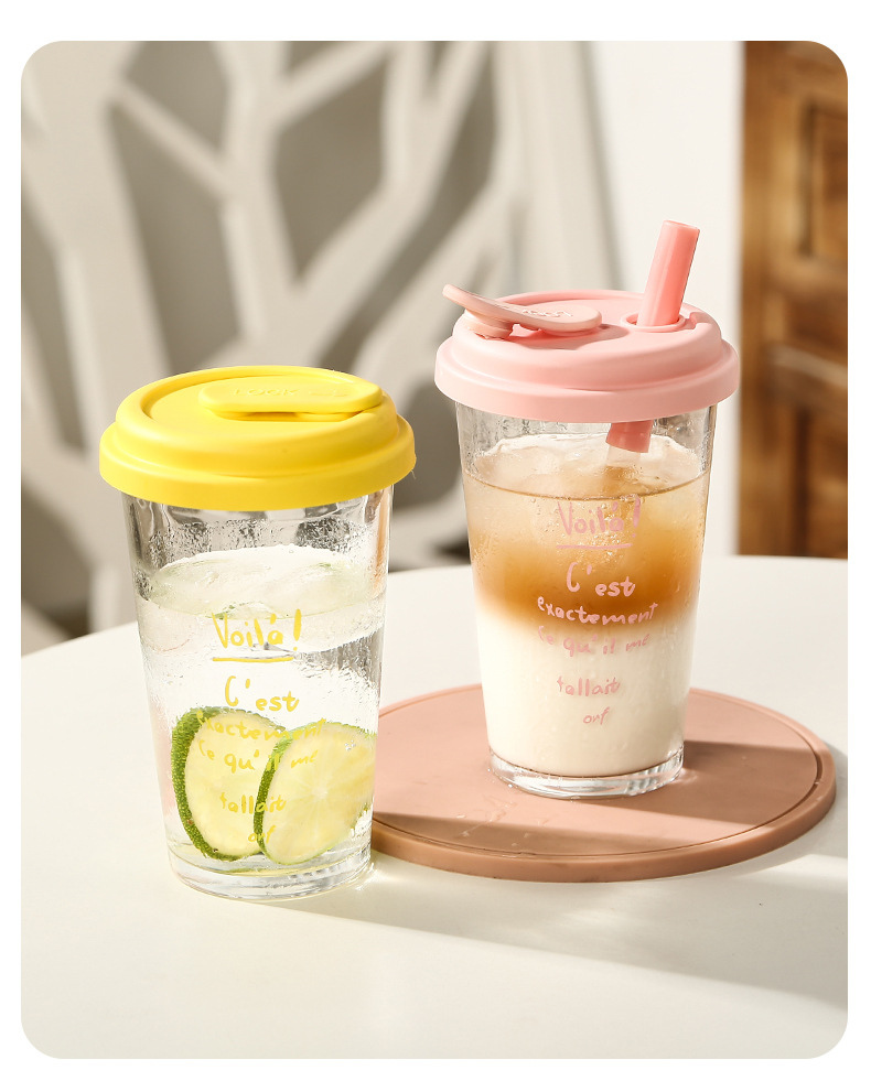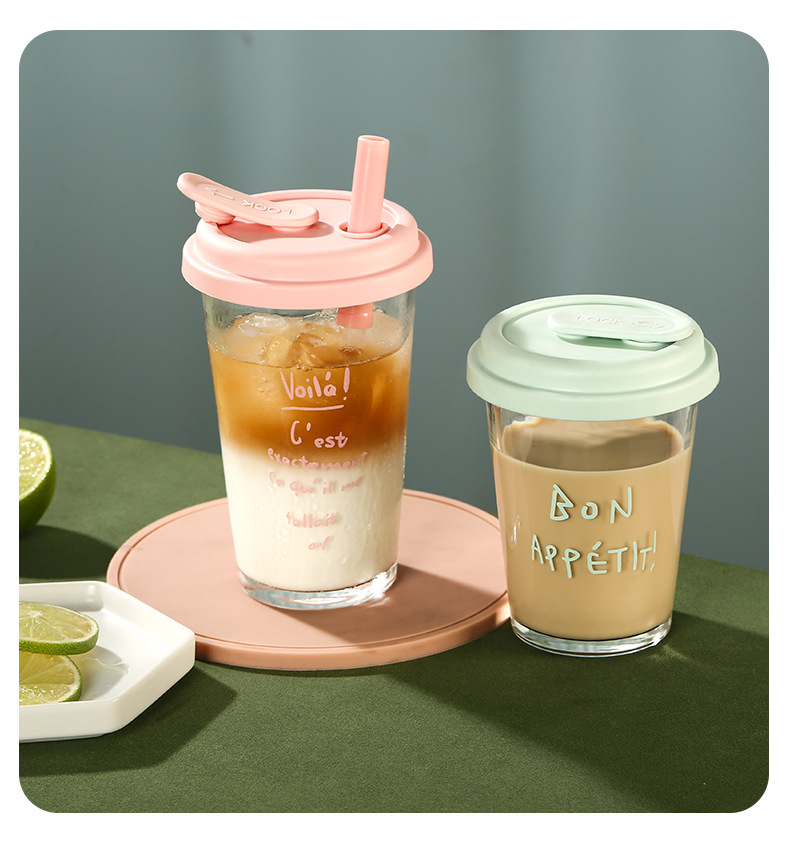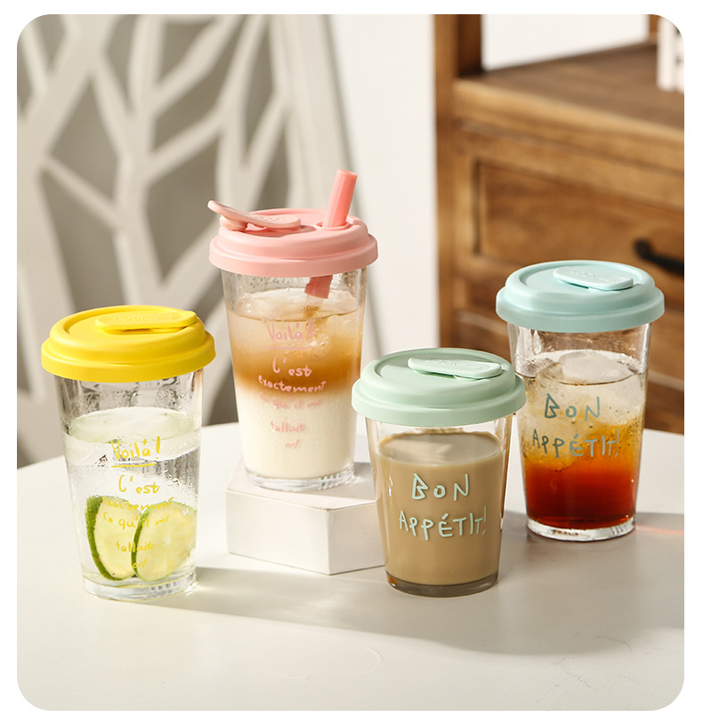 夏季现货翻口玻璃杯咖啡杯ins简约奶茶水杯高颜值伴手礼杯子带盖