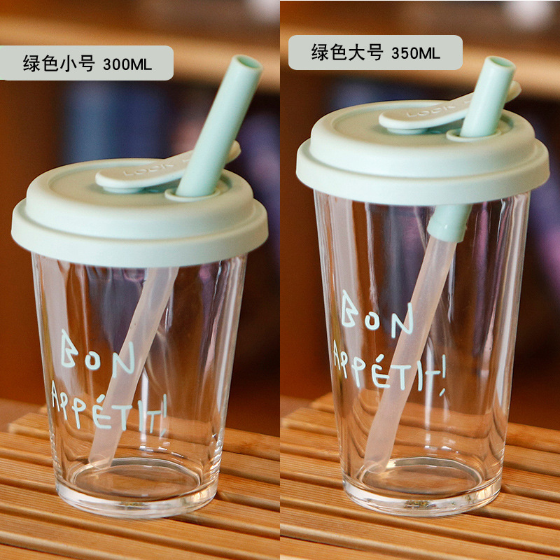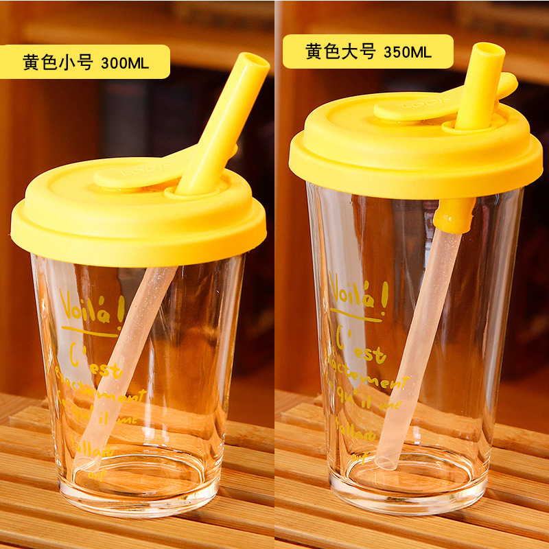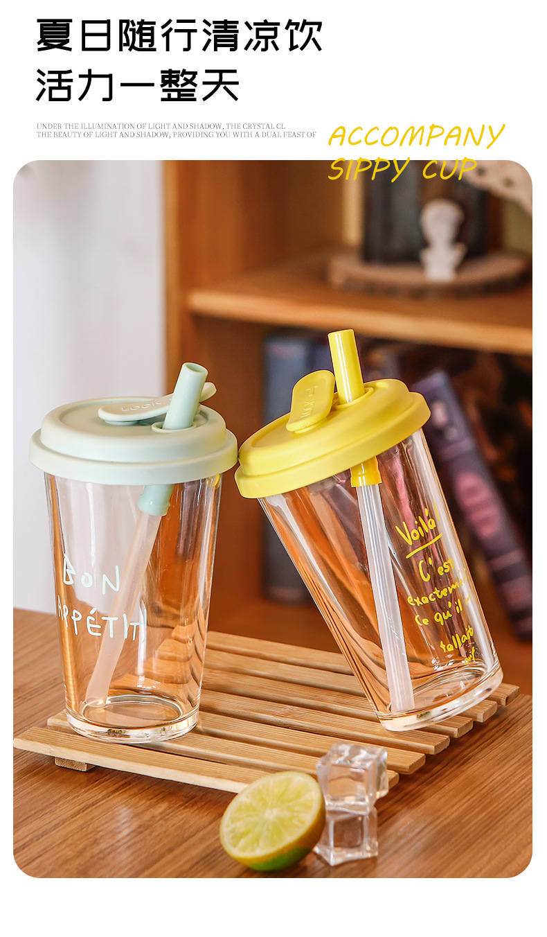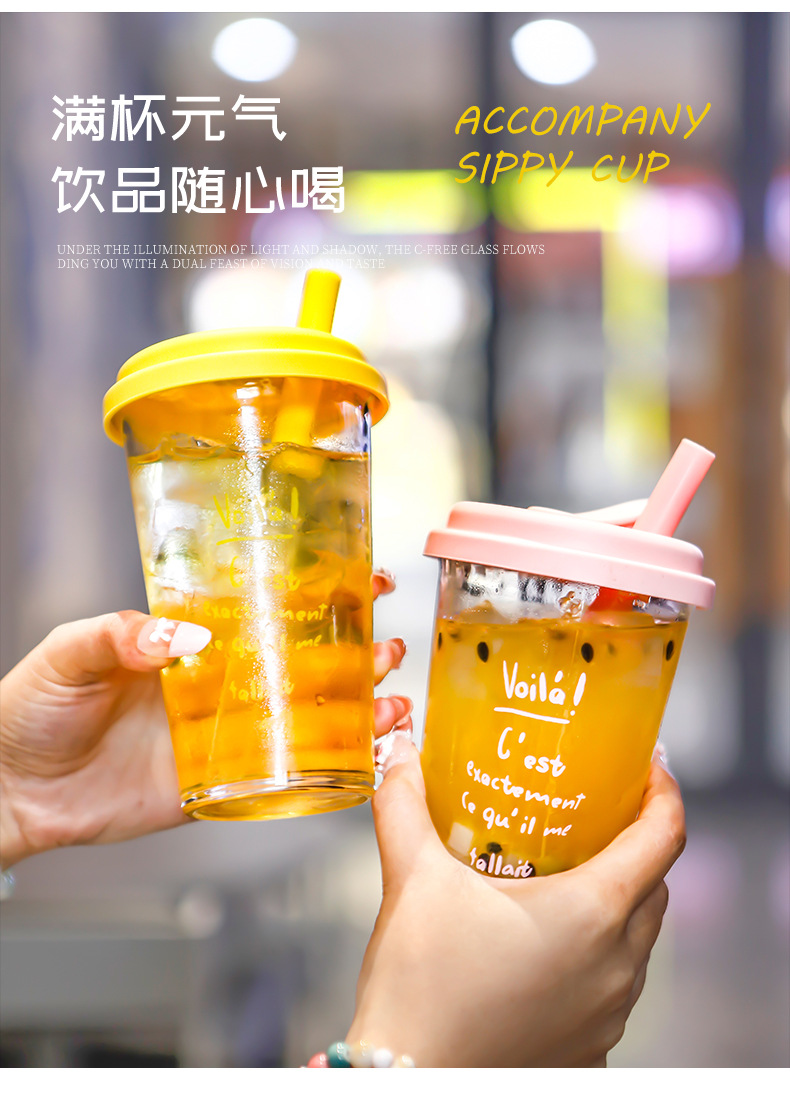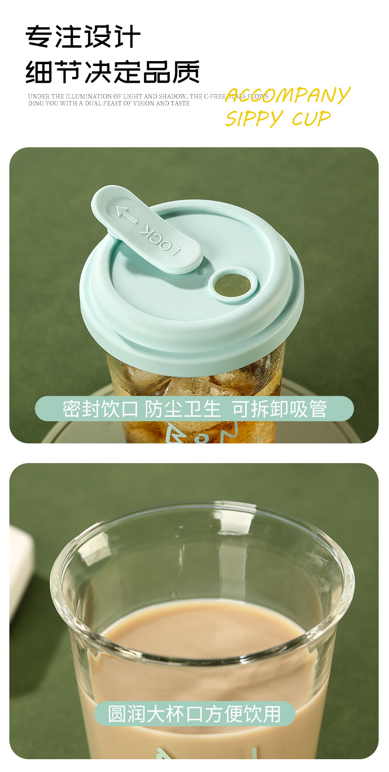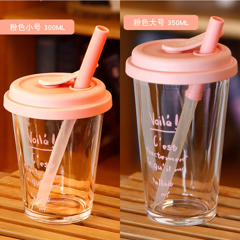 夏季现货翻口玻璃杯咖啡杯ins简约奶茶水杯高颜值伴手礼杯子带盖