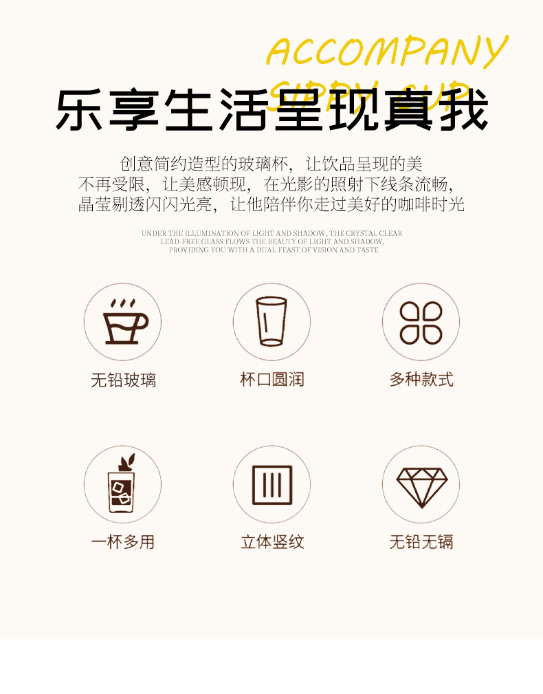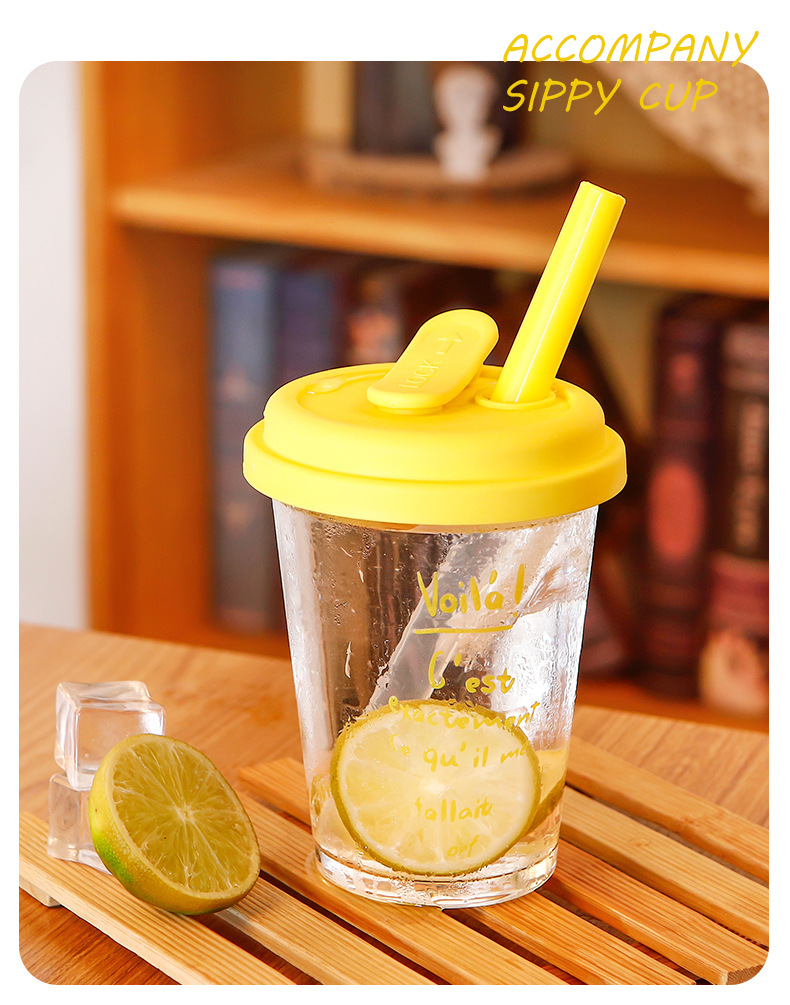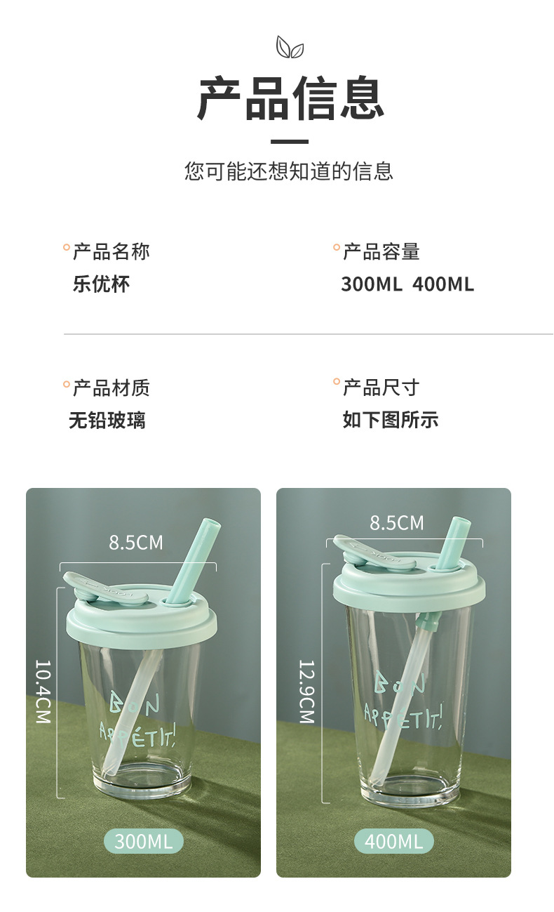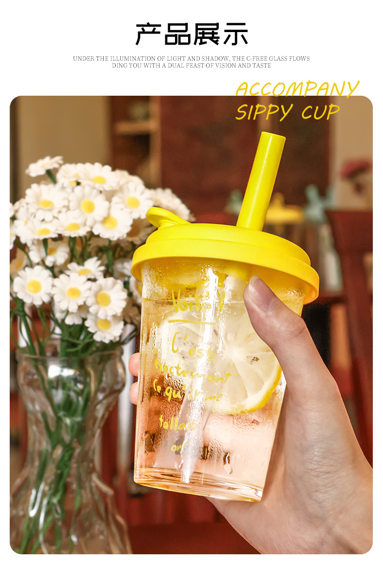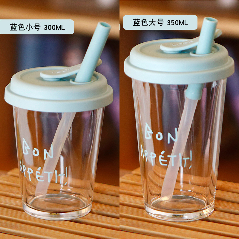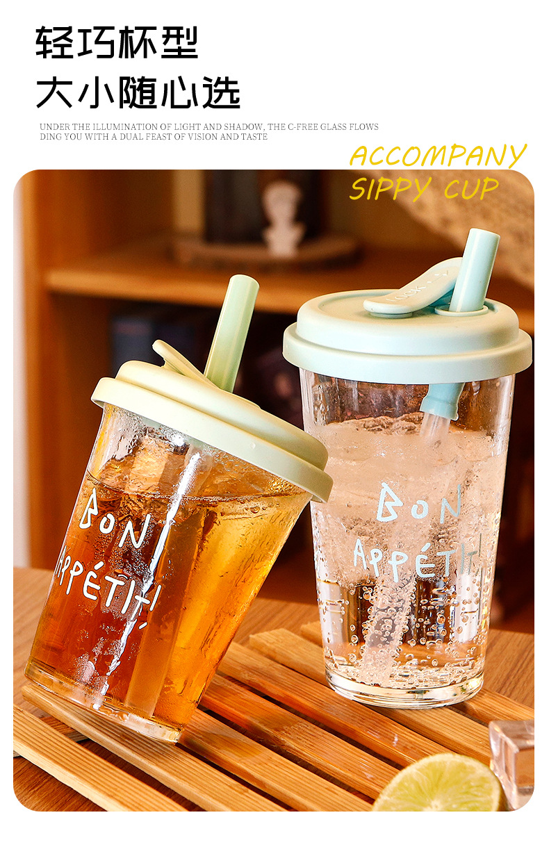 夏季现货翻口玻璃杯咖啡杯ins简约奶茶水杯高颜值伴手礼杯子带盖