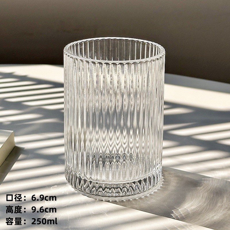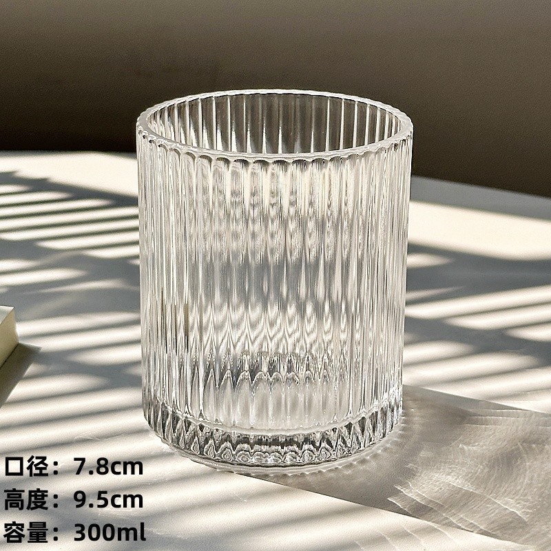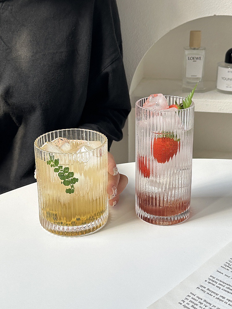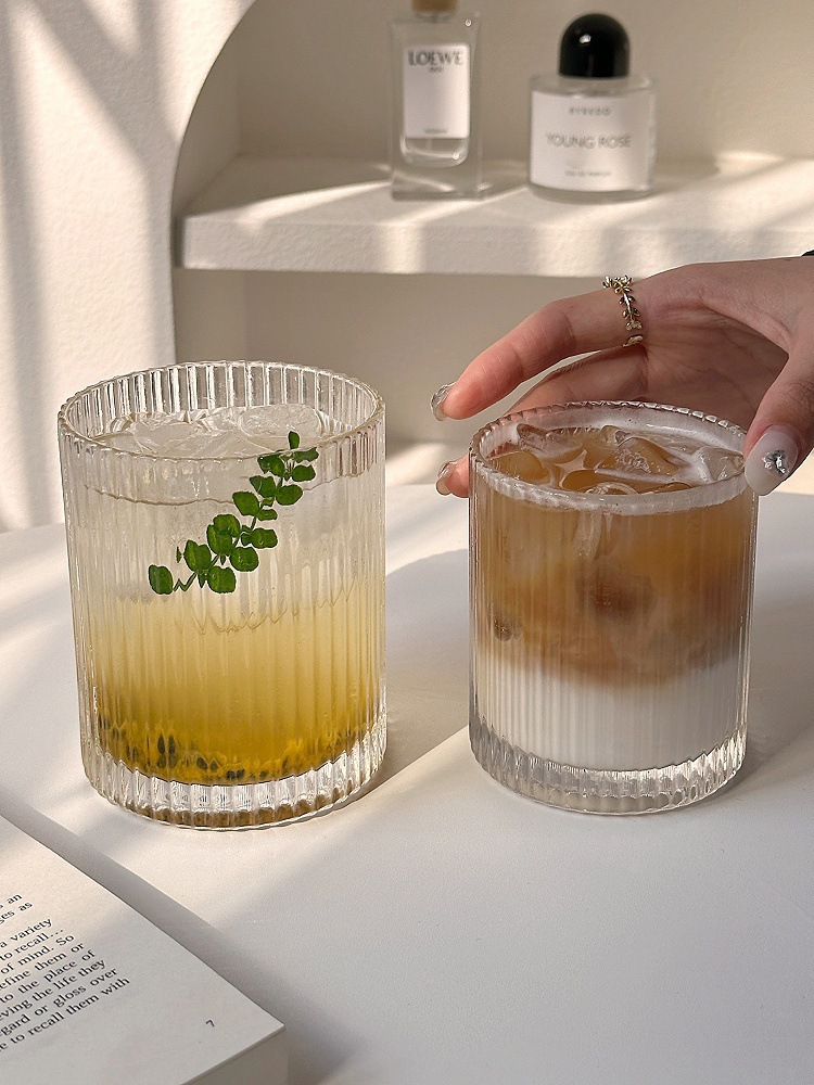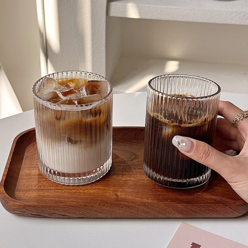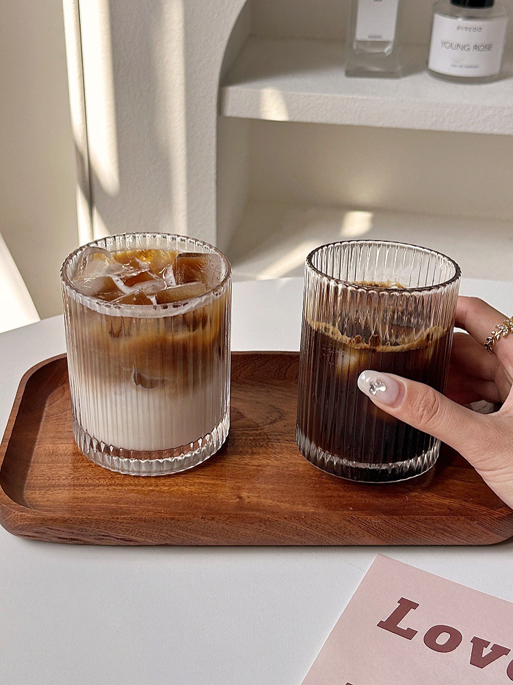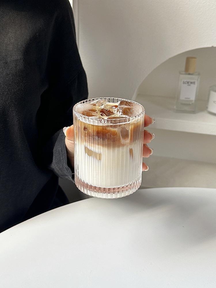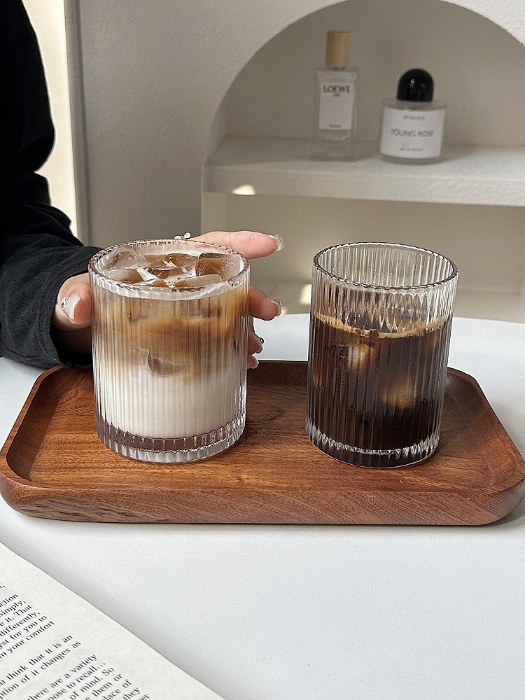 ins简约条纹玻璃杯冰美式拿铁咖啡杯果汁杯冷饮杯家用牛奶杯水杯