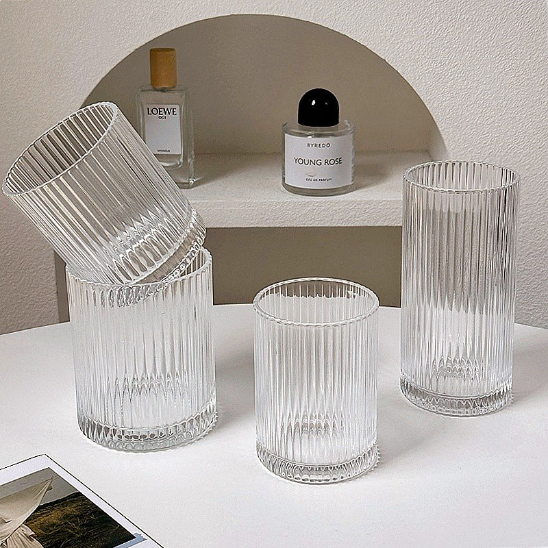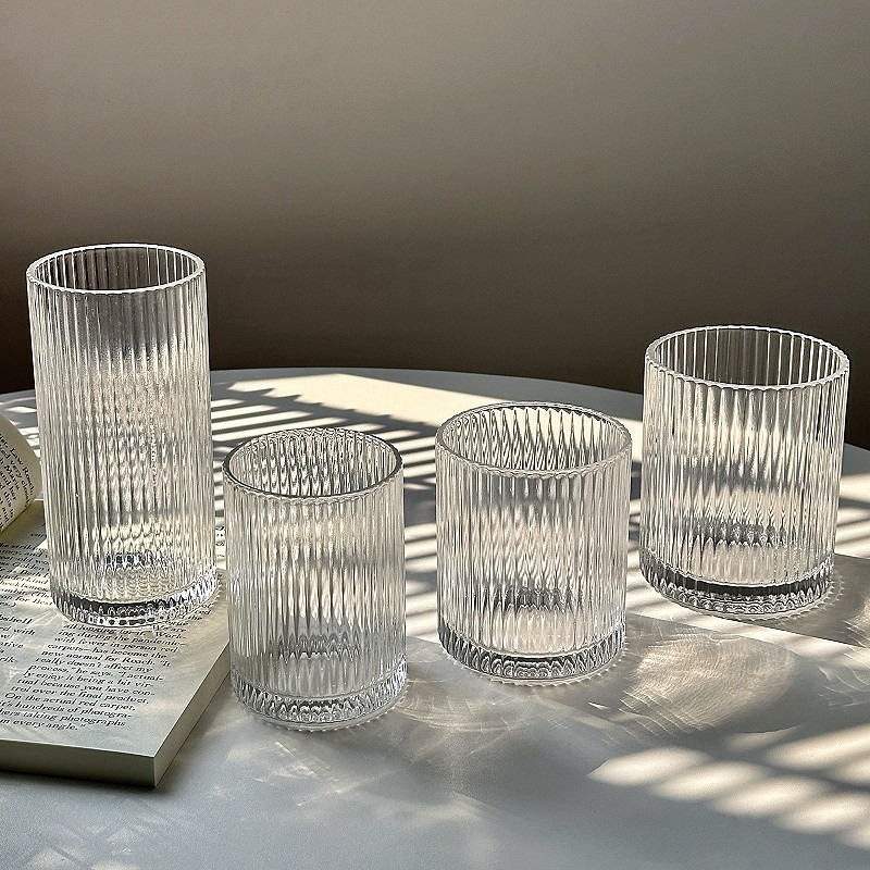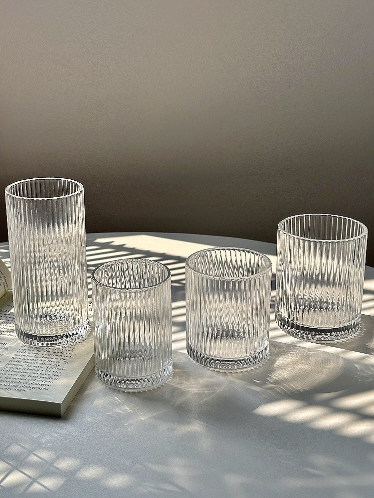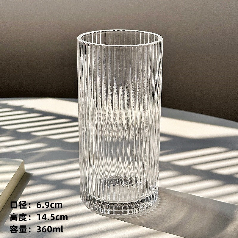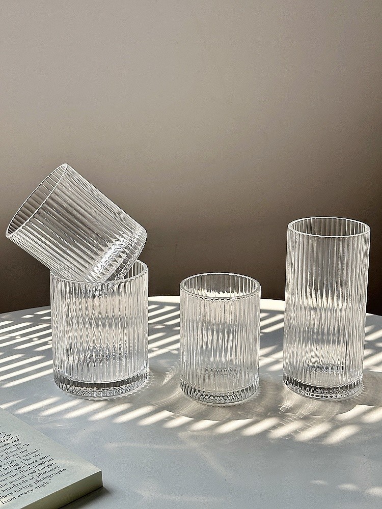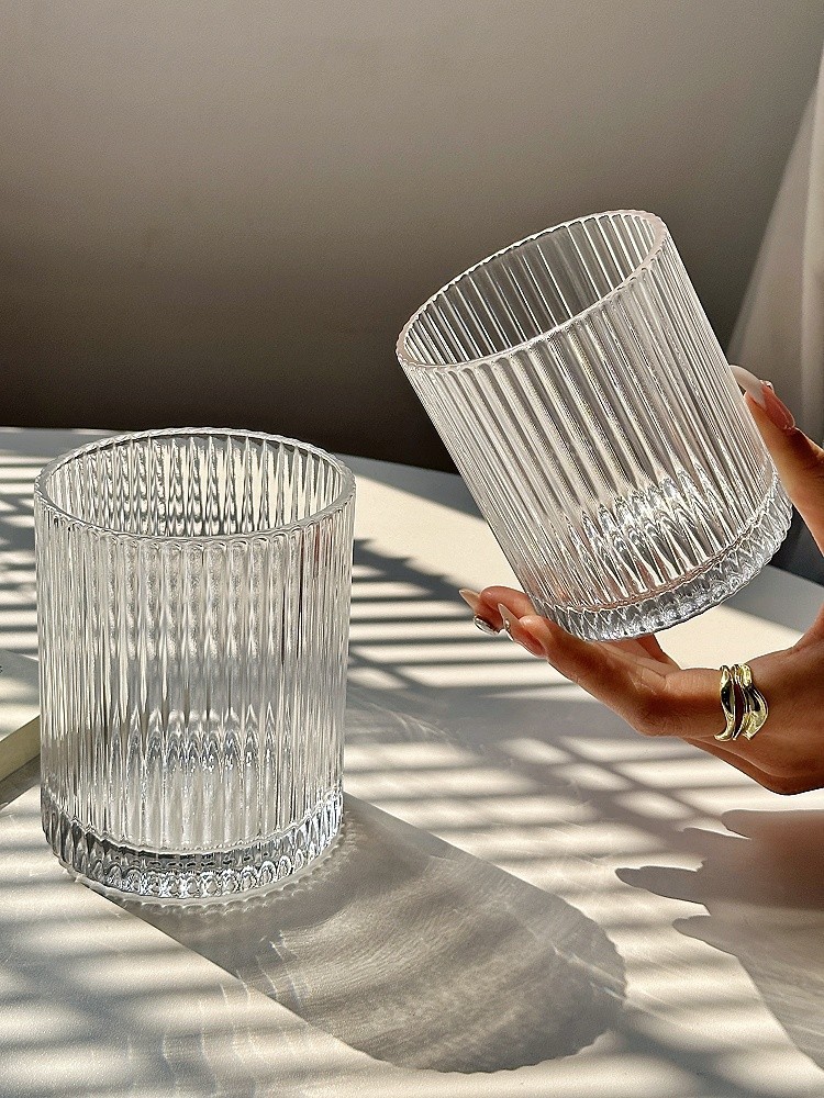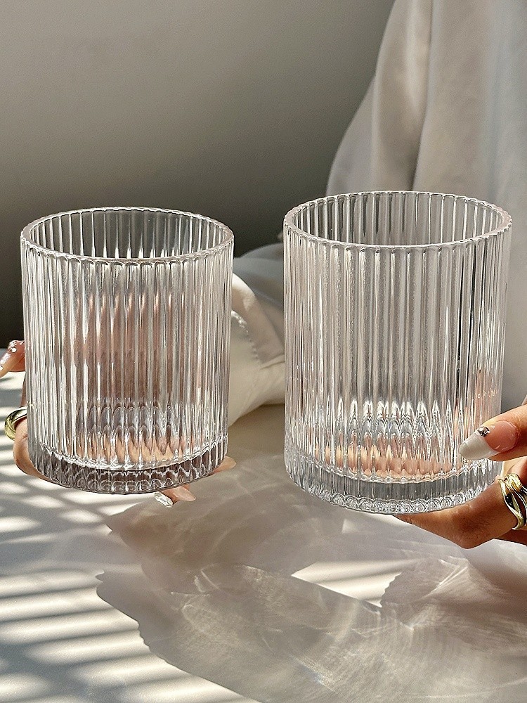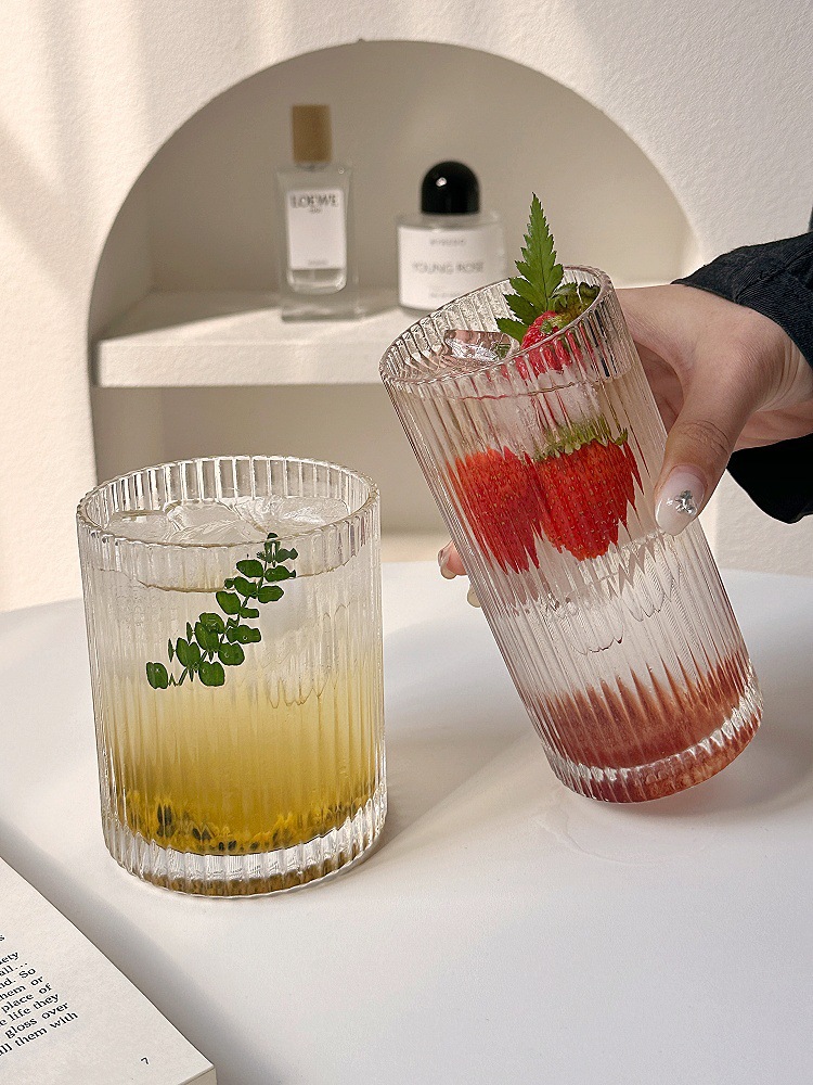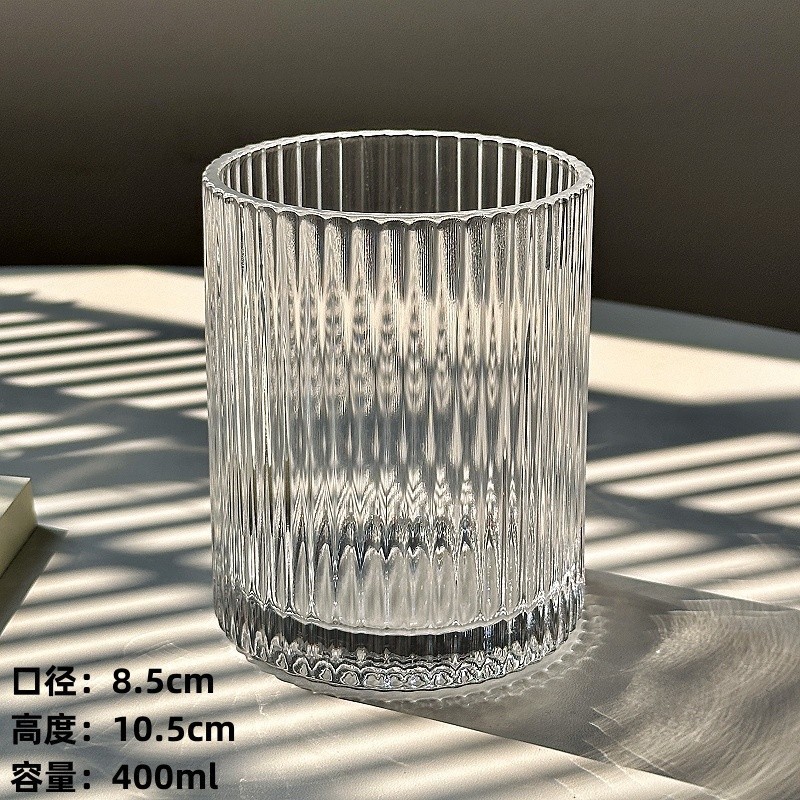 ins简约条纹玻璃杯冰美式拿铁咖啡杯果汁杯冷饮杯家用牛奶杯水杯